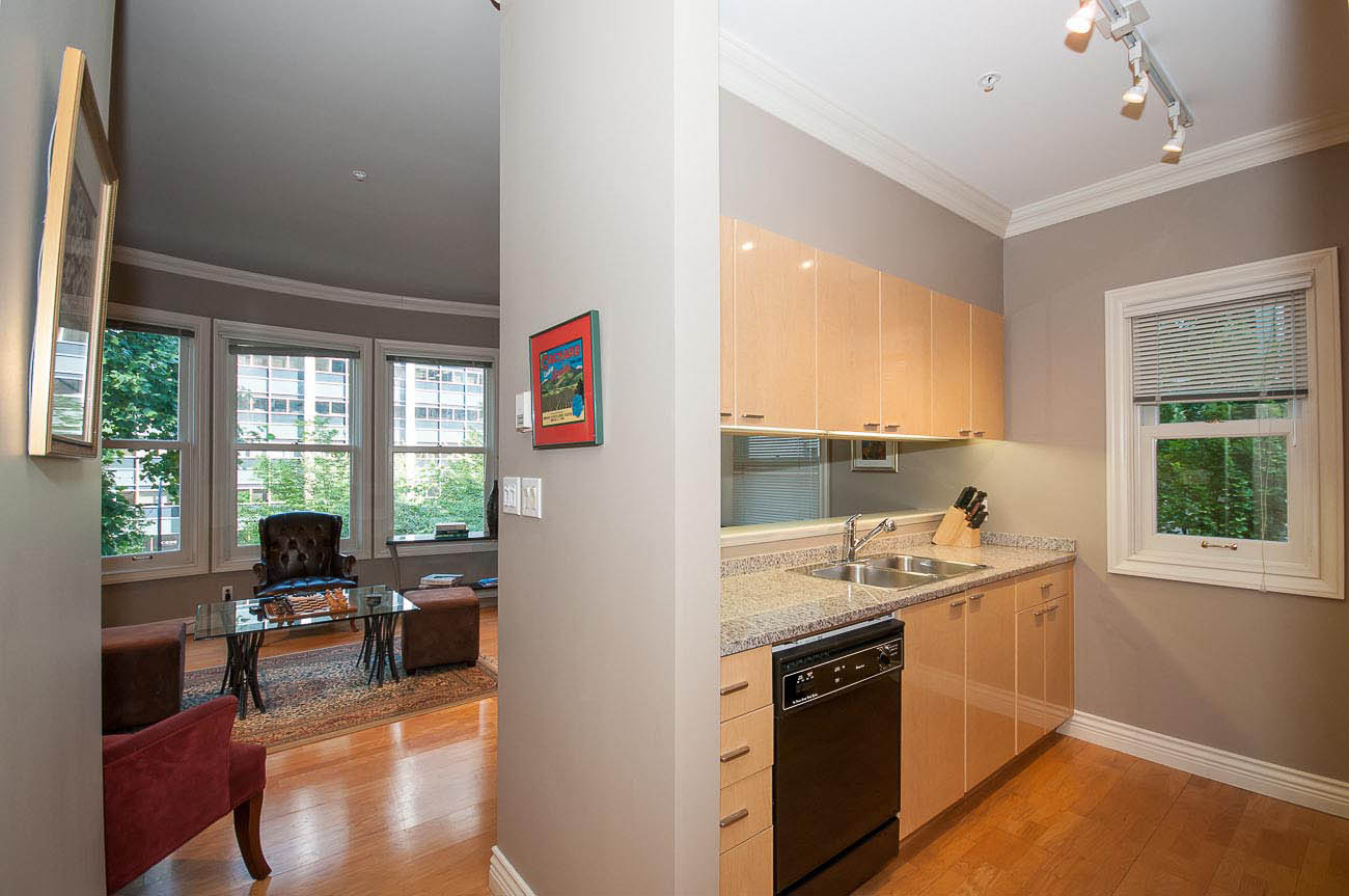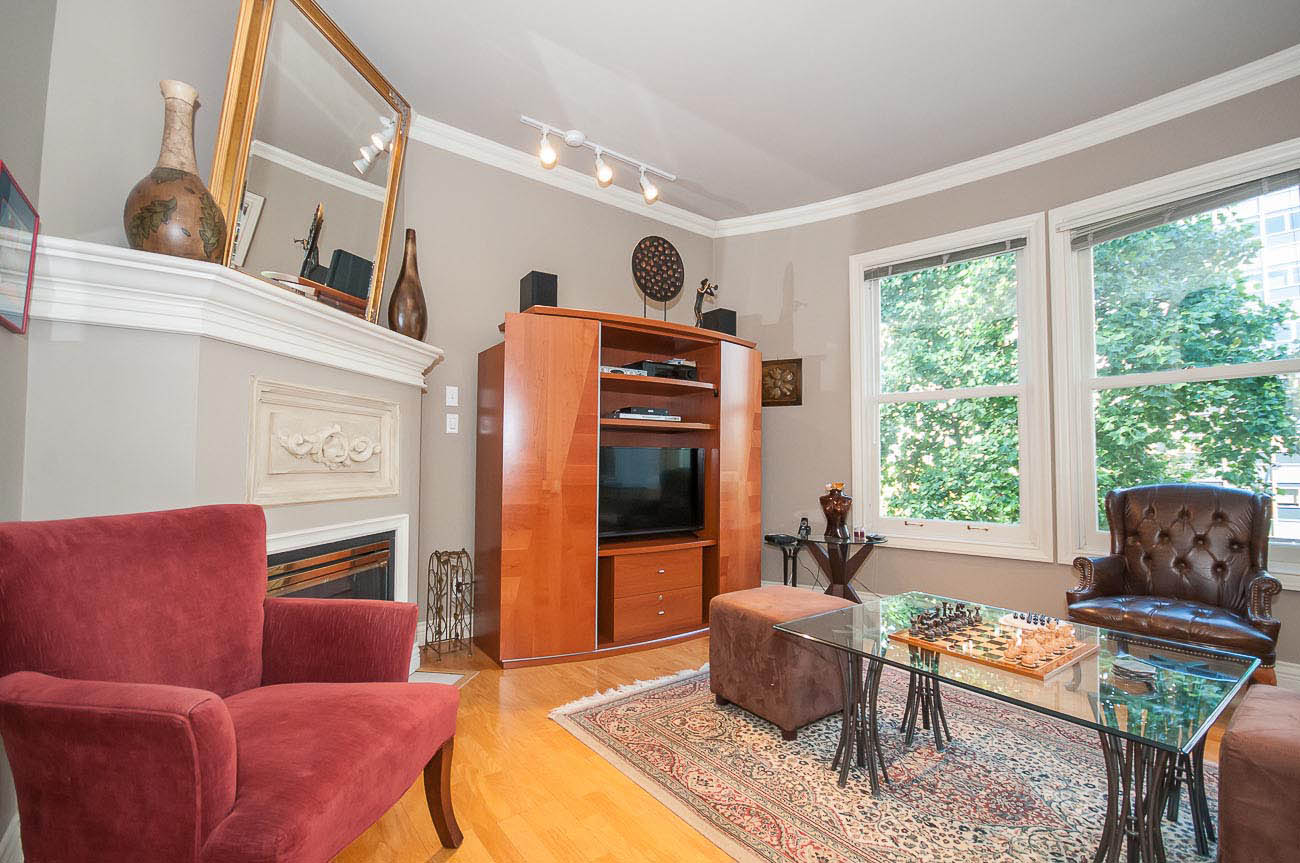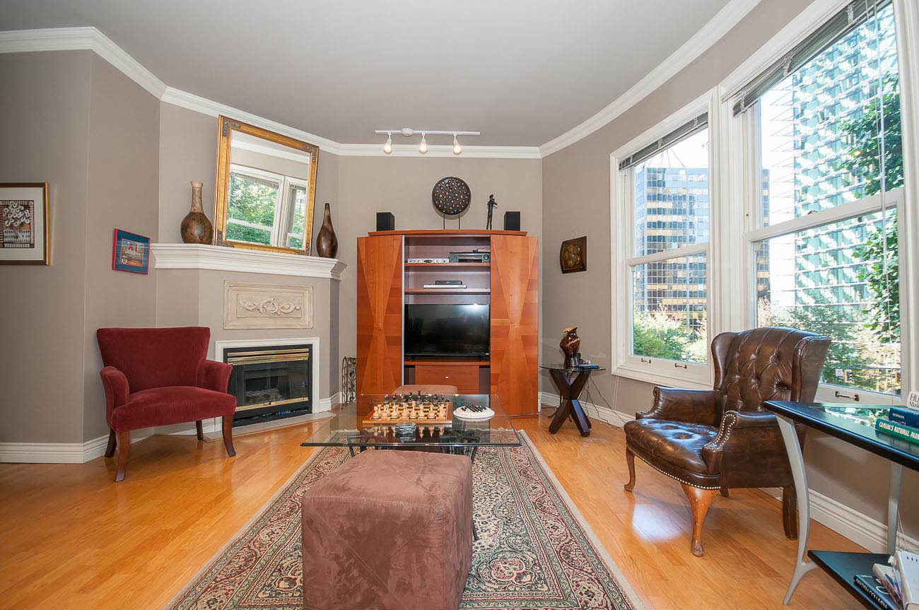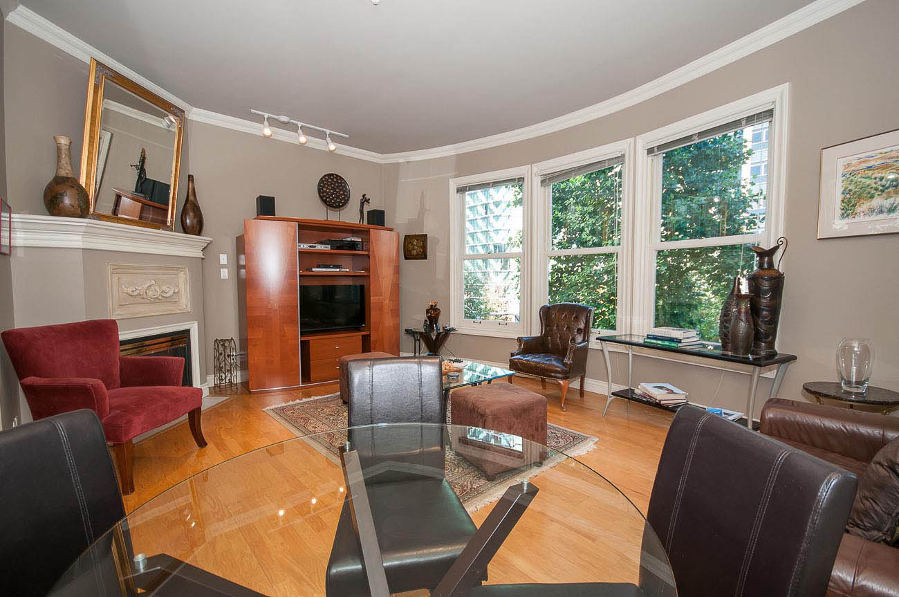 Elegant unit in rare heritage conversion home. One of only 5 units in the restored "Abbott House" Heritage Residence, this 2 bedroom offers all of the amenities you expect in a modern tower: concierge, gym, meeting & bike rooms. Generous sized rooms, 10' ceilings & hardwood floors throughout. Gourmet kitchen with granite countertop. Marble counters in bathrooms. Radiant floor heating. Steps to Robson Street, Stanley Park and the Coal Harbour Waterfront/Sea Wall. Enjoy all the Downtown/West End/Coal Harbor areas have to offer. 1 parking INCLUDED.