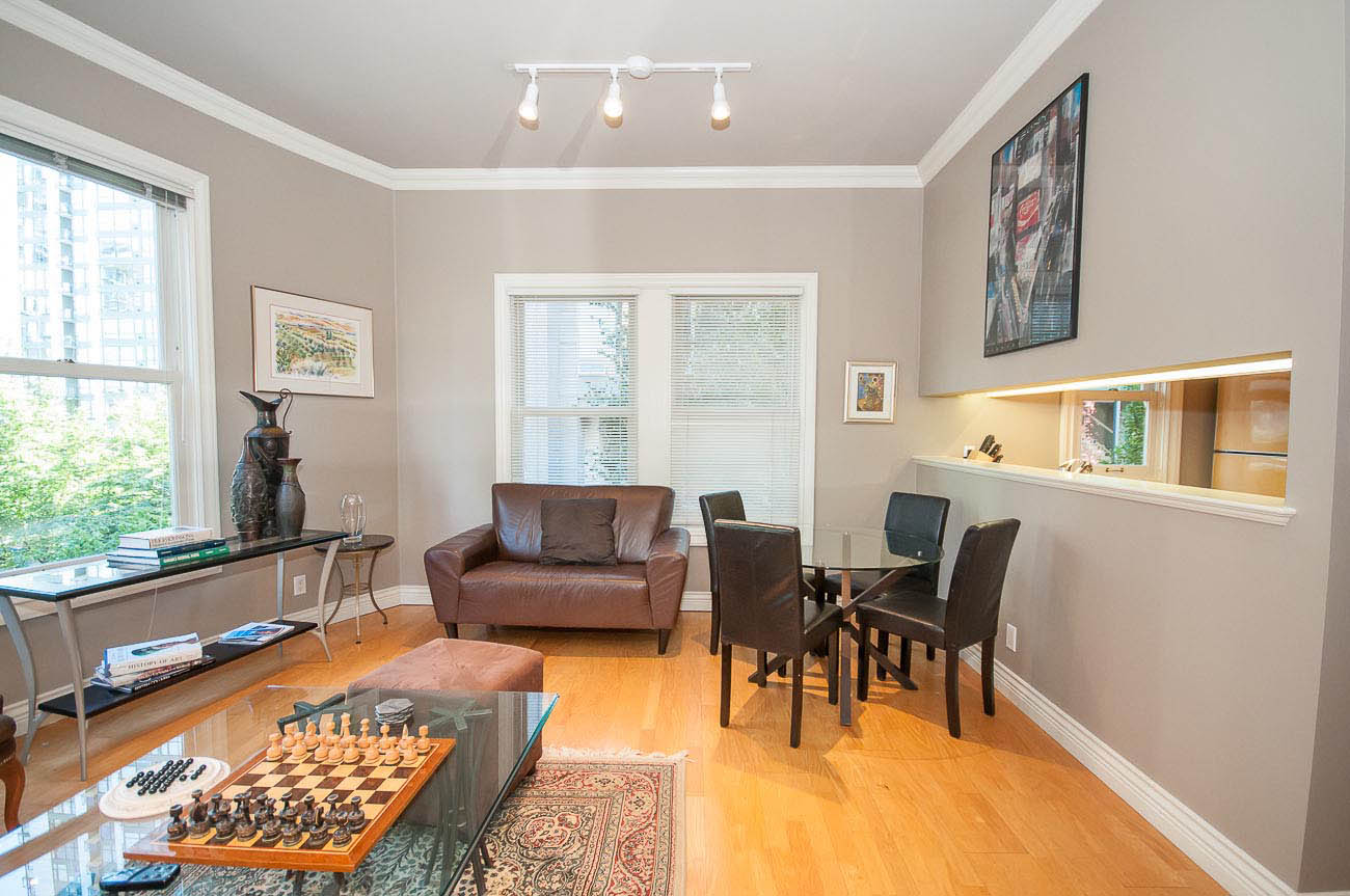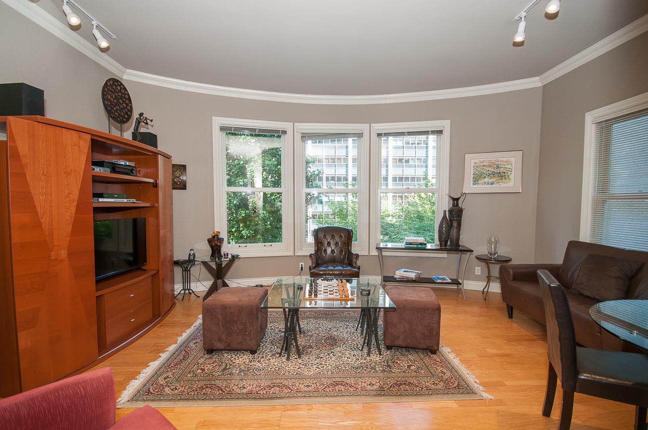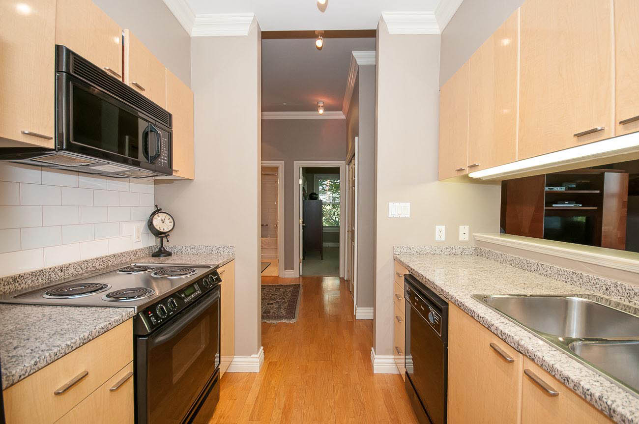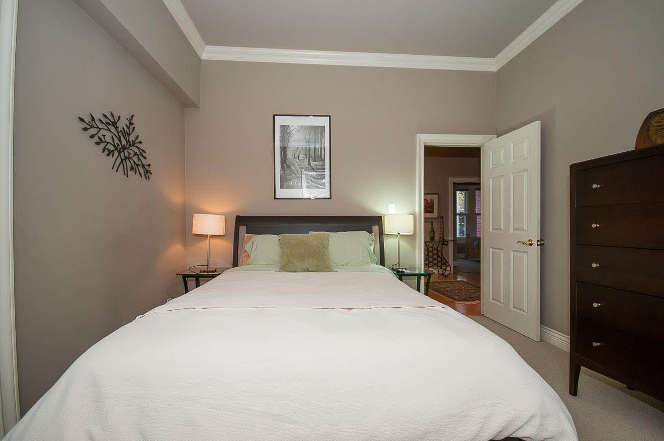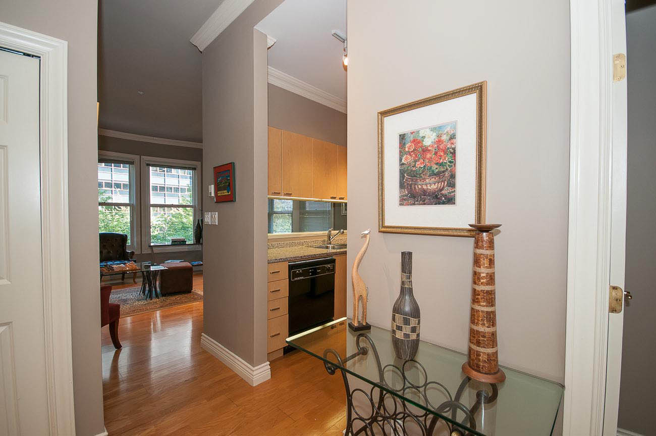 Elegant unit in rare heritage conversion home. One of only 5 units in the restored "Abbott House" Heritage Residence, this 2 bedroom offers all of the amenities you expect in a modern tower: concierge, gym, meeting & bike rooms. Generous sized rooms, 10' ceilings & hardwood floors throughout. Gourmet kitchen with granite countertop. Marble counters in bathrooms. Radiant floor heating. Steps to Robson Street, Stanley Park and the Coal Harbour Waterfront/Sea Wall. Enjoy all the Downtown/West End/Coal Harbor areas have to offer. 1 parking INCLUDED.