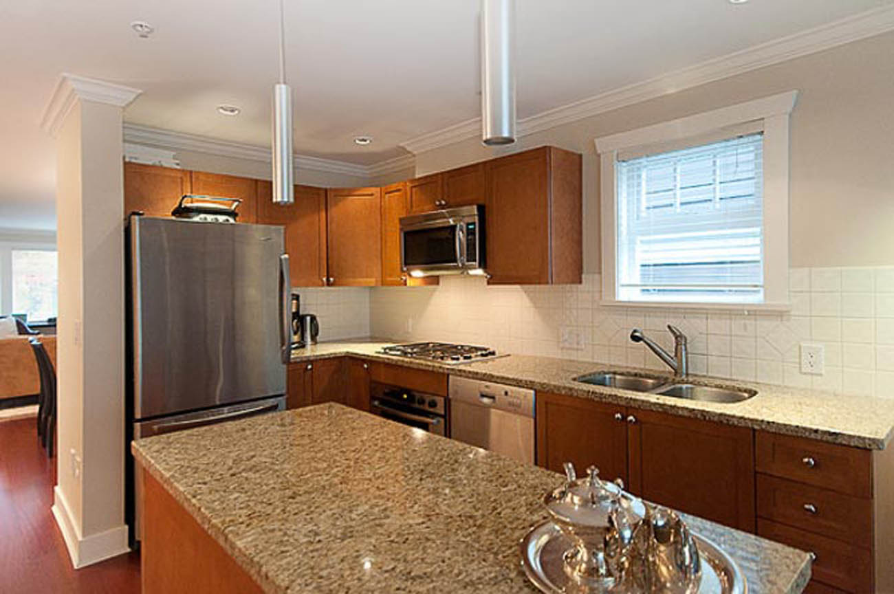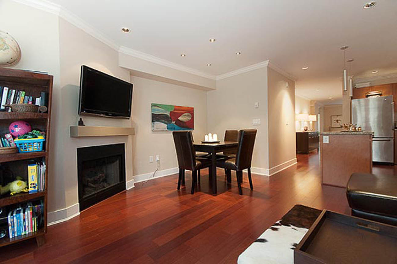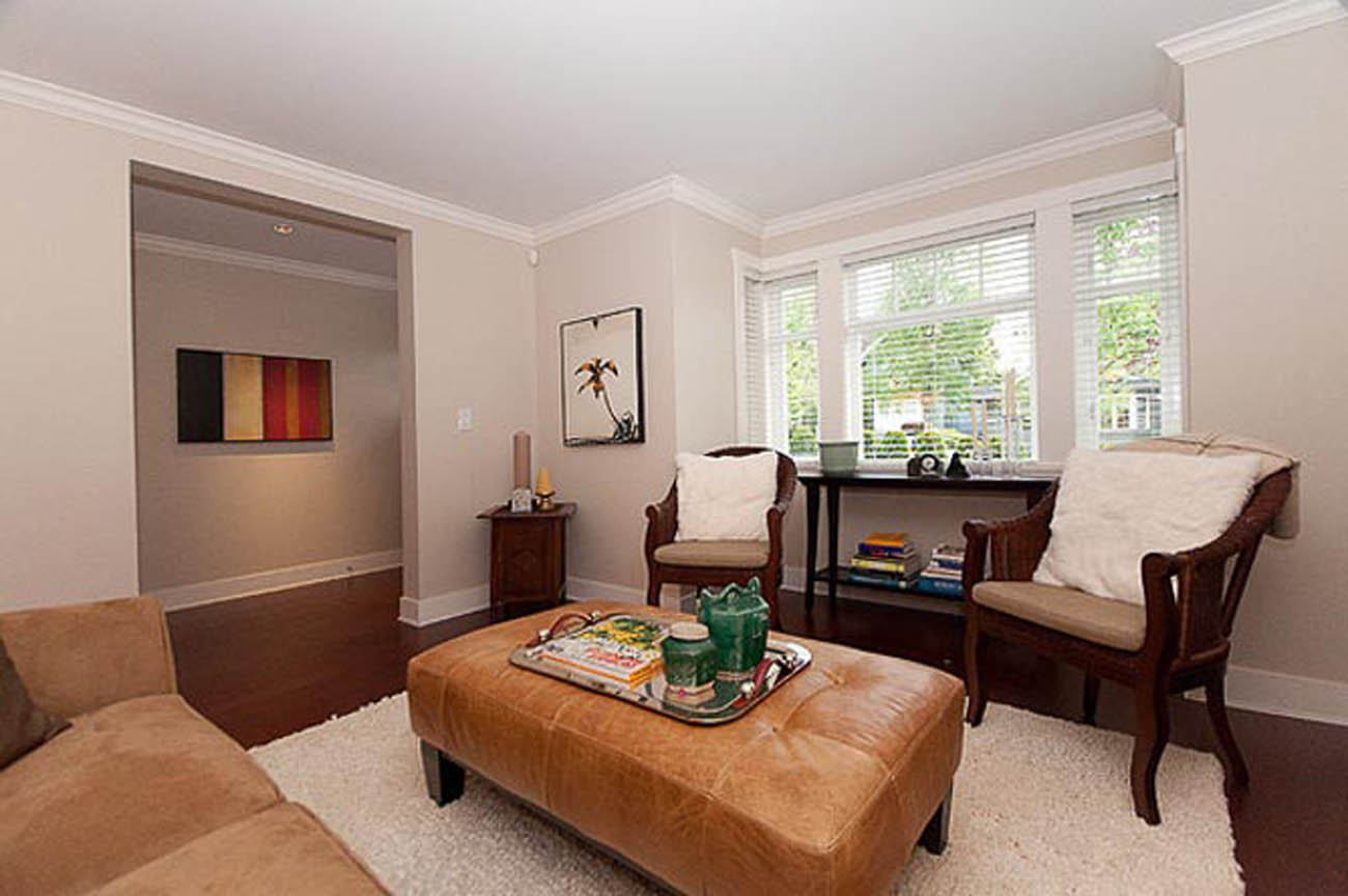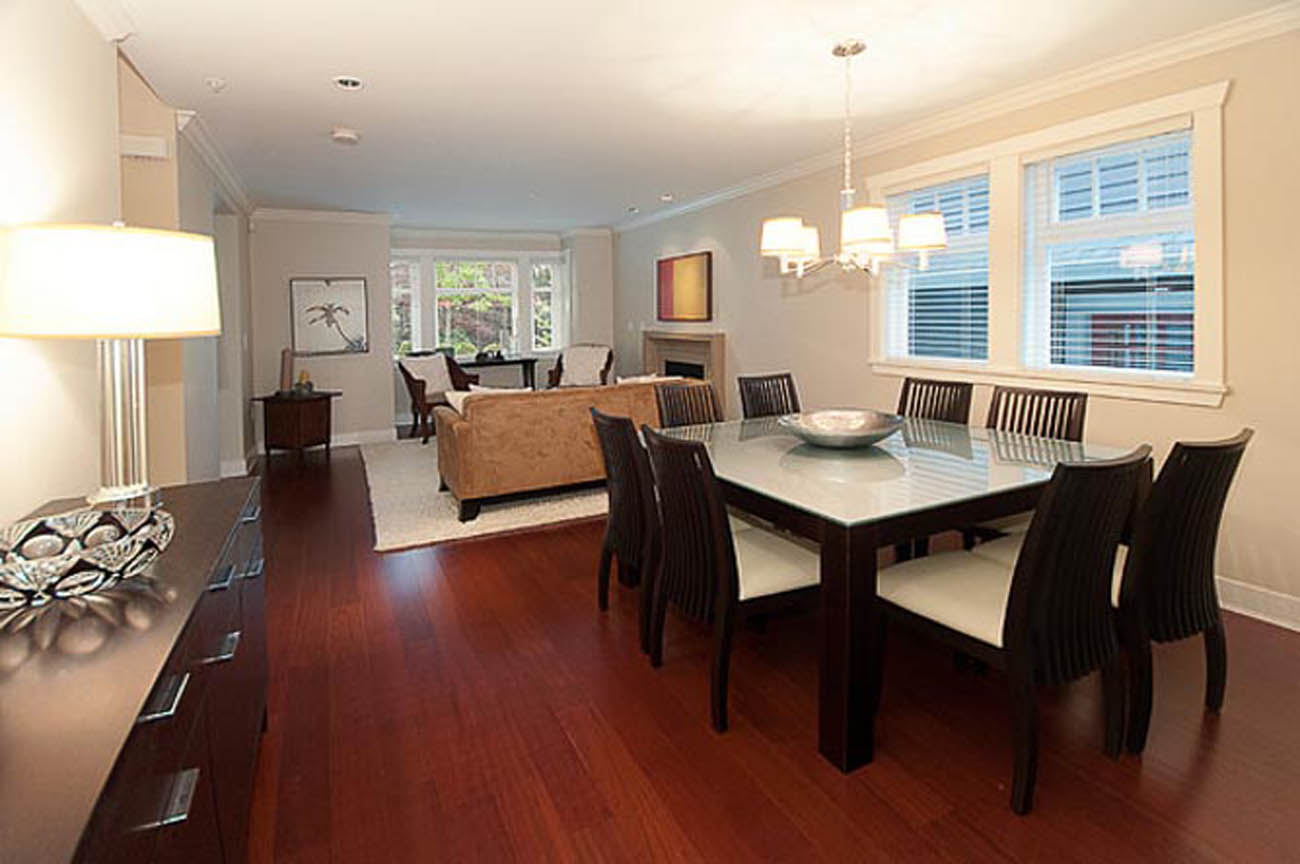 Beautiful 3 bedroom, 3 1/2 bathroom Townhouse in desirable Sasamat Gardens. Spacious layout on the main floor offers formal living and dining rooms and south facing kitchen. Hardwood flooring, heated floors in bathrooms, crown molding, and a gas stove are just a few features. 3 bedrooms and balcony up, as well as a basement with laundry, a recreation room and storage. 2 parking stalls included.