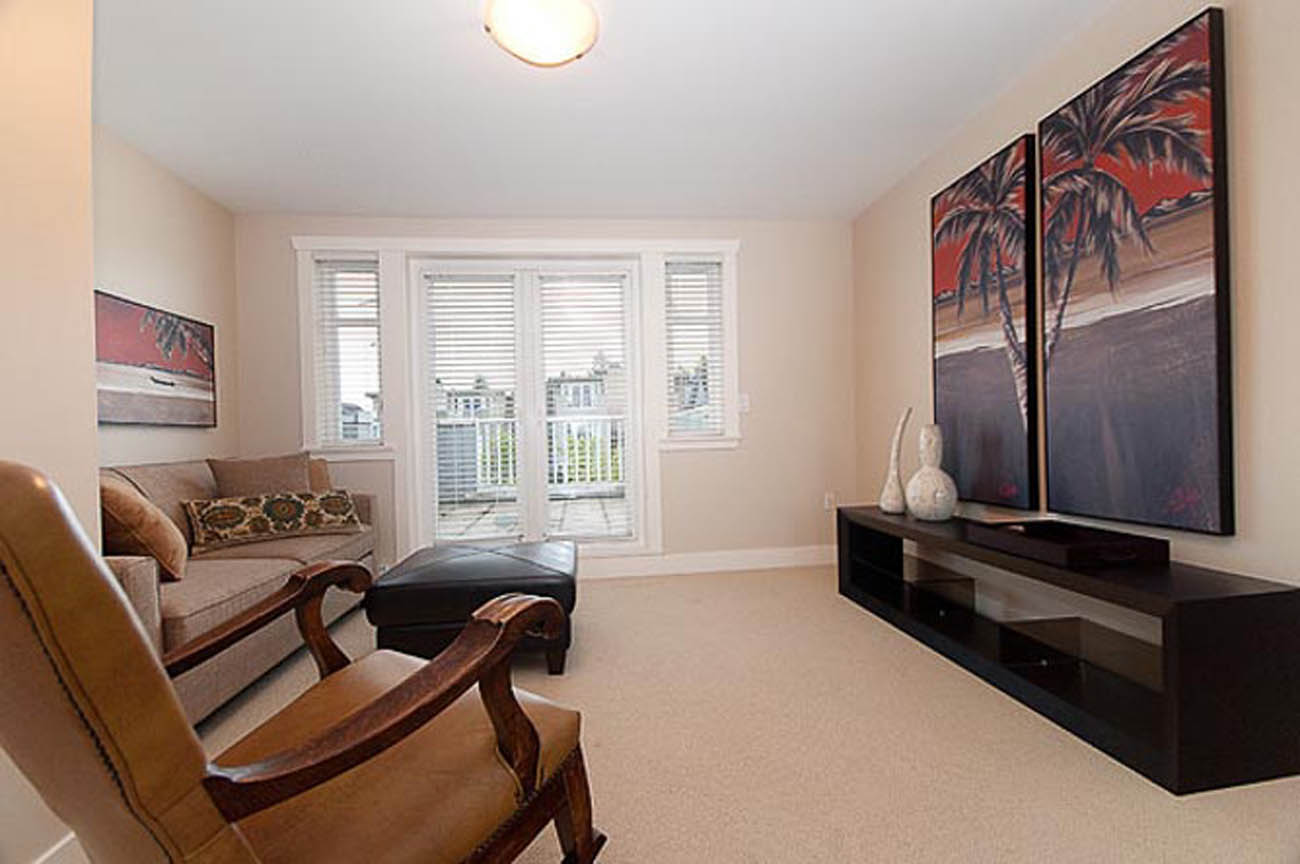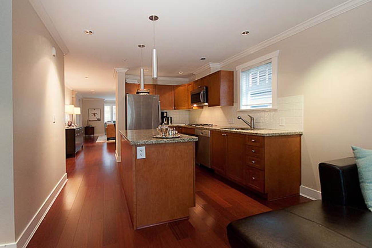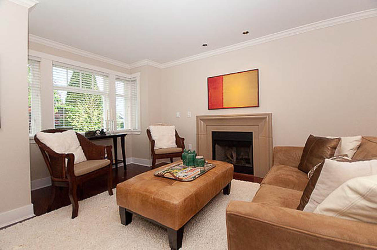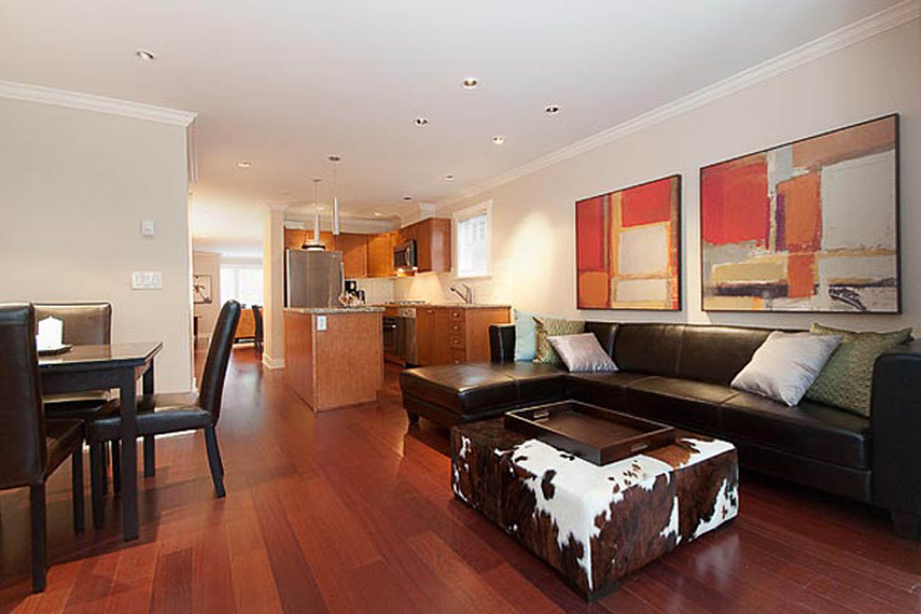 Beautiful 3 bedroom, 3 1/2 bathroom Townhouse in desirable Sasamat Gardens. Spacious layout on the main floor offers formal living and dining rooms and south facing kitchen. Hardwood flooring, heated floors in bathrooms, crown molding, and a gas stove are just a few features. 3 bedrooms and balcony up, as well as a basement with laundry, a recreation room and storage. 2 parking stalls included.