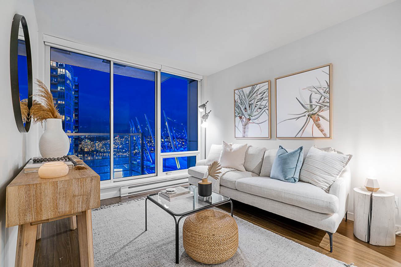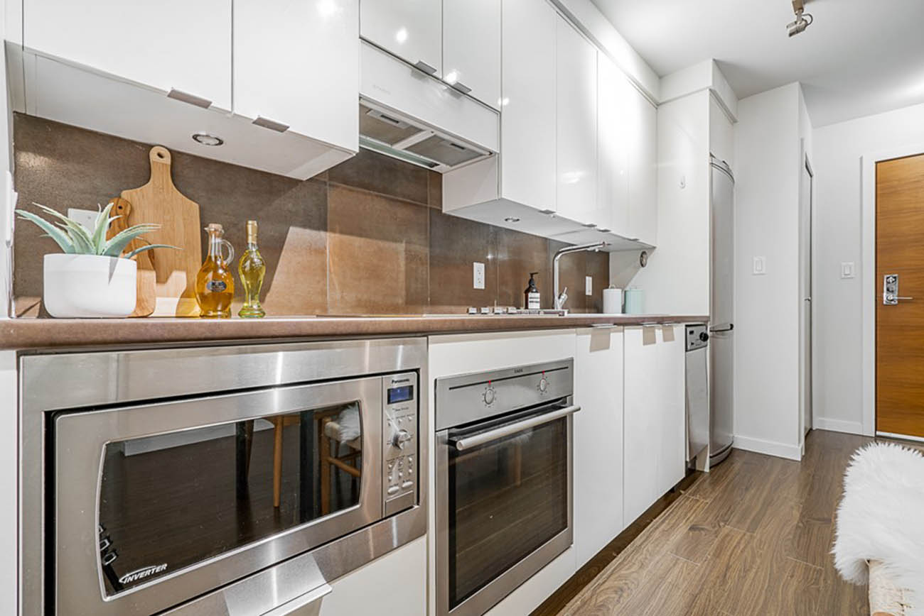 This is such a great opportunity to live in a great development in downtown Vancouver. This property offers a beautiful kitchen with energy saving stainless steel appliances, gorgeous chocolate brown hardwood flooring, beautiful bathroom with a very clean and fresh feel. If you live in this condo, you can enjoy the views of BC place and live the fun Downtown lifestyle. Everything is within walking distance, so you can enjoy a glass of wine at your favorite restaurant. The Cosmo Building has a common deck and a bowling alley but shares the amenities with the Spectrum Building and offers a pool, gym and fitness club.