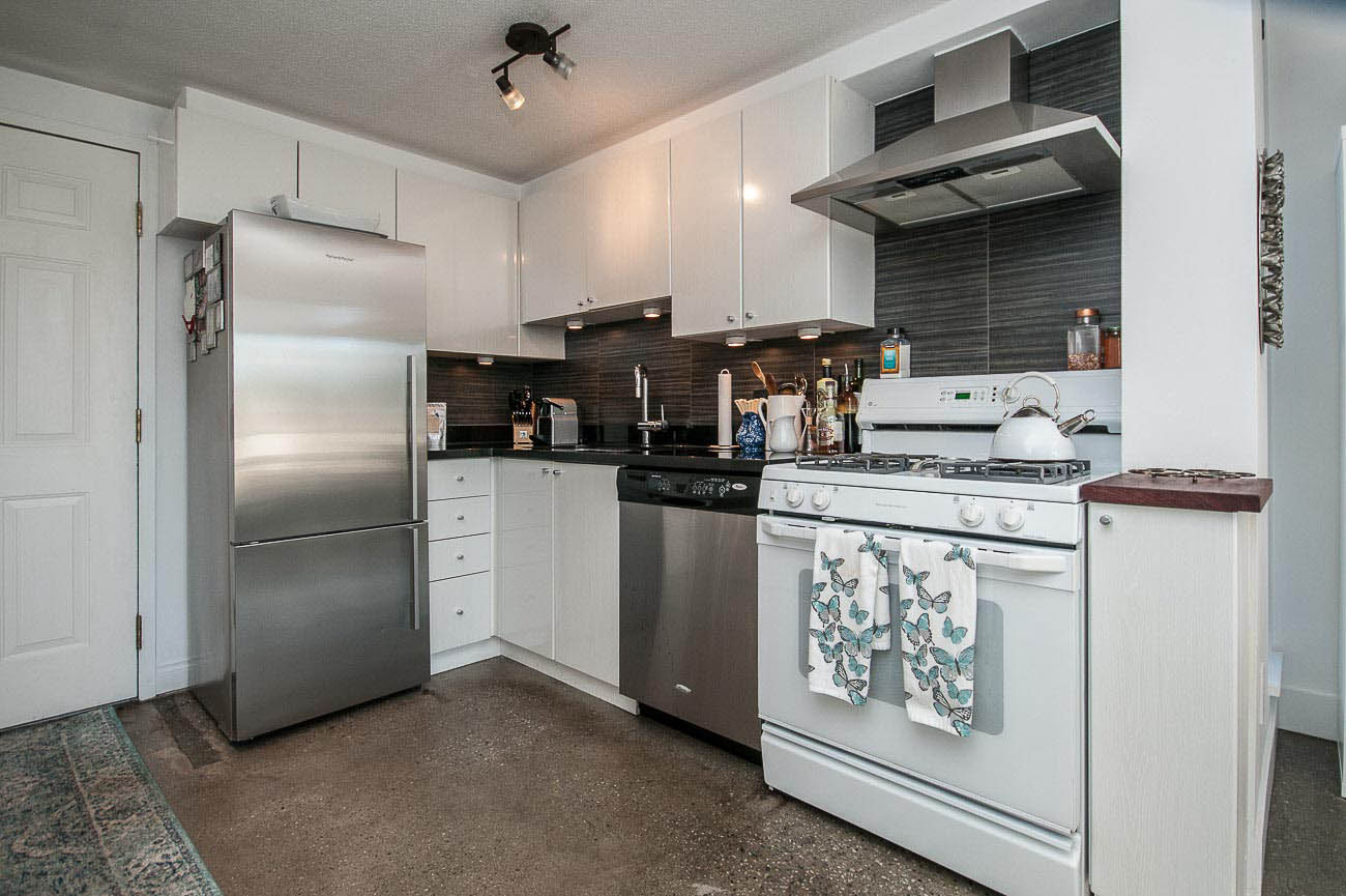 Amazing loft-like suite at The Galleria. Bright updated unit with abundance of natural light. Granite countertops, gas fireplace in living room and radiant in floor heating. Huge 300 sq ft south facing wrap around patio with city views. Steps to Granville Island, Kitsilano Beach, Vanier Park, dining, bus routes and W. 4th Corridor. 1 secured underground Parking and storage locker included! Email Unique to view this suite today!