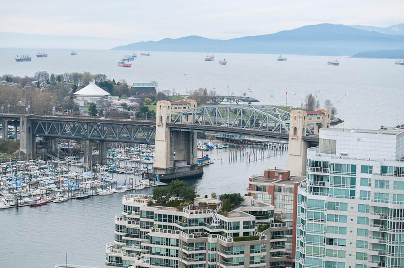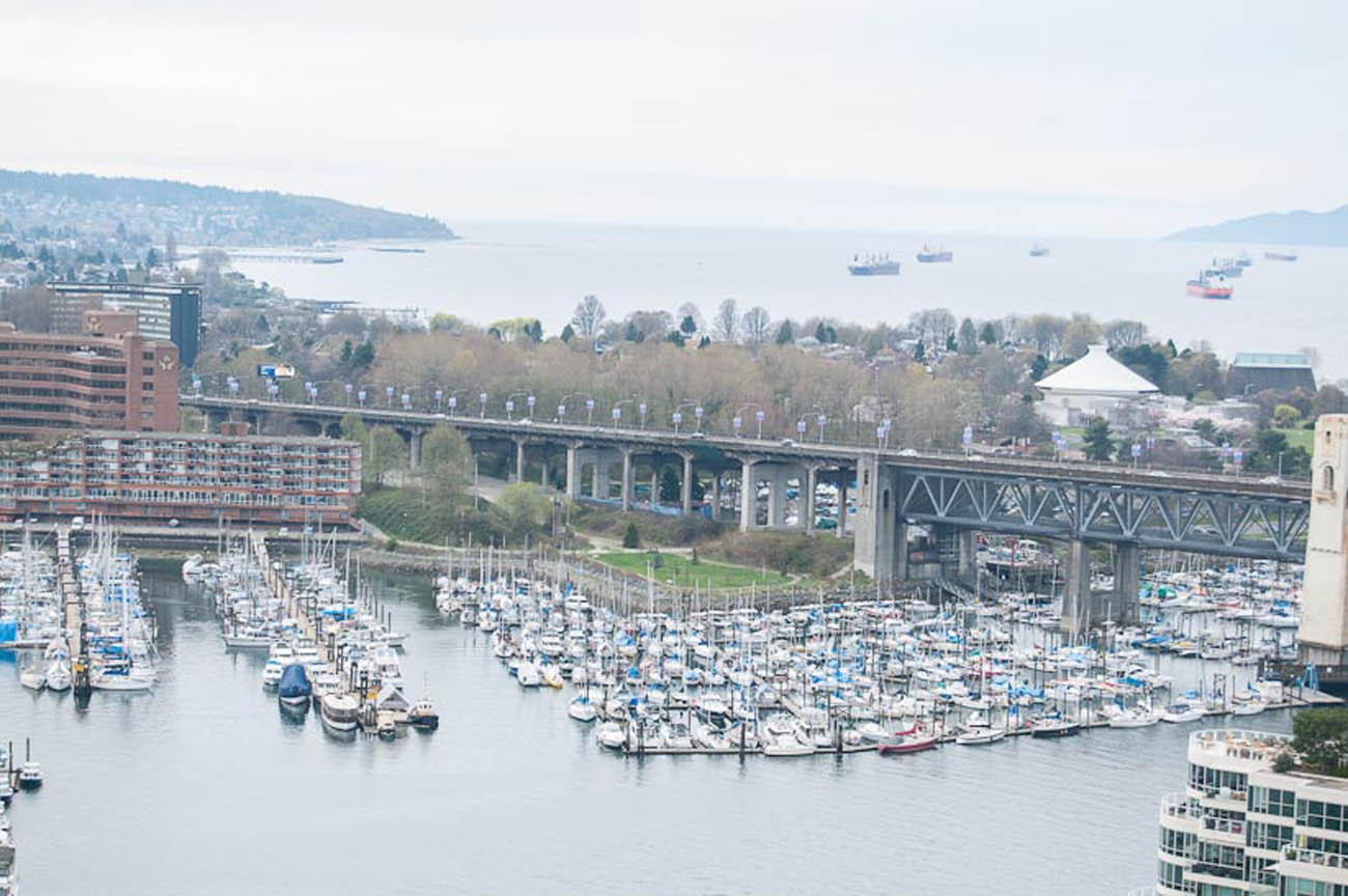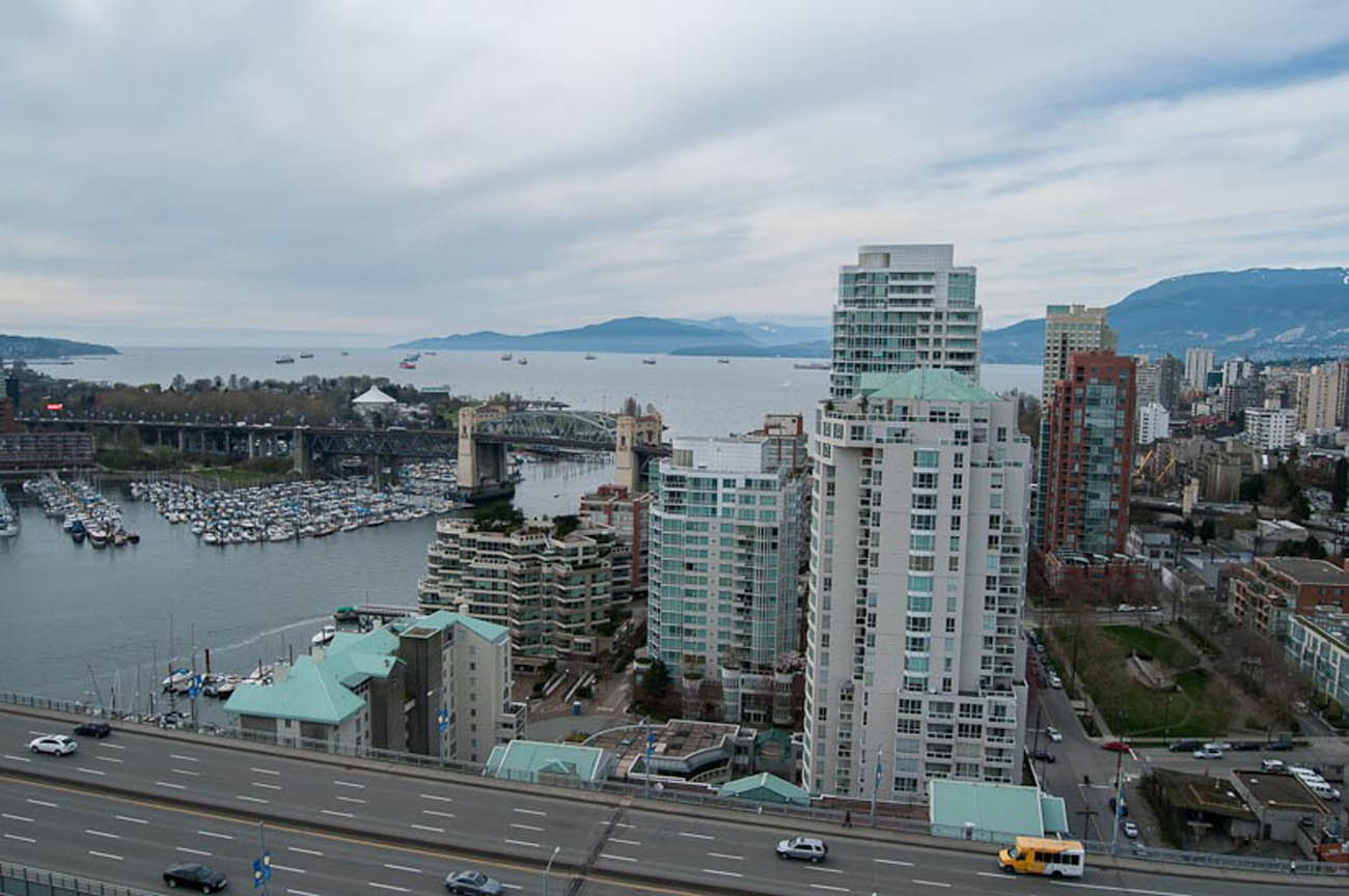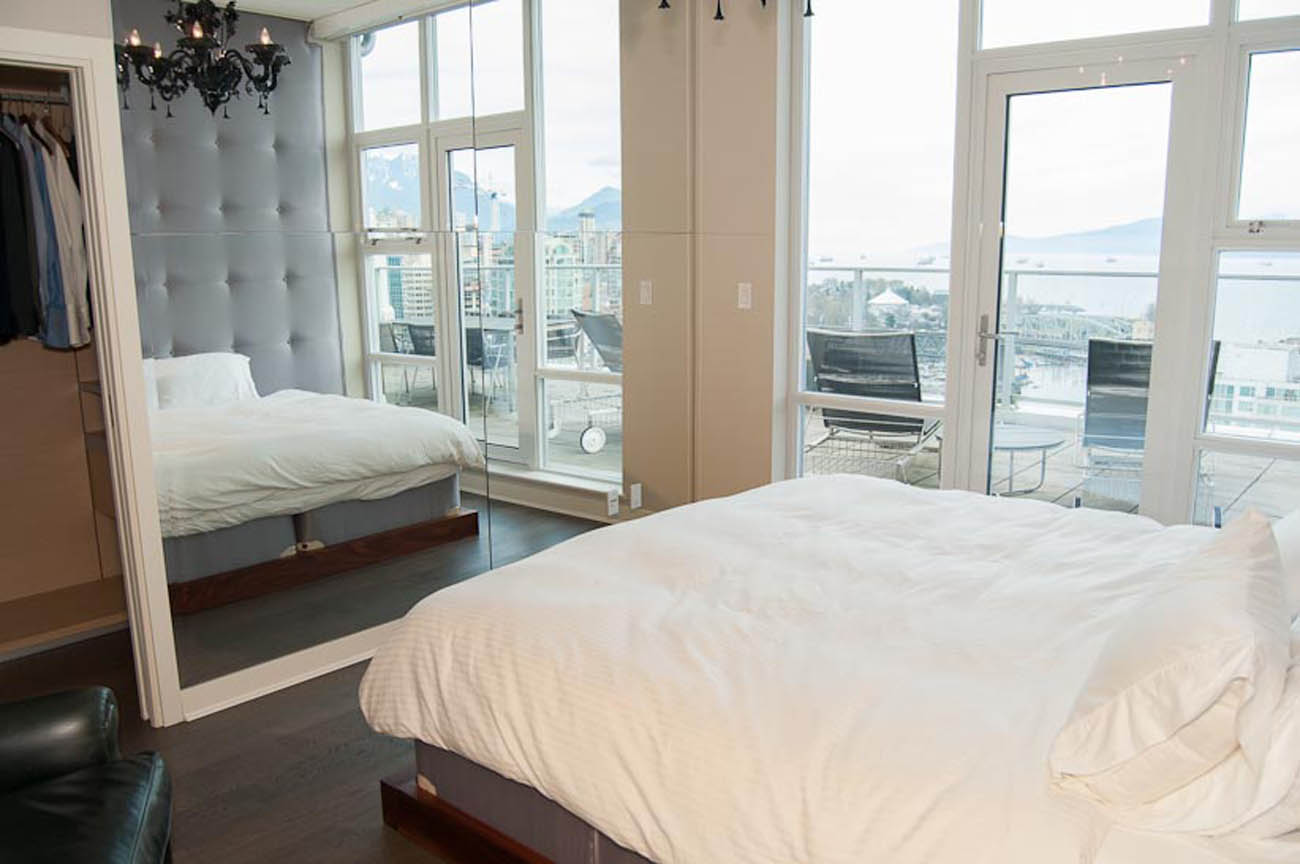 Stunning penthouse in desirable waterfront False Creek location. Spacious 2 bedroom unit with fantastic layout featuring 180 degree unobstructed views of English Bay, UBC and mountains. Many features including gourmet chef's kitchen with top of the line appliances, oak floors, steam shower, over height ceilings, A/C, motorized Lutron sunshades and black-out blinds in bedrooms. Building amenities include concierge, indoor pool, hot tub, steam room, gym, meeting/party room and theatre. 1 parking stall included.