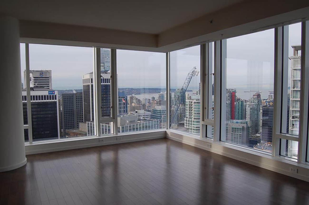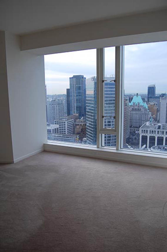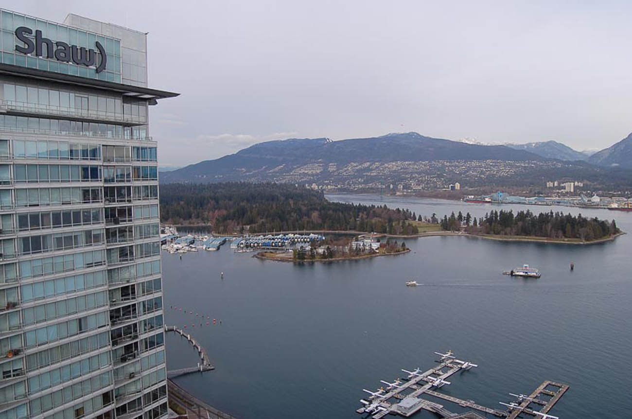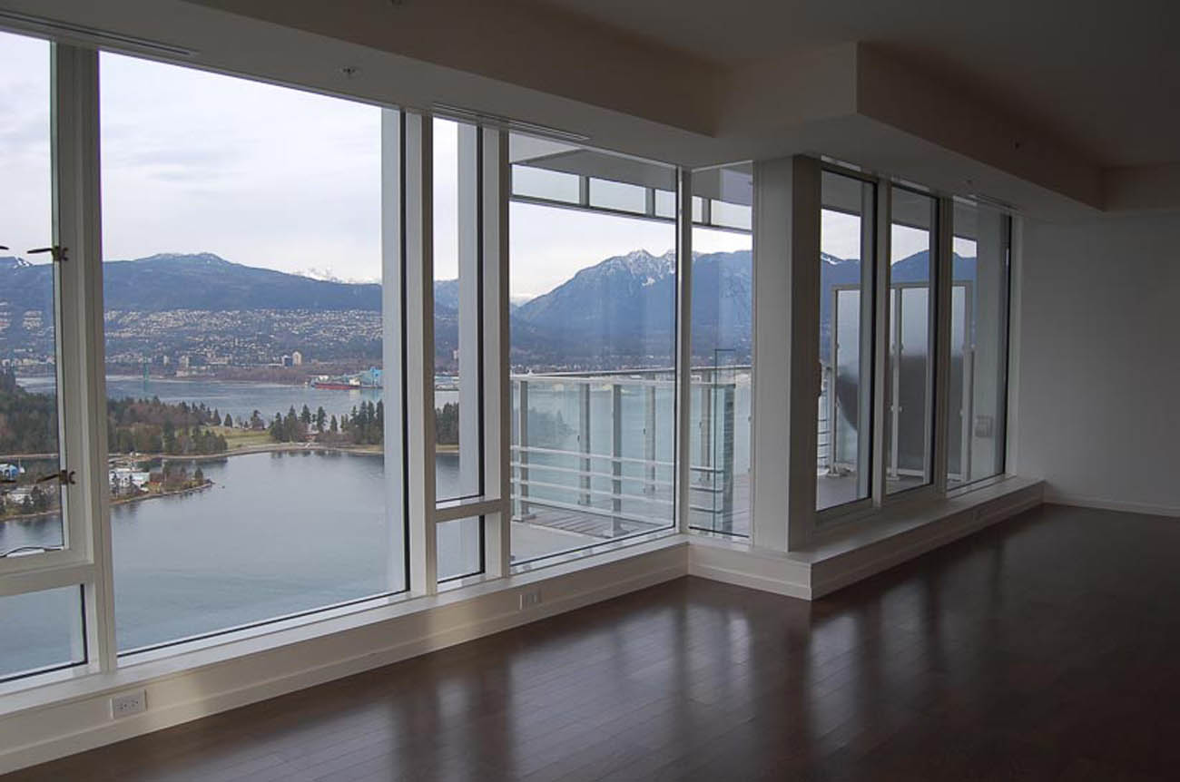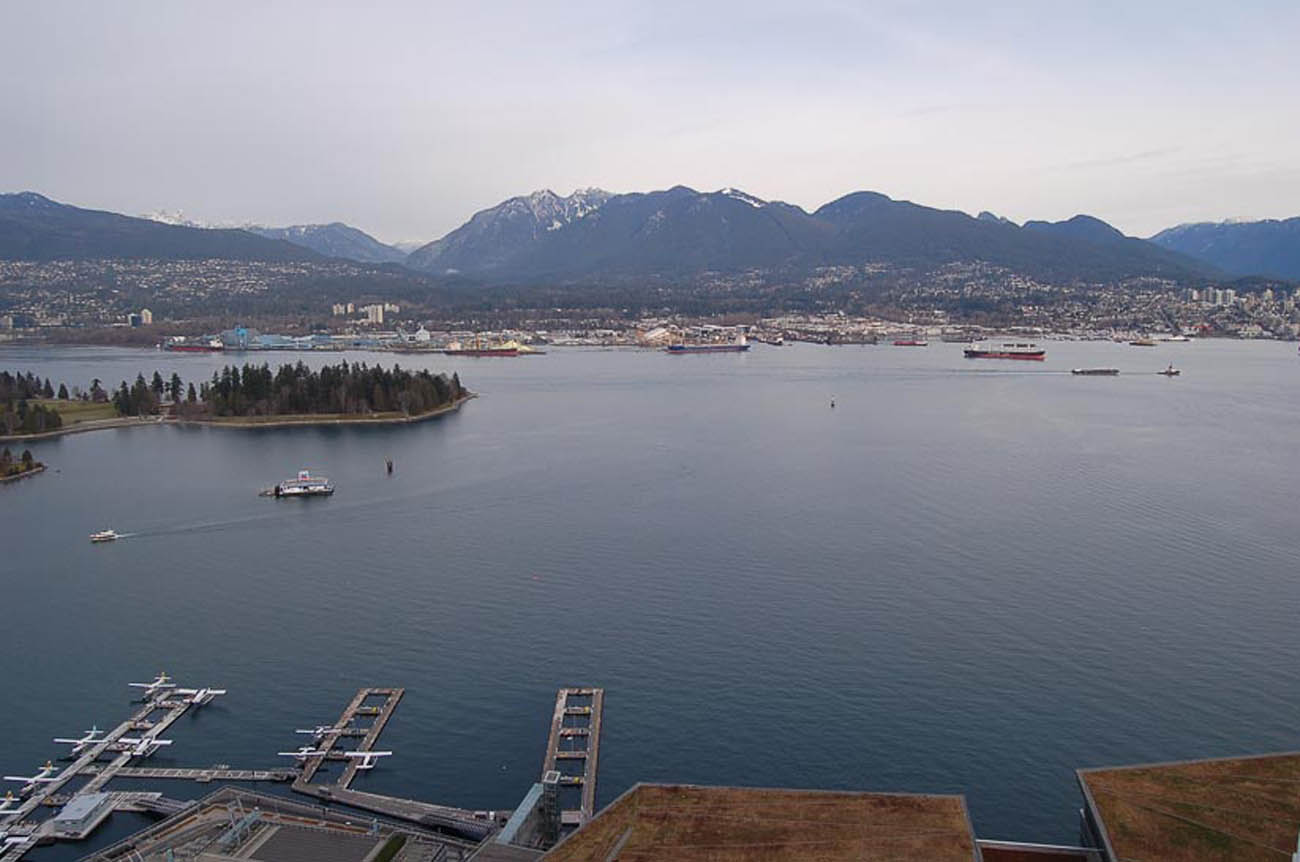 One of the most spectacular buildings on Vancouver's waterfront. Spacious 2 bedroom and den offers a panoramic view and night view of Vancouver. Features luxury items such as central air conditioning, built-in cappuccino maker, spa like baths, Lutron electronic shades, leather bound entry ways, iPod docking systems and over height ceilings, as well as a chef's kitchen featuring Miele appliances. Located atop the 5 star Fairmont Hotel, with the hotel's amenities a phone call away. 1 storage and parking stall included.