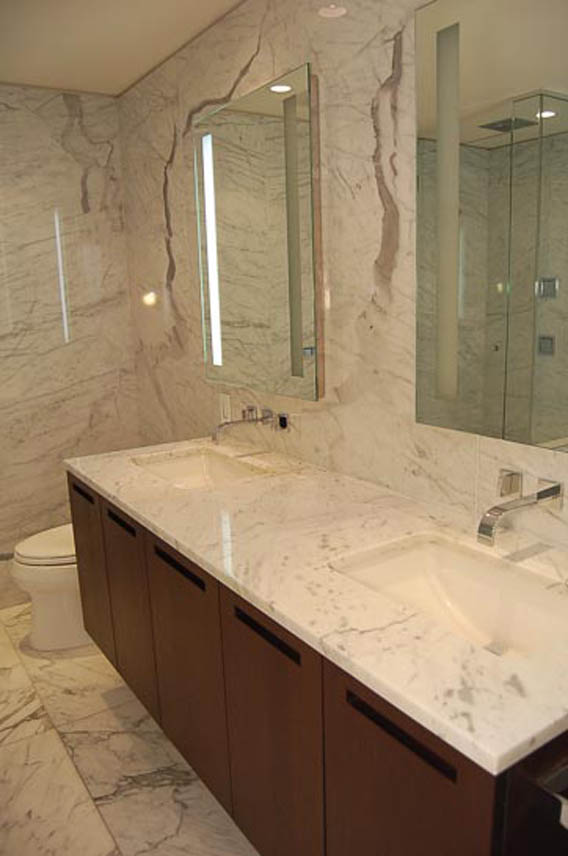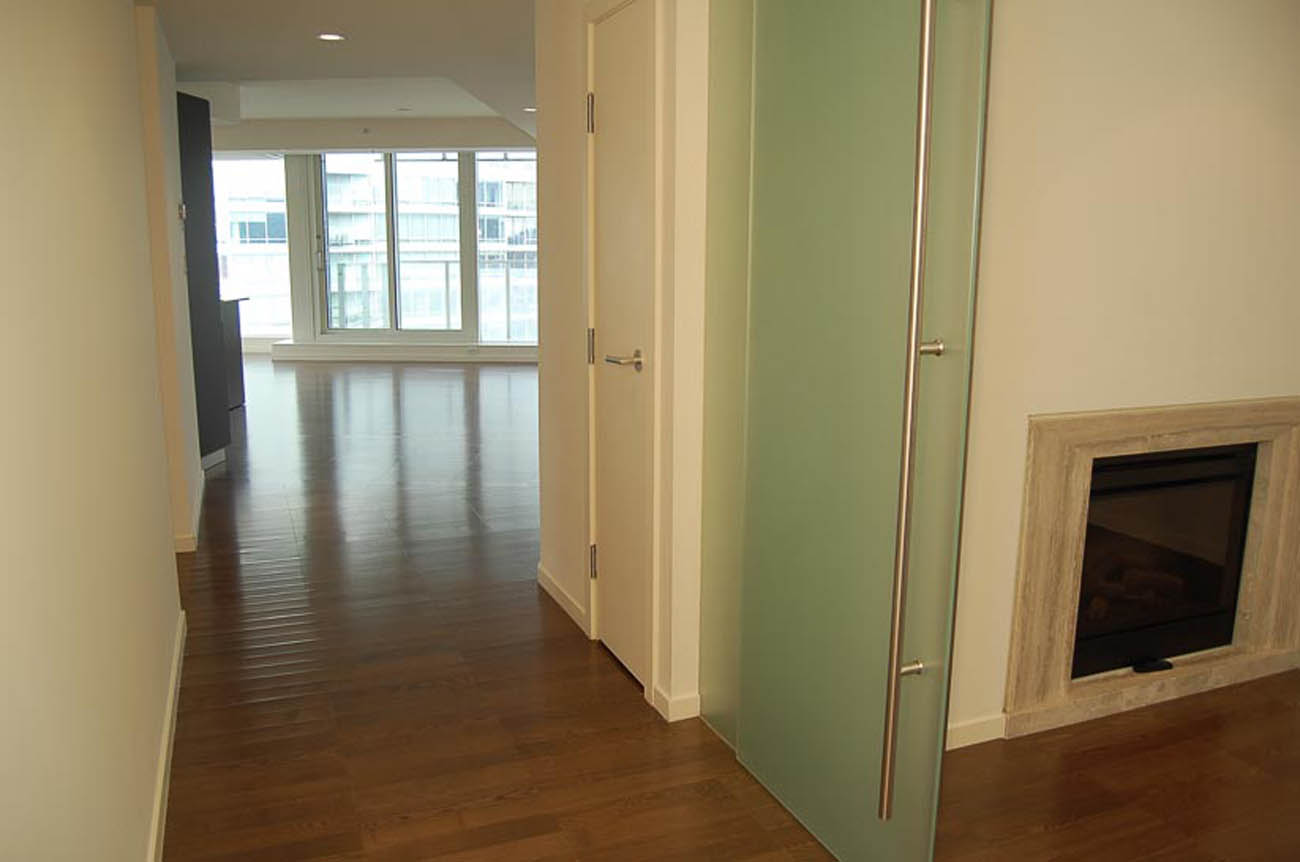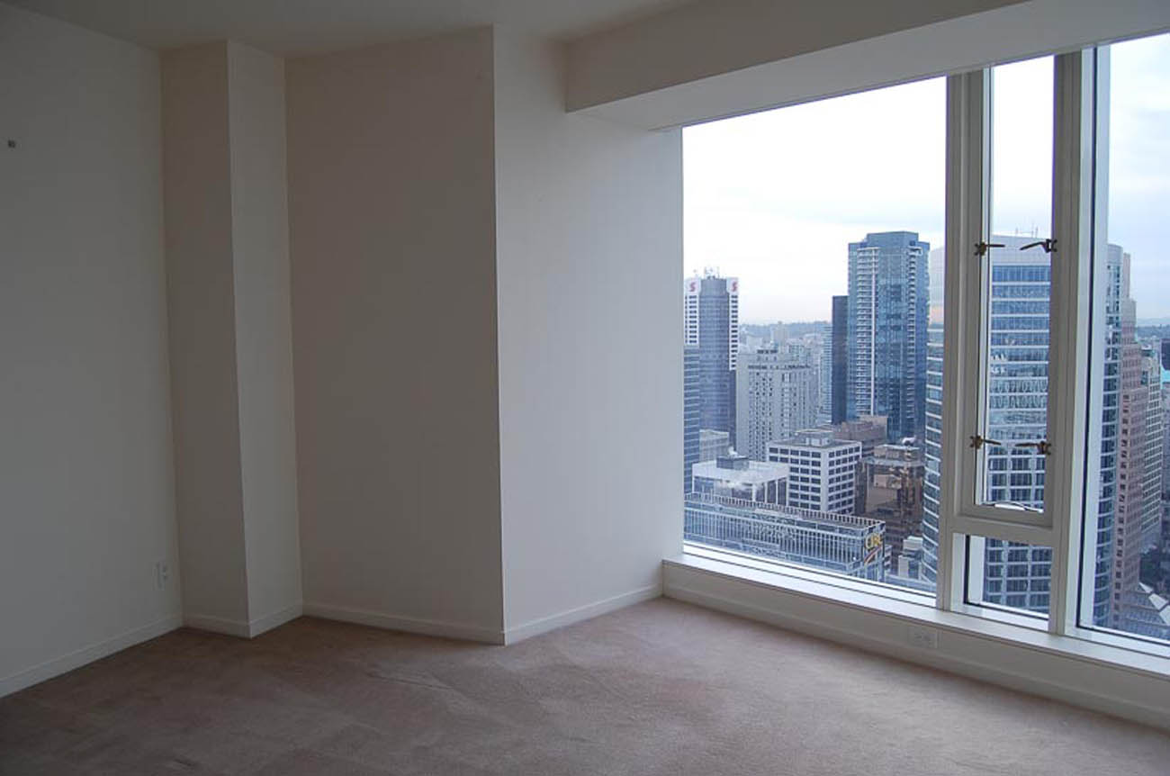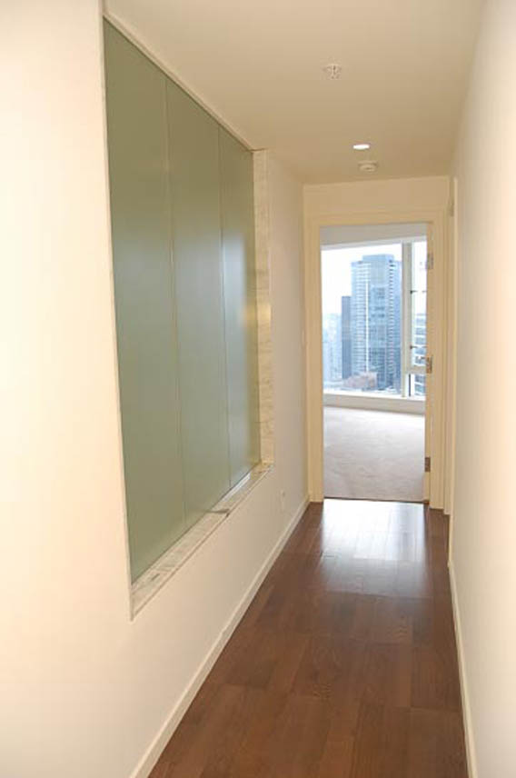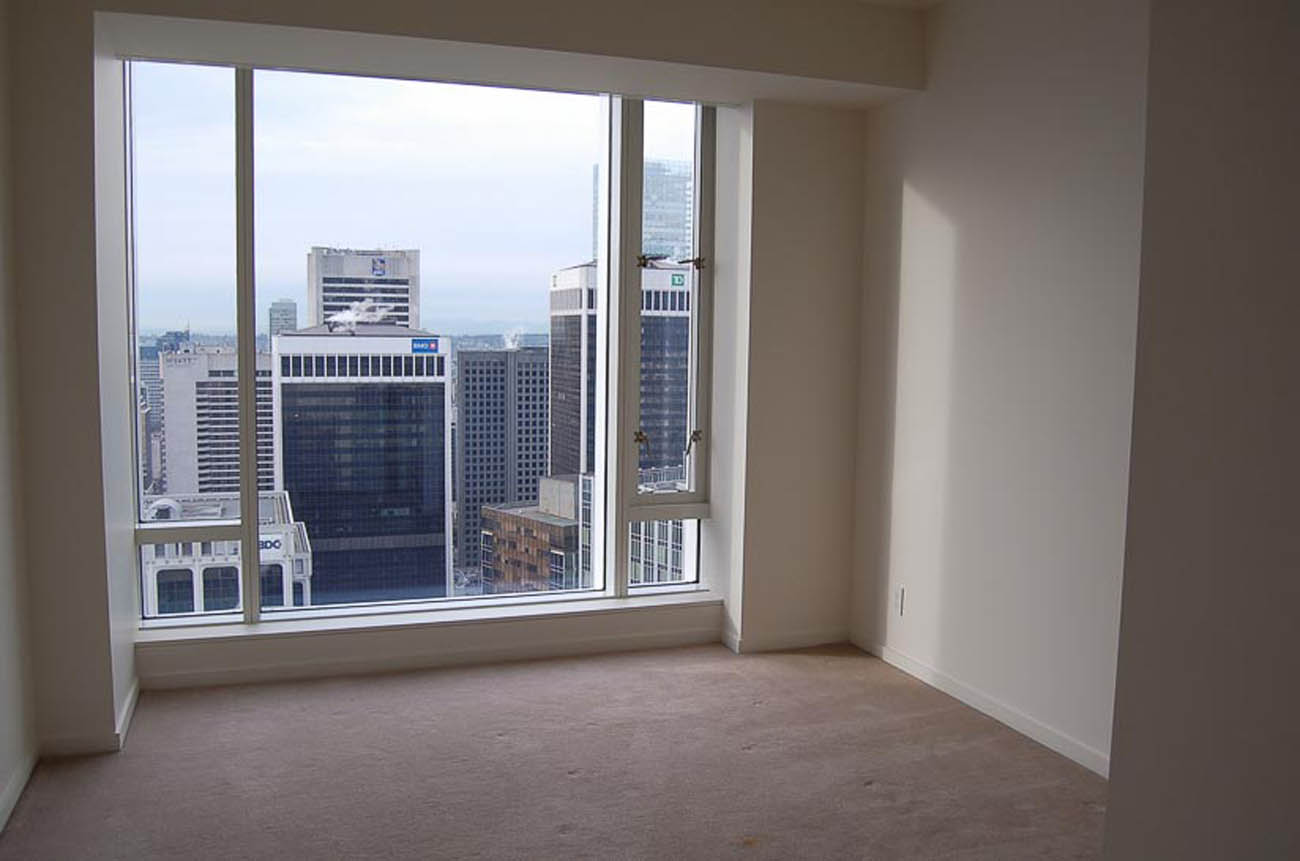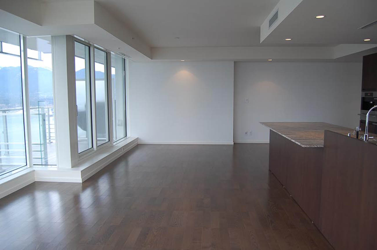 One of the most spectacular buildings on Vancouver's waterfront. Spacious 2 bedroom and den offers a panoramic view and night view of Vancouver. Features luxury items such as central air conditioning, built-in cappuccino maker, spa like baths, Lutron electronic shades, leather bound entry ways, iPod docking systems and over height ceilings, as well as a chef's kitchen featuring Miele appliances. Located atop the 5 star Fairmont Hotel, with the hotel's amenities a phone call away. 1 storage and parking stall included.
