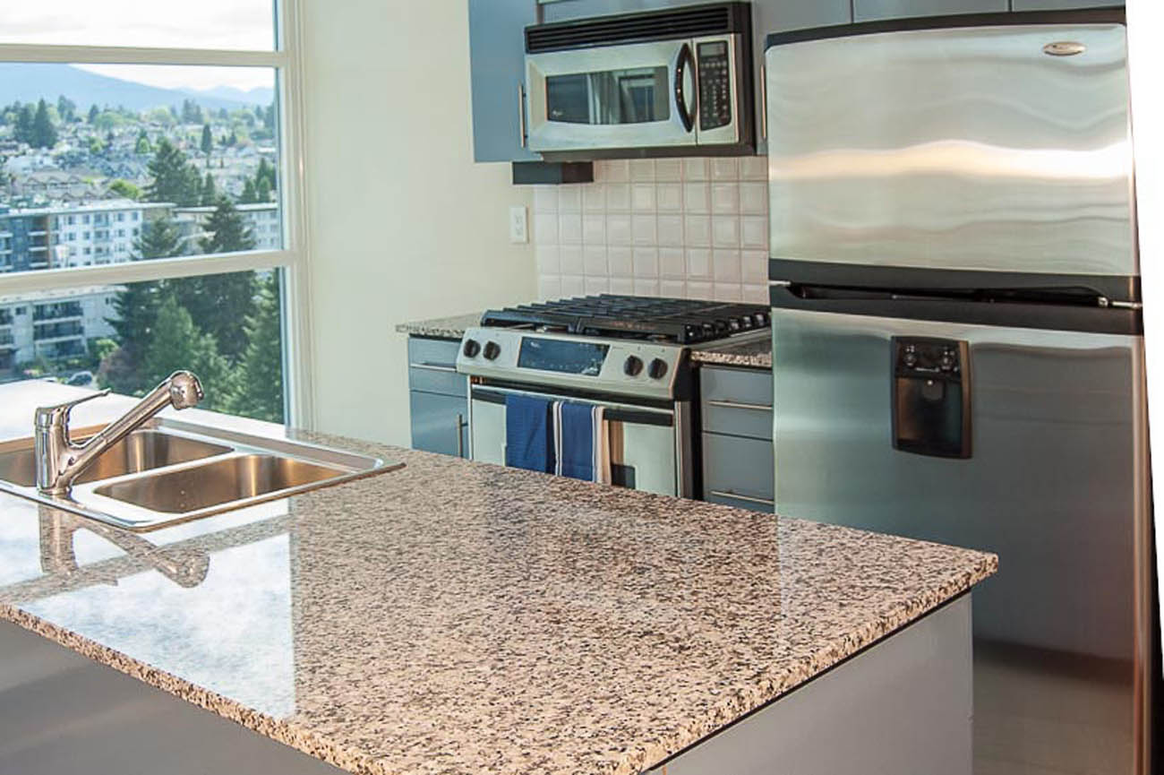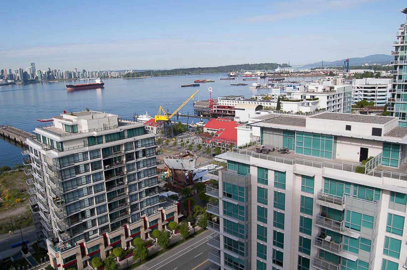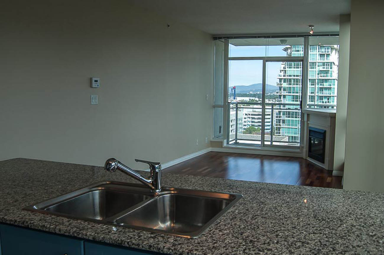 Bright and spacious 2 bedroom 2 bath unit featuring open layout, rich hardwood floors, kitchen with granite counters, large island, stainless steel appliances including gas cooktop. Large master features ensuite and walk-in closet. In-suite washer/dryer and A/C. Corner unit with west facing balcony with city and mountain views, BBQ's allowed. Great location- just steps to the sea bus, shopping and dining. One parking stall and storage unit included. NO FREE ACCESS TO HOTEL AMENITIES. Membership options available at additional fee.