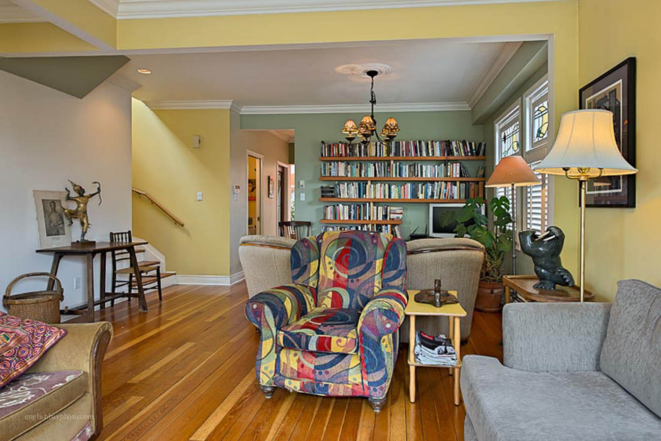 Welcome to the award winning "Jones Residence" a beautiful heritage home completely restored in 1992 from the foundation up. Main floor of this lovely home is available and features original fir floors, granite counters, 9 foot ceilings, city views, living room with large bay window and bright family room with French doors opening to private garden patio. 2 bedrooms and 1.5 bathrooms. Single detached garage negotiable to be included with rental.