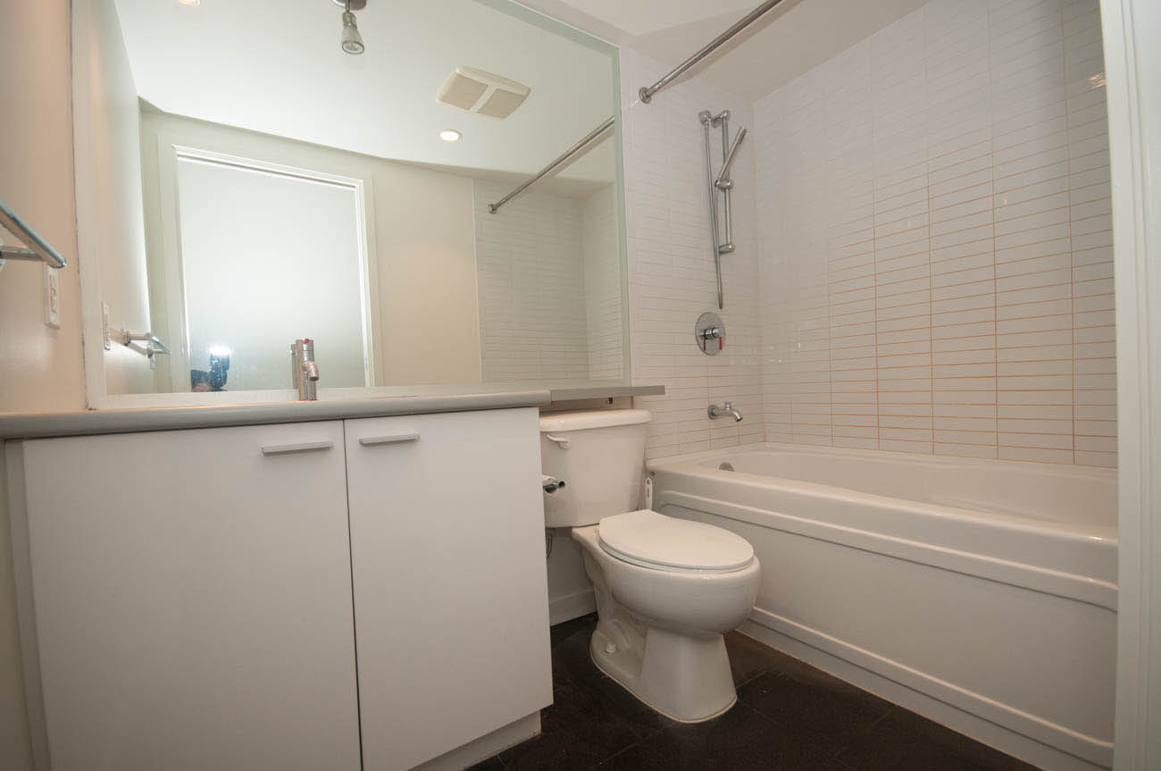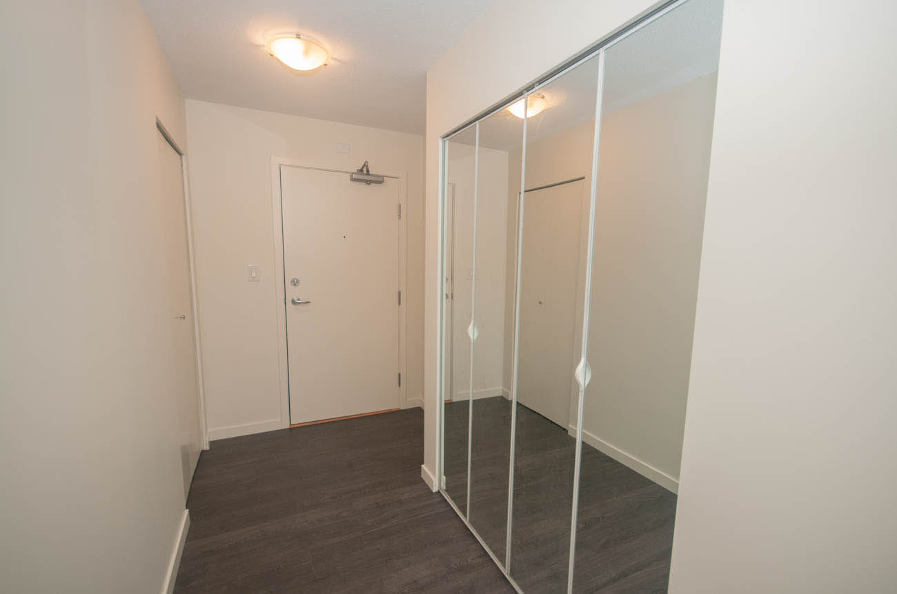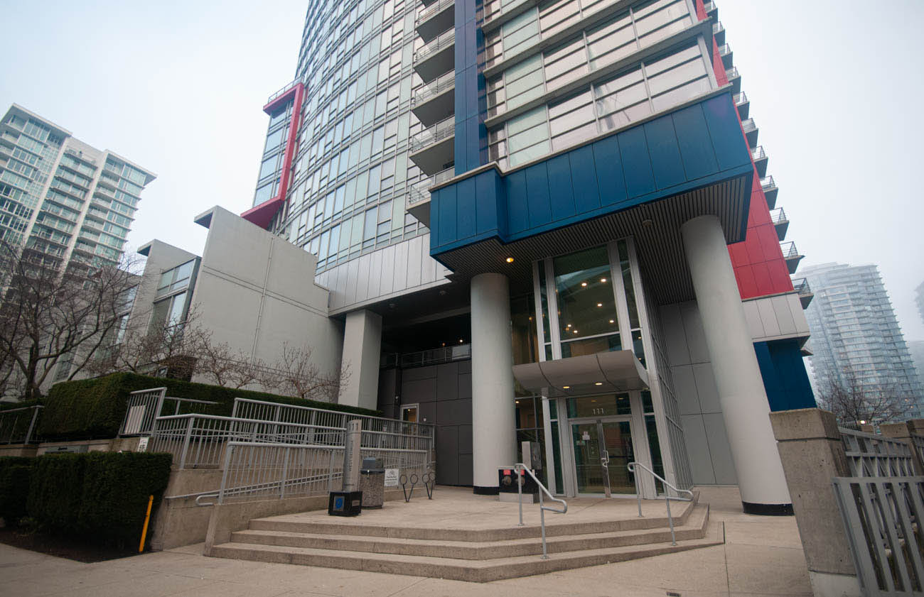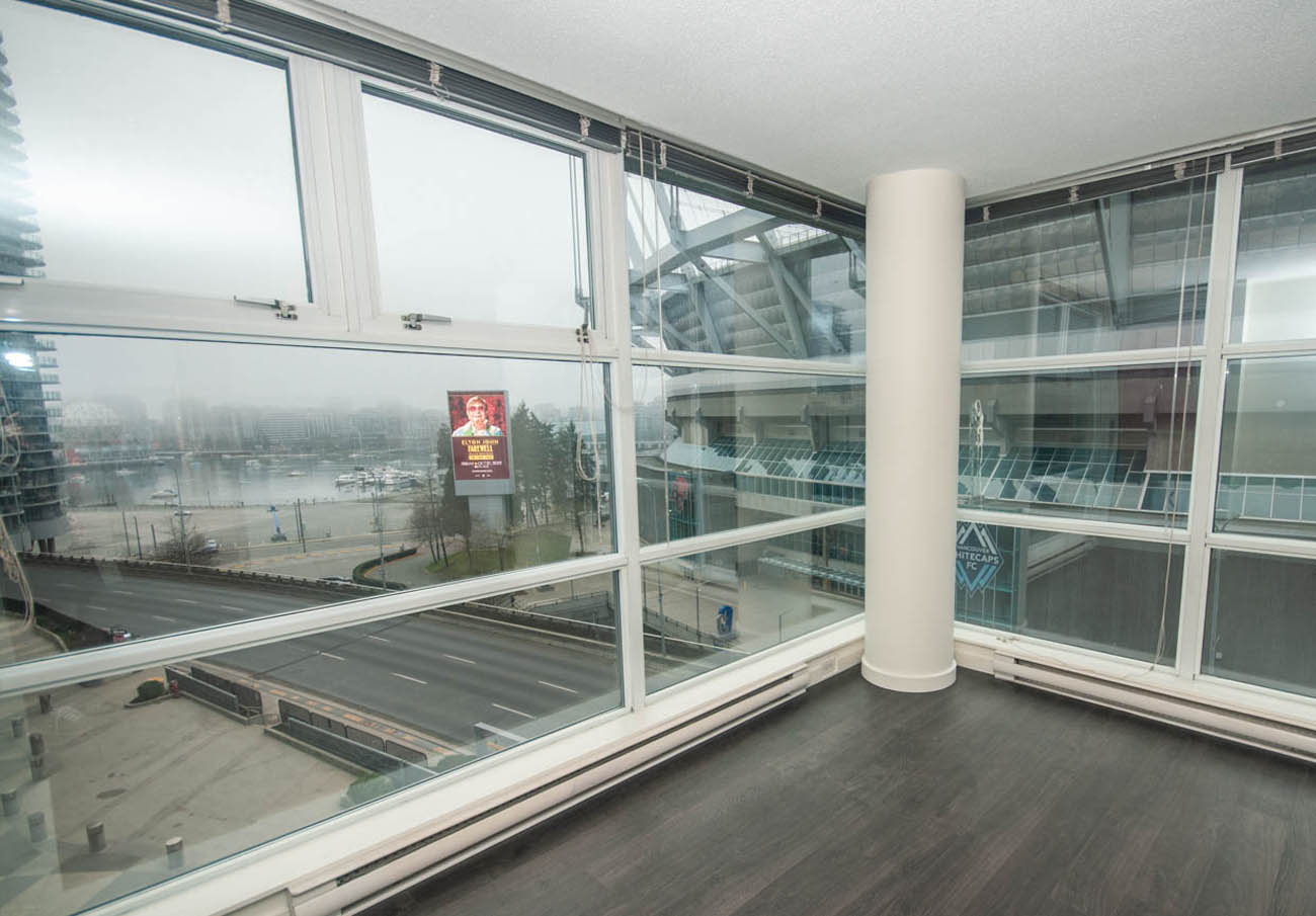 Spacious 2 bedroom unit at The Spectrum! Bright, corner unit featuring laminate flooring, floor to ceiling windows and balcony with great SW views of False Creek, GM Place and BC Place. Enjoy fitness facilities including an indoor swimming pool, hot tub, fully equipped gym, party room and 24 hr concierge service. Great location within walking distance to the SkyTrain, Costco, parks, Rogers Arena, downtown and Gastown shopping and dining. 1 parking stall included. There is no storage locker, but the condo has a large en-suite storage space. Move-in strata fee applies!