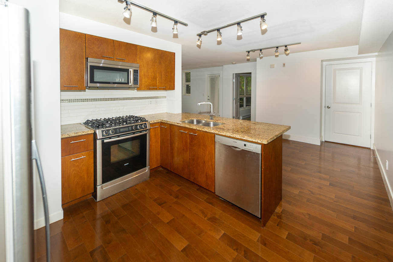 Beautiful 2 bed, 2 bath unit in prestigious Point Grey! Wall-to-wall quality carpeting in bedroom. Natural granite slab countertop, under-mount double stainless steel sink, Bosch, Fisher & Paykel stainless steel appliance package. Acrylic tub with polished chrome fixtures and rainhead shower. Suite's pre-wired for security system, electronic key fob controlled access to all areas. Ground level patio and fenced yard. Contemporary, elegant lobby and common areas. Fantastic location, Jericho Beach, Jericho Park, shopping center, bank and restaurants all within 200 meters. 1 parking stall and storage unit included. ONLY 1 PET ALLOWED. NOTE: UNIT WILL BE REPAINTED ONCE CURRENT TENANT MOVES OUT.