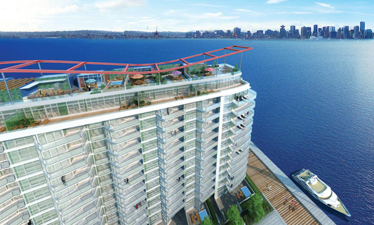 This Trophy at the Pier residence features A/C, 9-foot ceilings, remote-controlled electric fireplace with granite mantle, designer carpet with hardwood, Kohler under-mount porcelain sink, stylish Kohler polished chrome faucet & bathroom accessories, luxurious soaker tub with tile surround, gourmet kitchen with polished quartz/granite countertops, and Bosch appliances: fridge, gas range, oven, microwave, and dishwasher. Incredible harbor/skyline and west-facing view. Walk to Seabus. Enjoy the exclusive residents-only rooftop deck, drink in the grand vista of the Burrard Inlet and downtown Vancouver. Relax in the hot tub, throw dinner on the BBQ, or gather with friends around the fire pit. Trophy residents will also enjoy 5-Star amenities at the Pinnacle Hotel at the Pier: lap pool, Jacuzzi, steam room, sauna, yoga studio, a fully equipped fitness centre, and access to the knowledgeable Hotel Concierge Team. 1 parking space included.