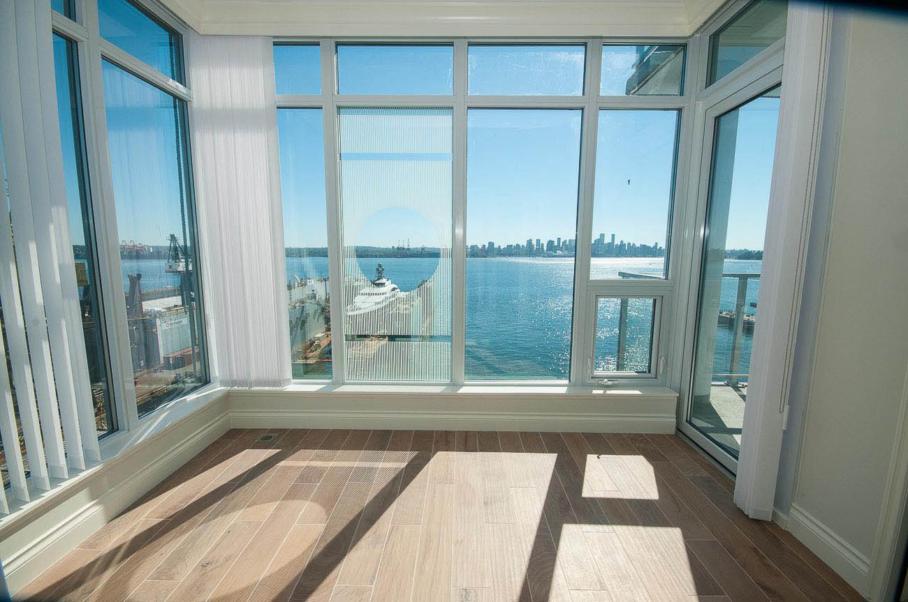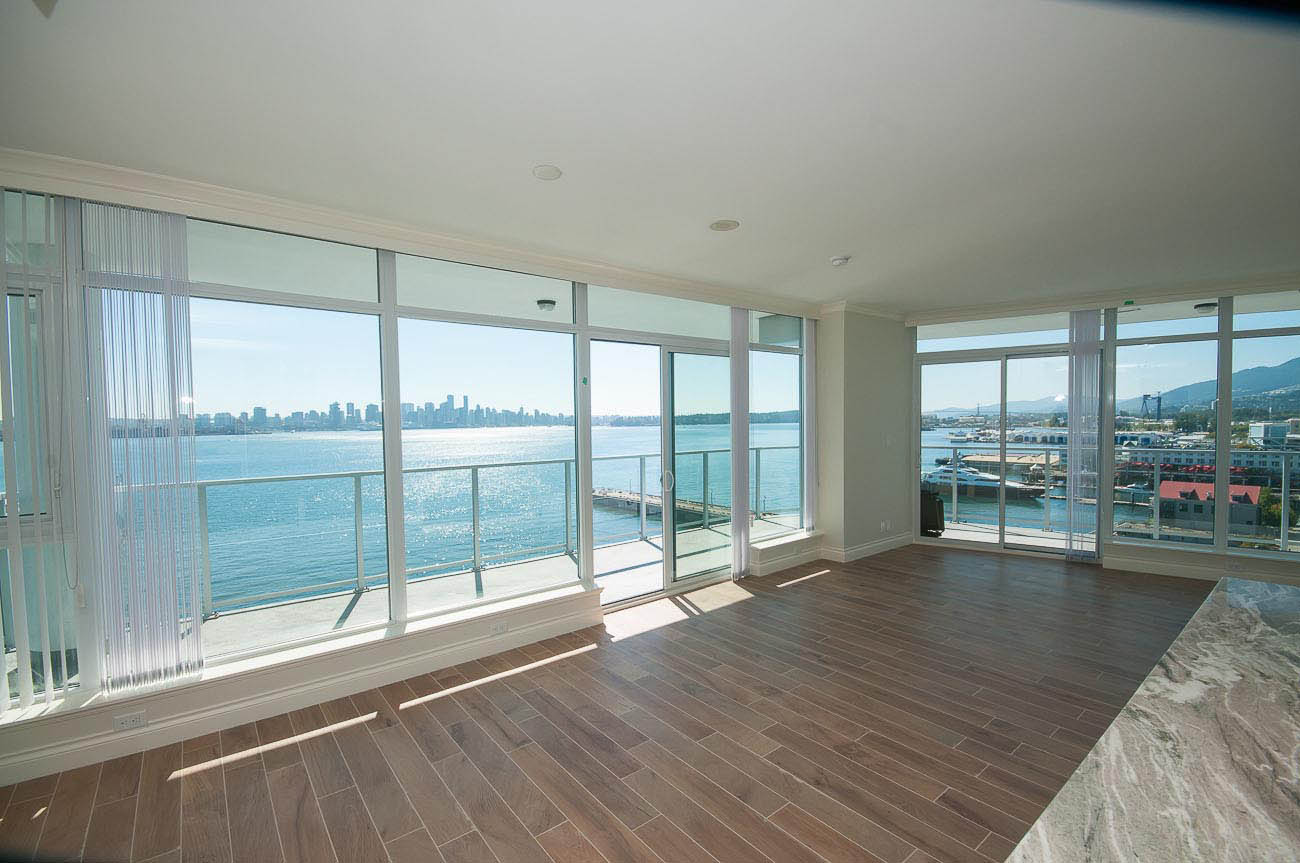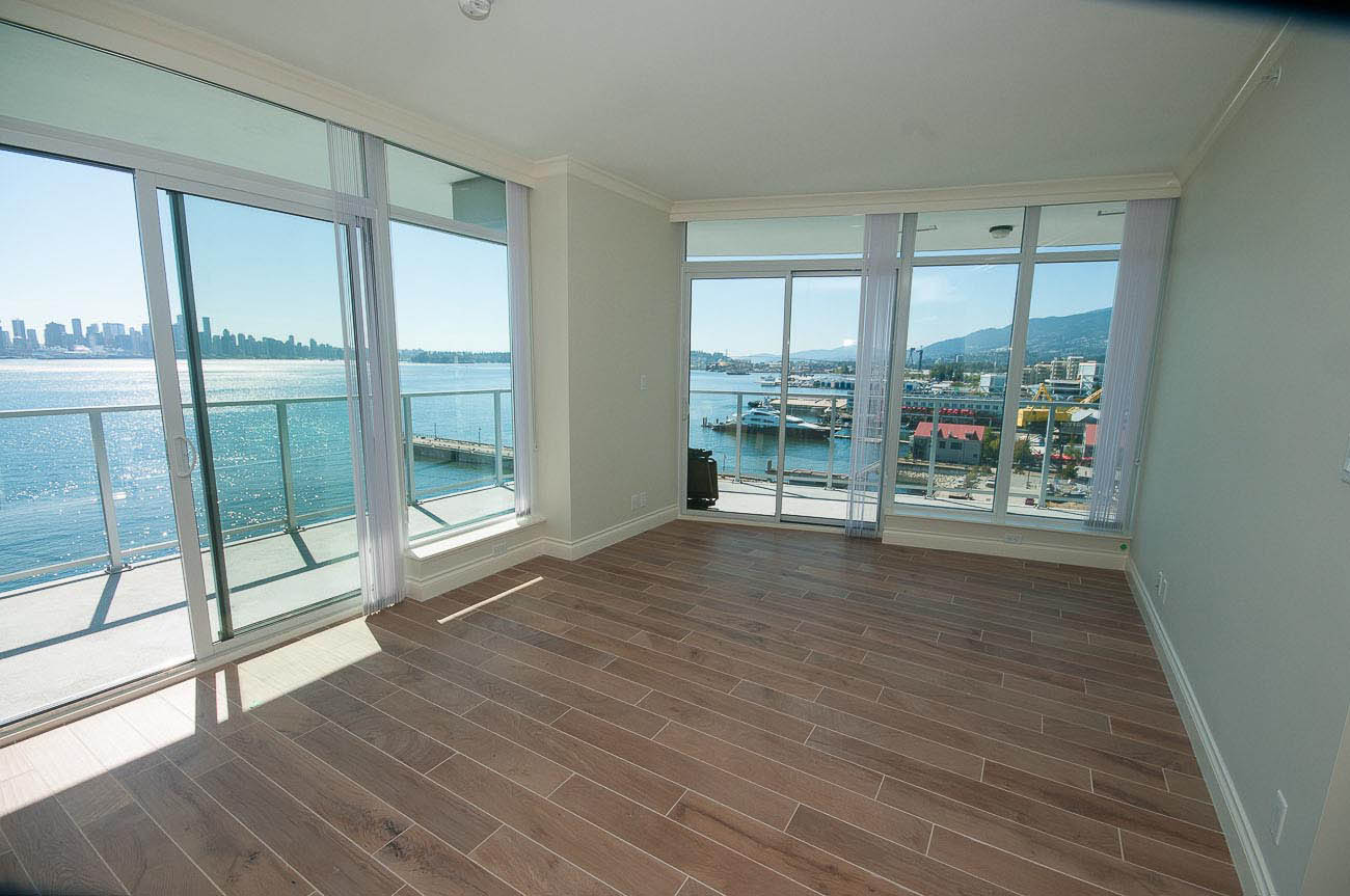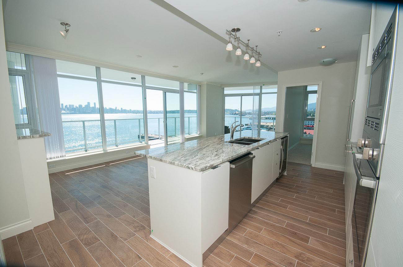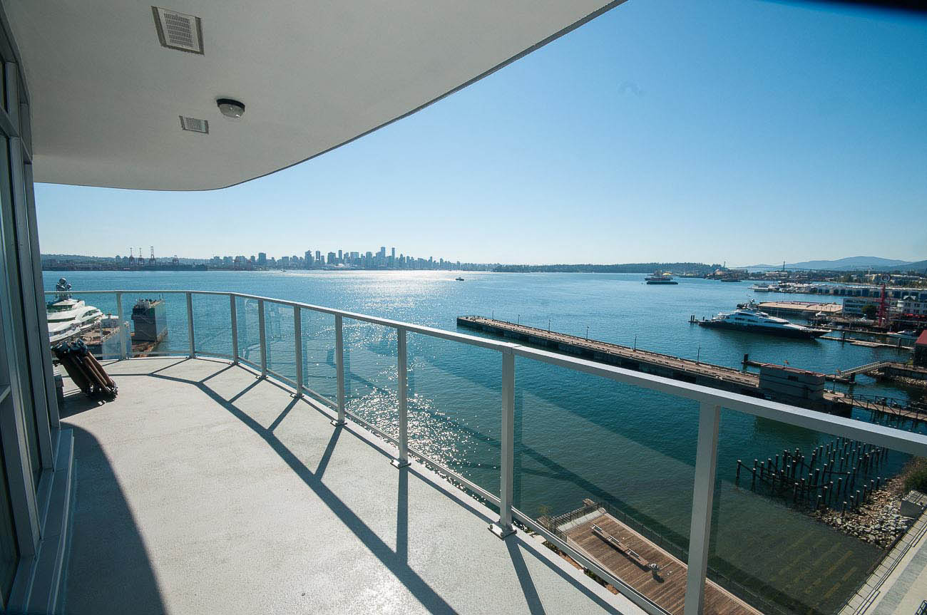 Enjoy the amazing views of downtown and lower Lonsdale from all rooms and the massive 330 wrap around patio. 3 bedrooms and den in this large open plan end unit condo. Features Air Conditioning, Custom designed electric fireplace with granite mantle, designer carpet with hardwood, designer cabinetry & vanities with quartz/marble countertop, Kohler under-mount porcelain sink, stylish Kohler polished chrome faucet & bathroom accessories, luxurious soaker tub with tile surround, gourmet kitchen with polished quartz/granite countertops, Bosch appliances, fridge, gas range, and wall oven. Living at Trophy, enjoy the exclusive resident, rooftop deck, drink in the grand vista of the Burrard Inlet and downtown Vancouver. Trophy Residents can also enjoy access to the 5-Star amenities at the Pinnacle Hotel at the Pier- lap pool, Jacuzzi, steam room, sauna, yoga studio, and a fully-equipped fitness centre. Not to mention, the knowledgeable Hotel Concierge team available to the residents of Trophy at the Pier. Includes parking for 2 and a storage locker.