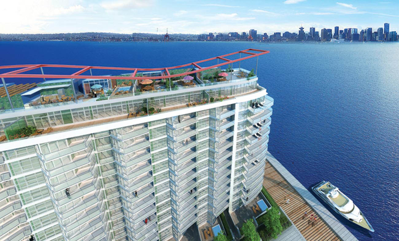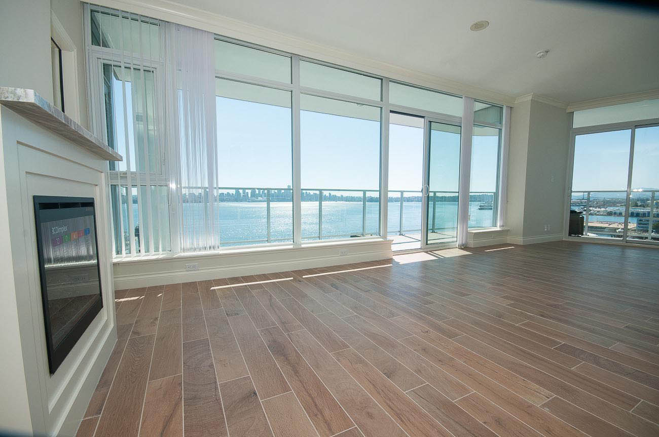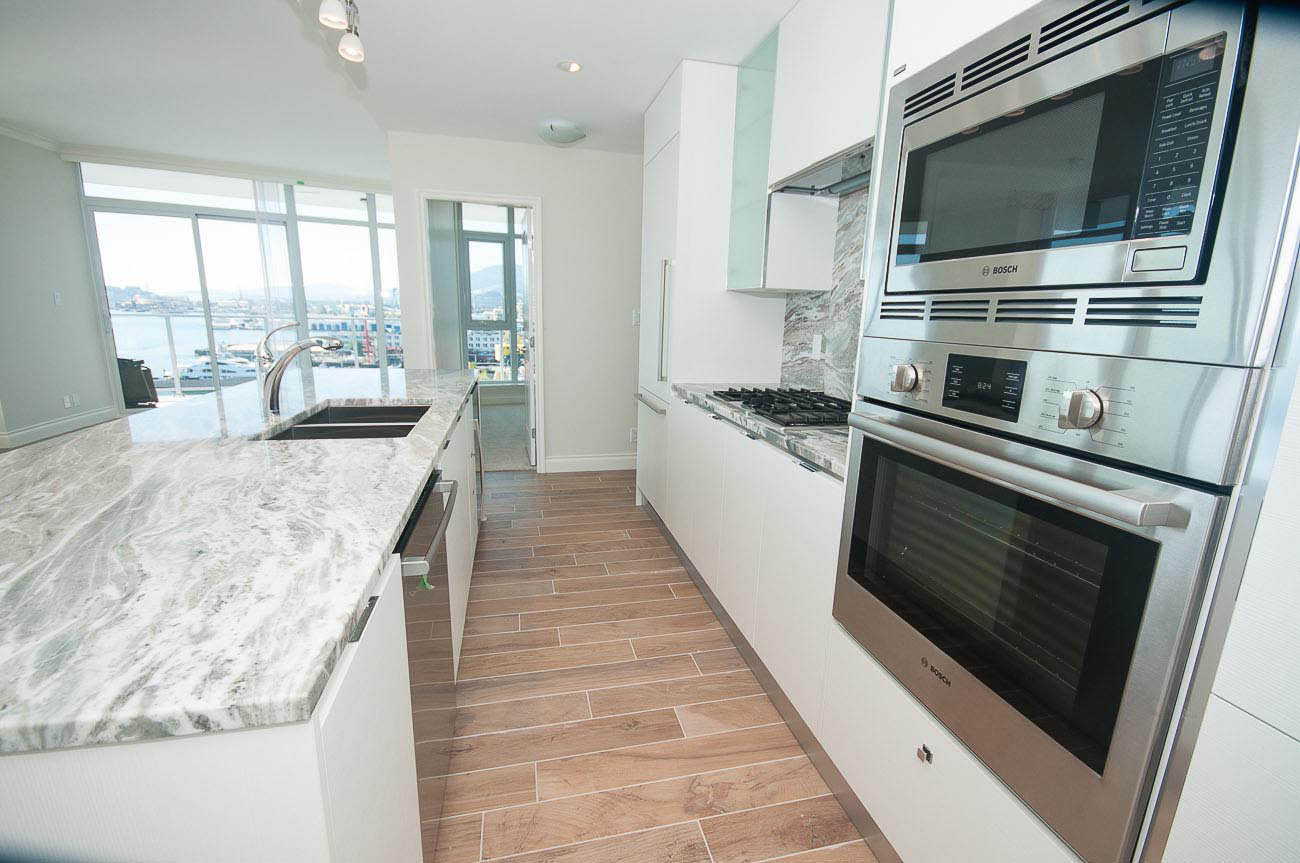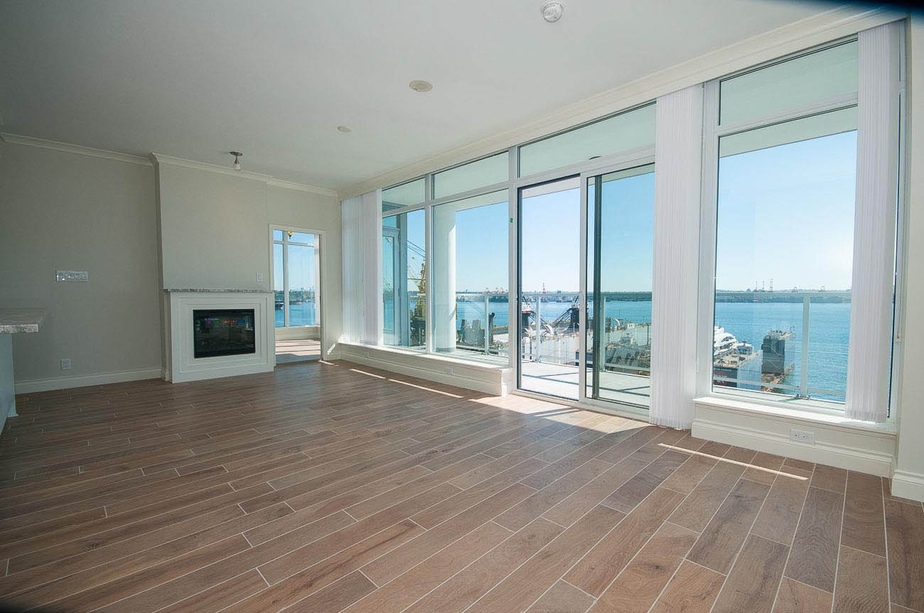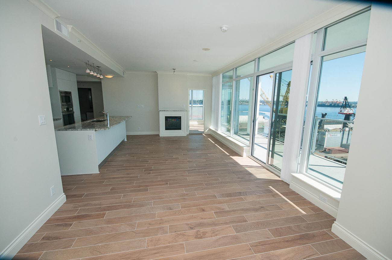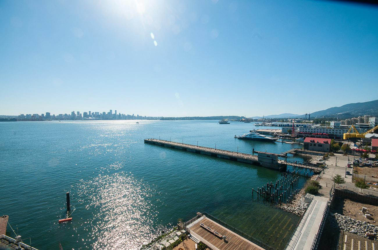 Enjoy the amazing views of downtown and lower Lonsdale from all rooms and the massive 330 wrap around patio. 3 bedrooms and den in this large open plan end unit condo. Features Air Conditioning, Custom designed electric fireplace with granite mantle, designer carpet with hardwood, designer cabinetry & vanities with quartz/marble countertop, Kohler under-mount porcelain sink, stylish Kohler polished chrome faucet & bathroom accessories, luxurious soaker tub with tile surround, gourmet kitchen with polished quartz/granite countertops, Bosch appliances, fridge, gas range, and wall oven. Living at Trophy, enjoy the exclusive resident, rooftop deck, drink in the grand vista of the Burrard Inlet and downtown Vancouver. Trophy Residents can also enjoy access to the 5-Star amenities at the Pinnacle Hotel at the Pier- lap pool, Jacuzzi, steam room, sauna, yoga studio, and a fully-equipped fitness centre. Not to mention, the knowledgeable Hotel Concierge team available to the residents of Trophy at the Pier. Includes parking for 2 and a storage locker.