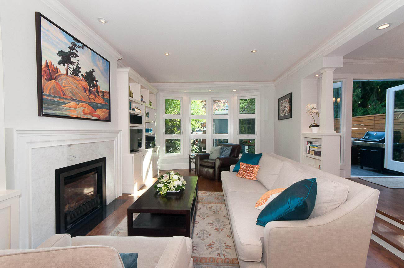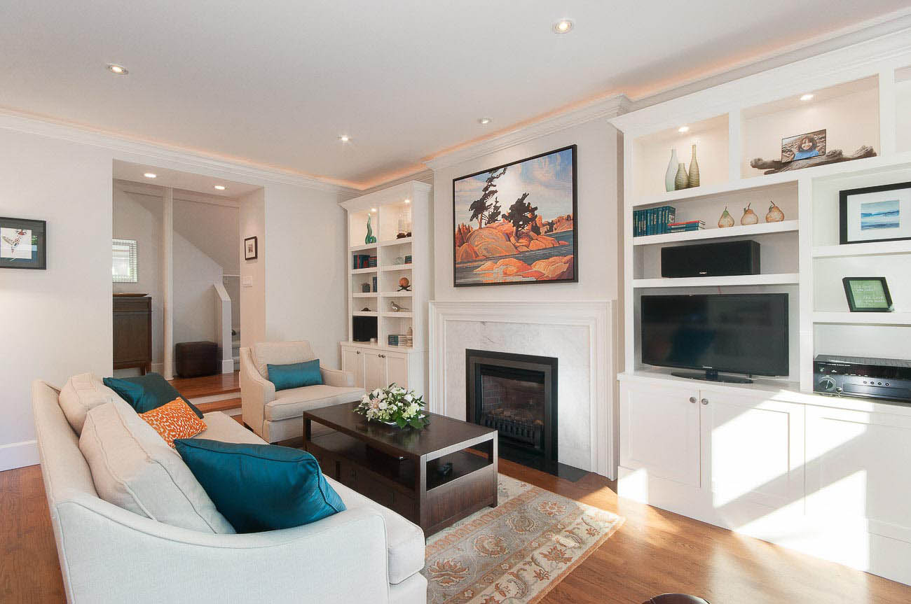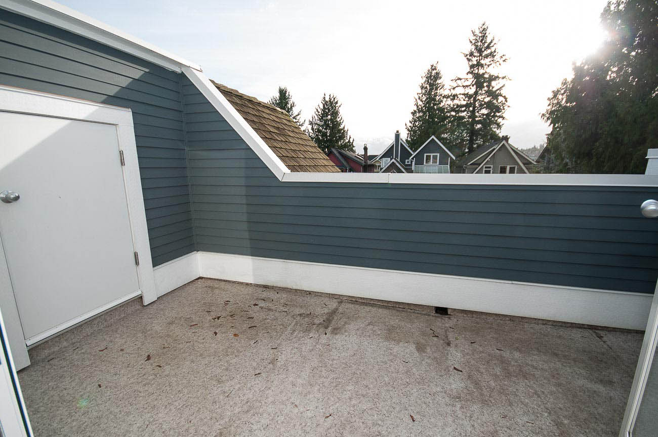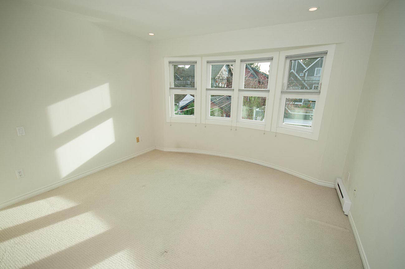 Architecturally designed, south-facing 1500 sf, 1/2 duplex on a quiet street, north of 4th avenue, with a beautiful sun-drenched back yard. This well laid out home offers a main level with an open kitchen, dining area and a sunken living room with a gas fireplace, all featuring gorgeous hardwood floors. The dining room has French doors that open up to a professionally designed garden and deck area, perfect for alfresco dining in the summer! The upper floor has two bedrooms, one of which is a master suite with its own ensuite bathroom. The top floor boasts a loft area with a private south-facing deck, making it a possible 3rd bedroom, den or home office. Renovations over the last few years enhance this meticulously maintained home, including new appliances, custom high end cabinetry and millwork, new paint in and out, new windows, new hardwood decking, landscape lighting and irrigation. The one car garage has an EV charging station and there is a shed for bike storage. There is lots of well-designed storage. Bayview Elementary and Kits high school catchments, all of this within a very short walk to Jericho Beach and Kitsilano's shops and cafes!