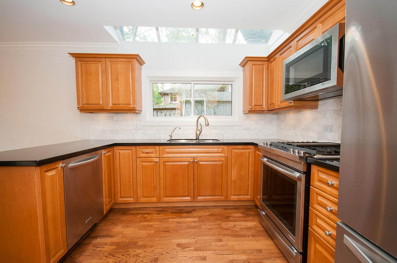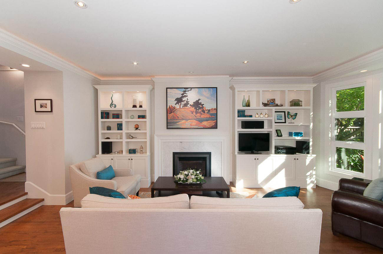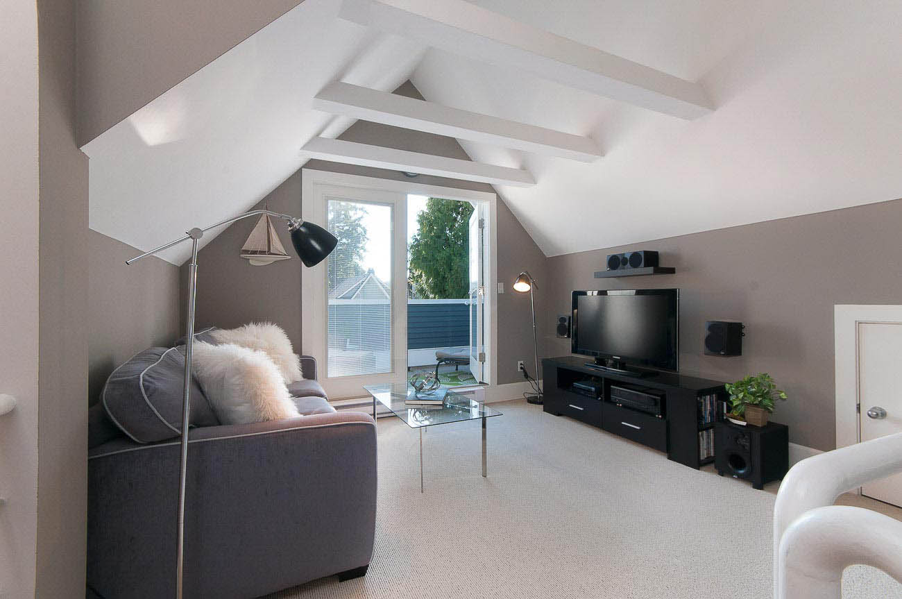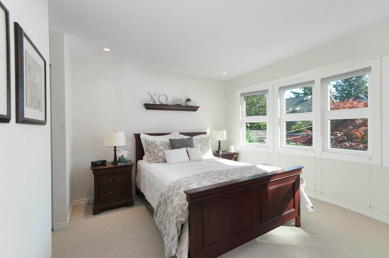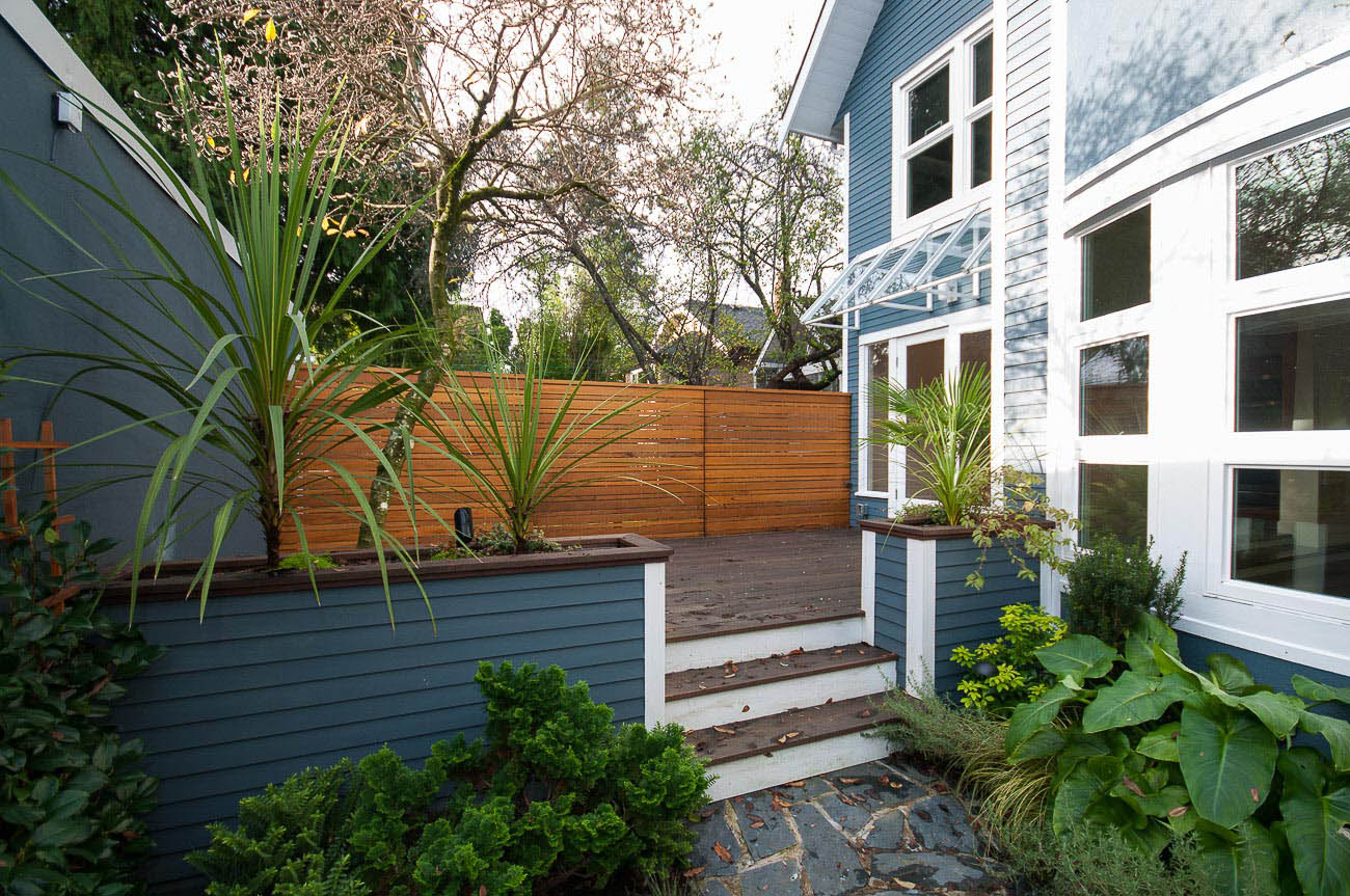 Architecturally designed, south-facing 1500 sf, 1/2 duplex on a quiet street, north of 4th avenue, with a beautiful sun-drenched back yard. This well laid out home offers a main level with an open kitchen, dining area and a sunken living room with a gas fireplace, all featuring gorgeous hardwood floors. The dining room has French doors that open up to a professionally designed garden and deck area, perfect for alfresco dining in the summer! The upper floor has two bedrooms, one of which is a master suite with its own ensuite bathroom. The top floor boasts a loft area with a private south-facing deck, making it a possible 3rd bedroom, den or home office. Renovations over the last few years enhance this meticulously maintained home, including new appliances, custom high end cabinetry and millwork, new paint in and out, new windows, new hardwood decking, landscape lighting and irrigation. The one car garage has an EV charging station and there is a shed for bike storage. There is lots of well-designed storage. Bayview Elementary and Kits high school catchments, all of this within a very short walk to Jericho Beach and Kitsilano's shops and cafes!
