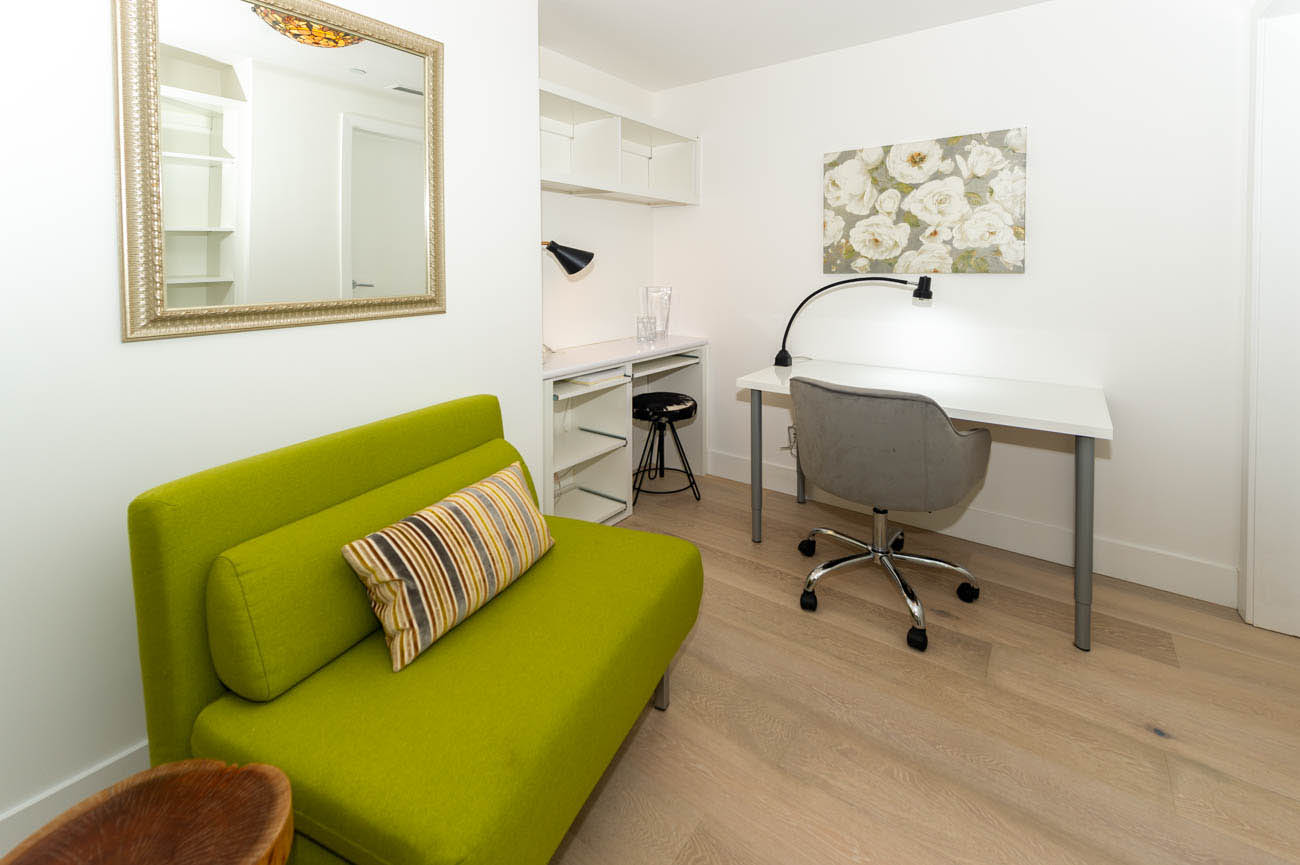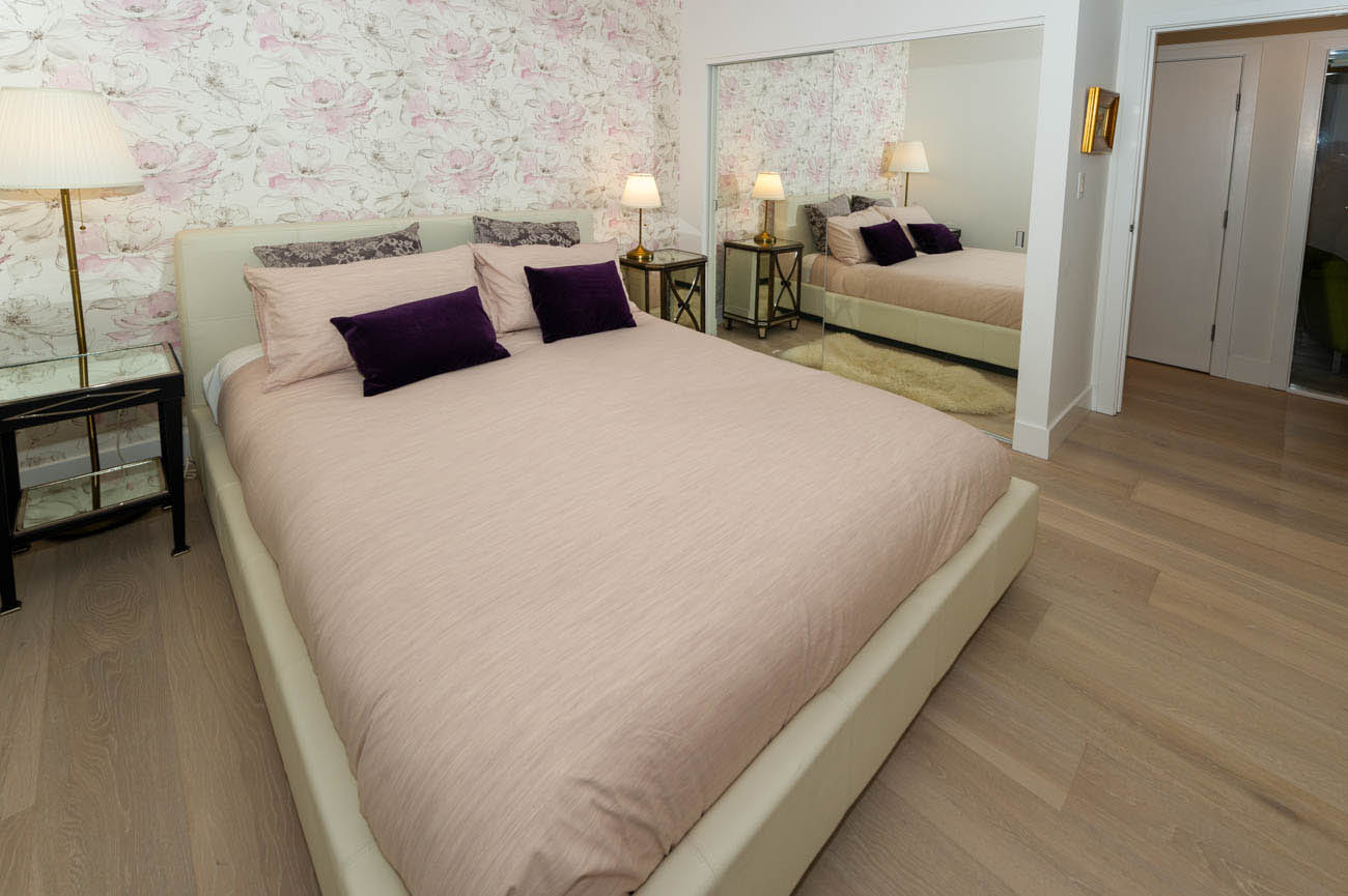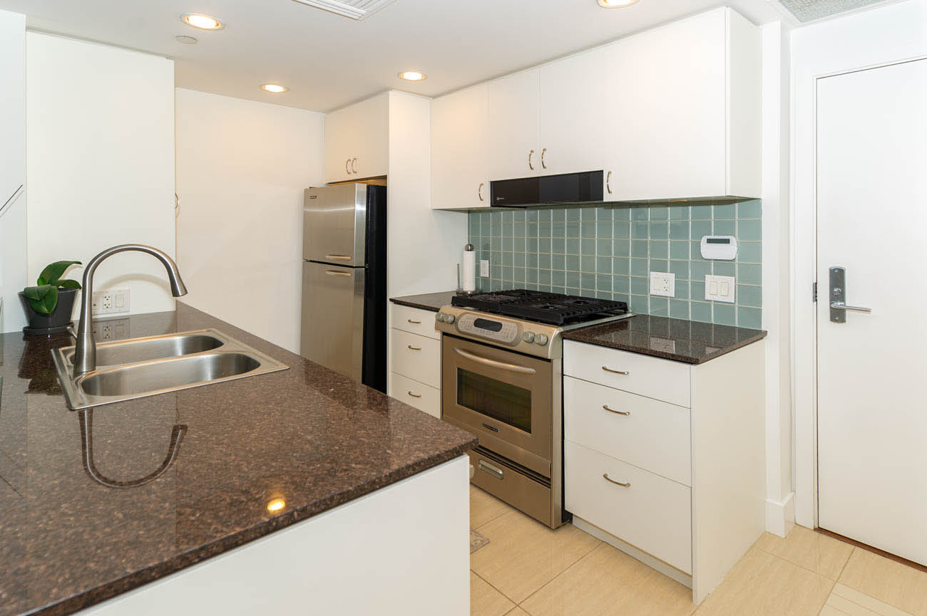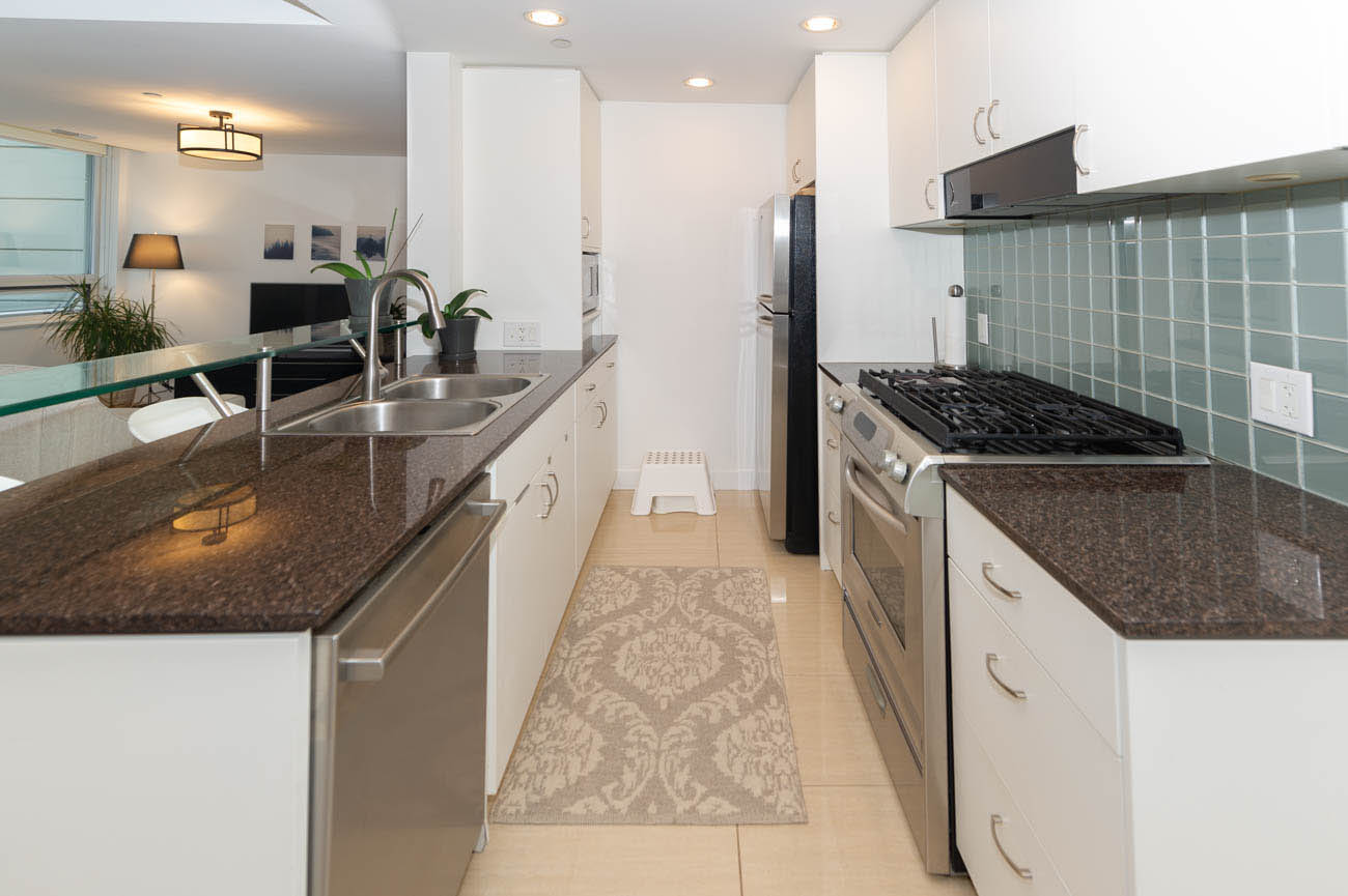 Stunning 1 bedroom plus den, newly renovated, WATERFRONT, home in the sought after ICON 2 building. This unique home features an open concept kitchen/living/dining layout, 9.5' ceilings, air conditioning, gas stove and a large private 225 NE facing patio with propane BBQ! The condo is equipped with engineered Oak flooring throughout, a built-in desk and shelves in den and smart organization in the storage space. ICON 2 offers concierge services, recreational facilities with exercise gym, indoor pool, sauna/steam room and party room. The location is across from George Wainborn Park near all the shops, restaurants, and services Yaletown has to offer. Parking stall available upon prior request. 3 MONTH MINIMUM.