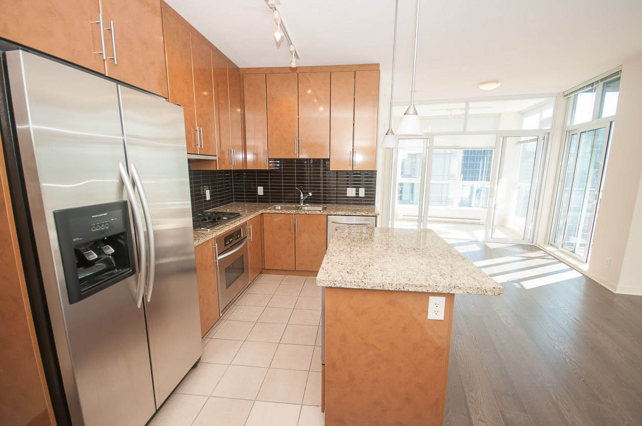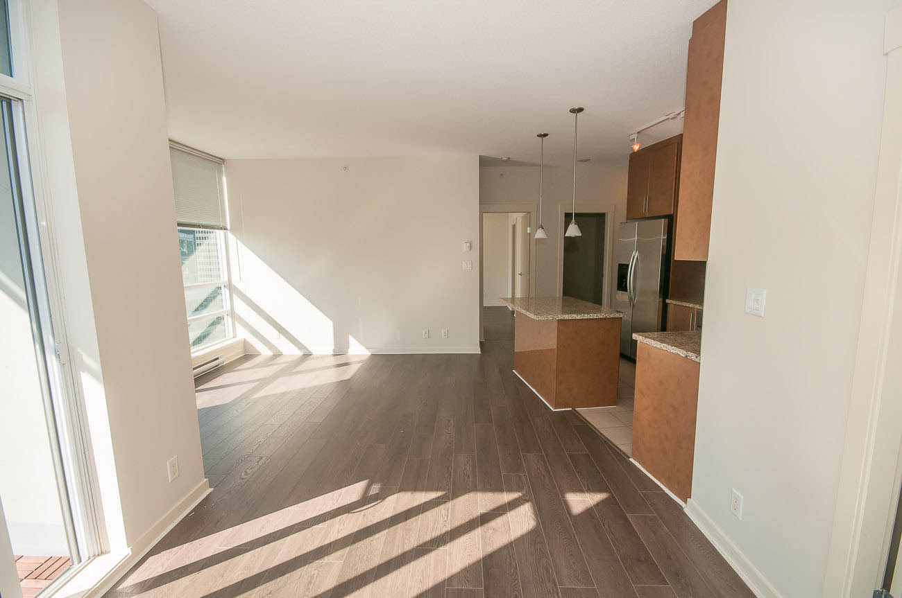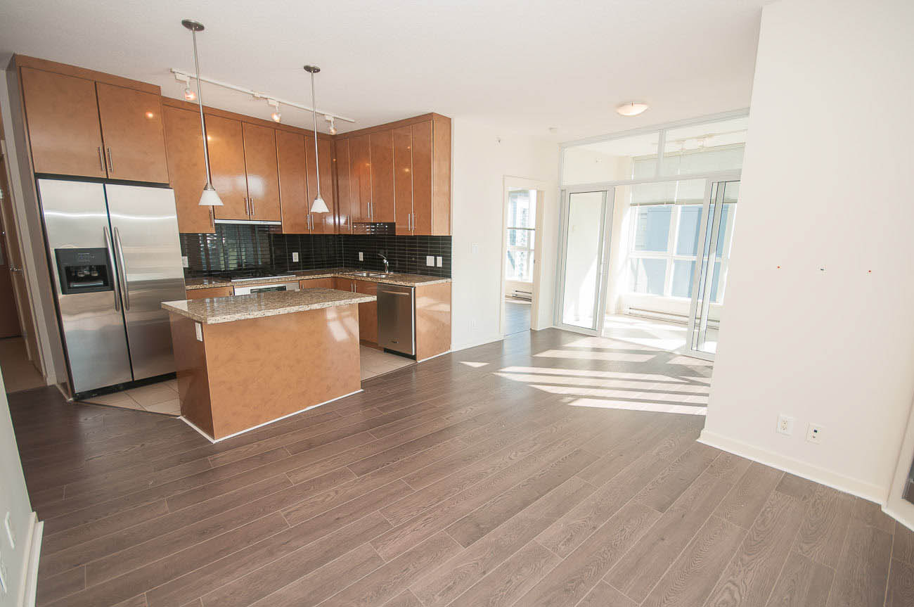 This bright, spacious, open plan 2bdr and den at the Melville features laminate and tile flooring throughout, stone countertops, stainless appliances, and a large walk in shower in its ensuite! The building features full amenities including fitness center, media room, and roof sky garden at 400 feet with panoramic view of water, mountain and city. Includes 1 parking, and storage locker.