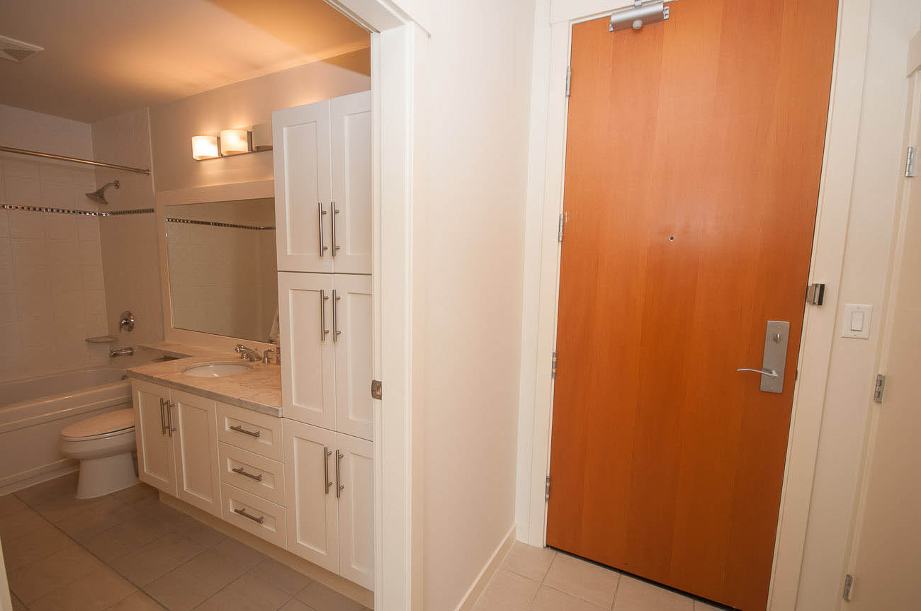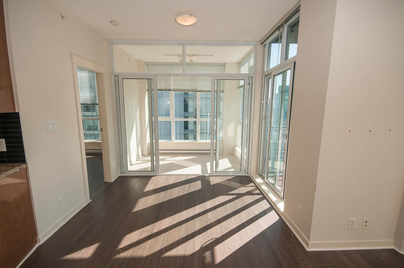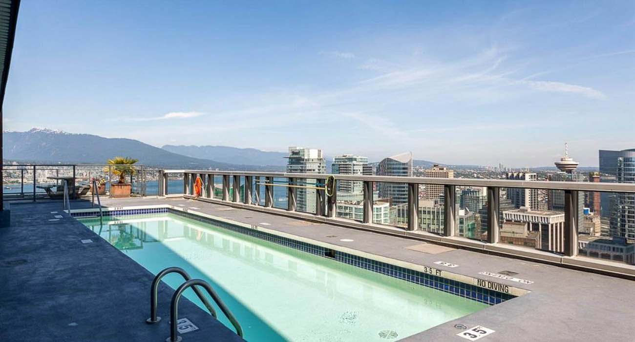 This bright, spacious, open plan 2bdr and den at the Melville features laminate and tile flooring throughout, stone countertops, stainless appliances, and a large walk in shower in its ensuite! The building features full amenities including fitness center, media room, and roof sky garden at 400 feet with panoramic view of water, mountain and city. Includes 1 parking, and storage locker.