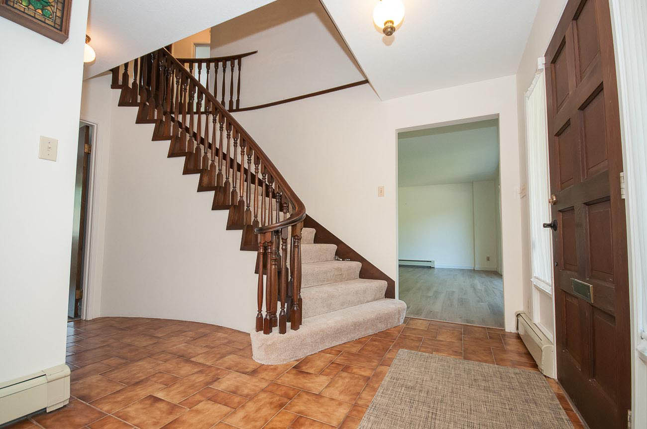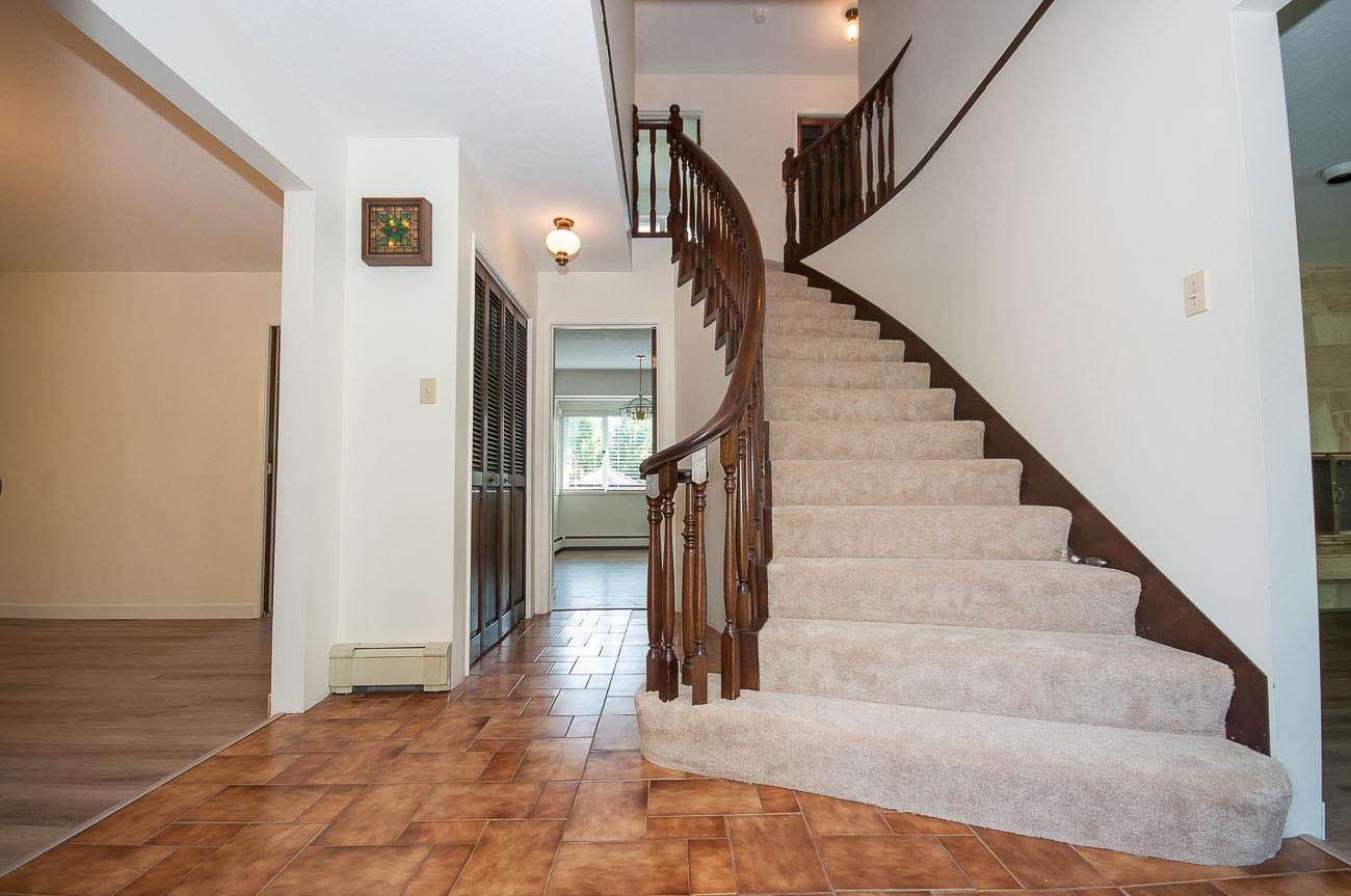 Spacious Tudor home in North Vancouver, Upper Lonsdale. This property is unique, bright and features stylish modern touches. The main living space is perfect for entertaining with an open concept kitchen/living/dining area! The kitchen is equipped with a contemporary design, stainless steel appliances and plenty of cupboard and counter space for whipping up delicious meals. There are 4 spacious bedrooms upstairs, including a large master with walk-in closet and ensuite bath. Wood-like vinyl spans throughout the first floor, while plush carpeting cozies up the bedrooms and second level. The large basement provides additional finished living area as well as plenty of unfinished storage space. An expansive balcony spans the width of the house and offers great extra space for summer BBQ-ing and relaxing with a glass of wine! Above all else, the location of this property is unbeatable! Across the street from Carisbrooke Elementary School, close to public transit, and just minutes from all of the conveniences that Lonsdale and Lynn Valley have to offer. Basement is mostly unfinished and offers excellent storage space! Attached 2 car garage included.