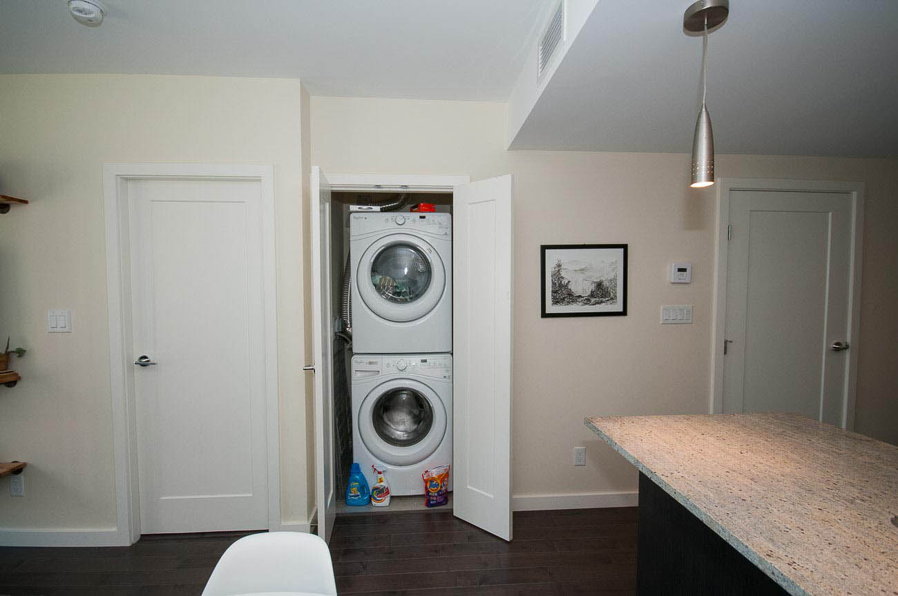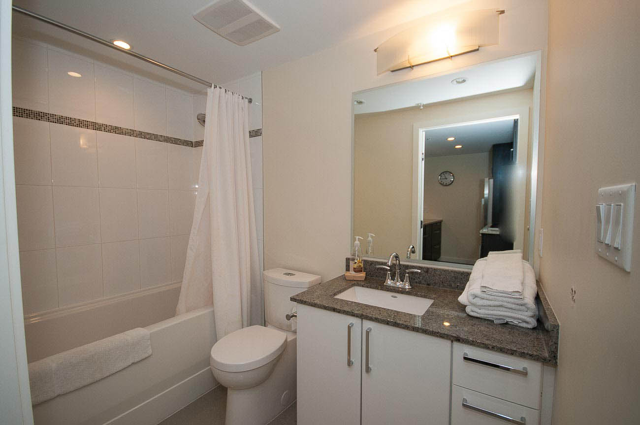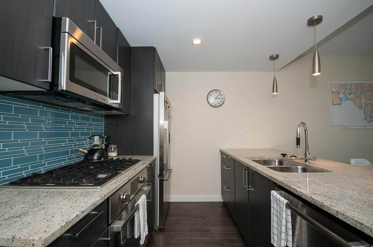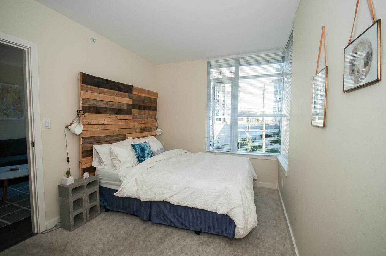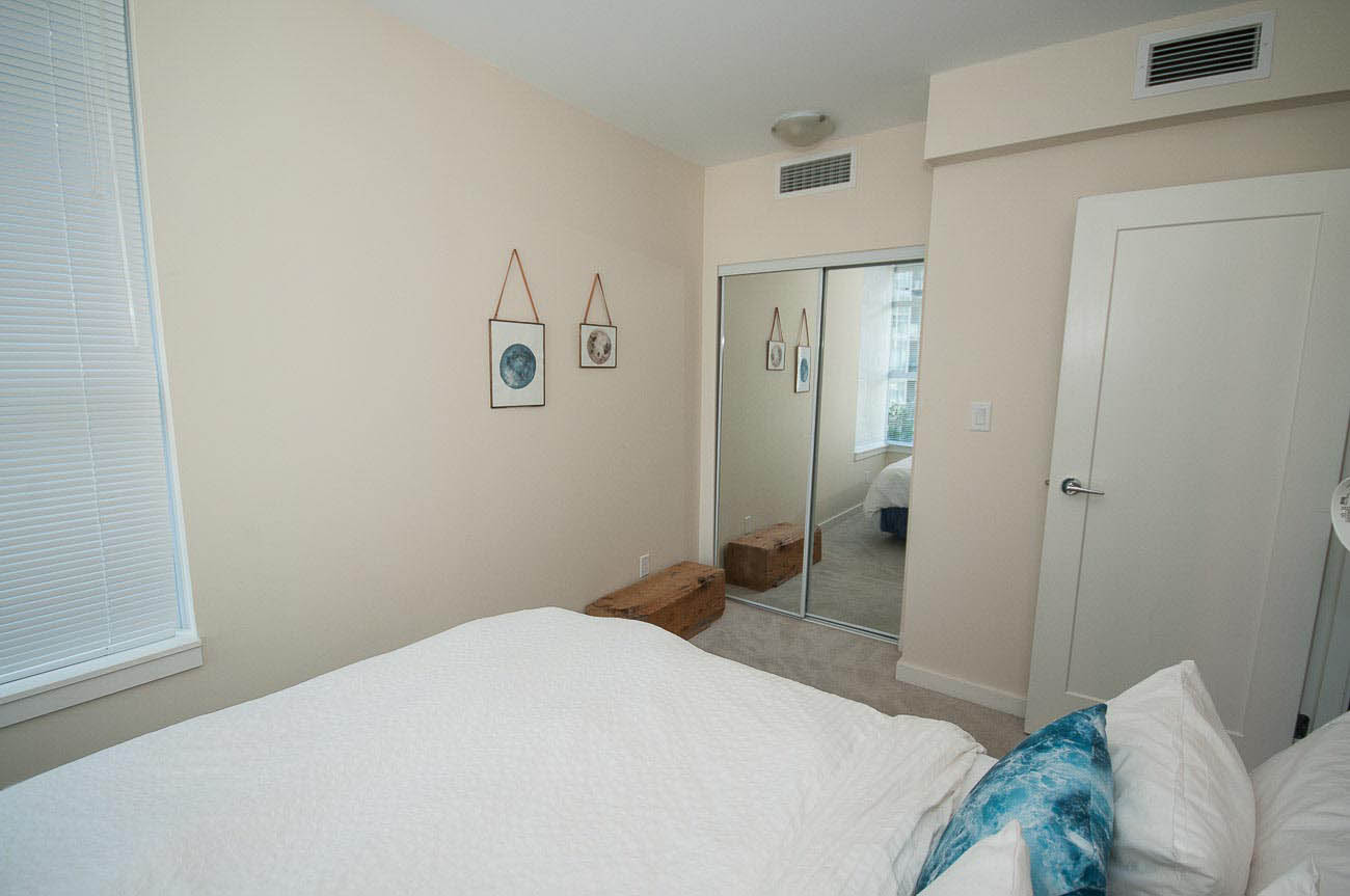 Beautiful! Modern! Spacious! This open concept, contemporary condo in False Creek is smartly designed with a spacious kitchen, big windows to let in plenty of natural light, a large bedroom and built-in air conditioning. The gourmet kitchen features stainless steel appliances including gas stovetop, ample storage, granite countertops, and a trendy blue glass backsplash. Beautiful dark engineered hardwood flooring extends from the kitchen throughout the dining and living areas to create a cohesive modern feel. The roomy bedroom features plush carpeting and large closets, while the bathroom is functional and stylish. Above all, it's all about location, location, location! This cool neighbourhood boasts some of the city's best craft breweries, restaurants, shopping and more. Plus it's just steps from the False Creek seawall with easy access to downtown Vancouver, the Canada Line and public transit. Enjoy the resort style amenities including a fully equipped fitness centre, rooftop infinity pool and hot tub. 1 parking stall included.