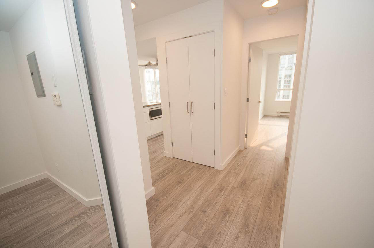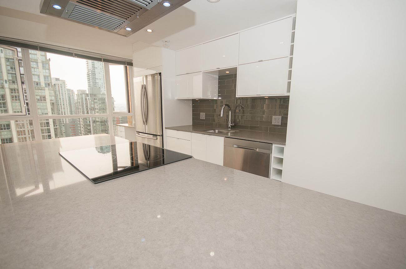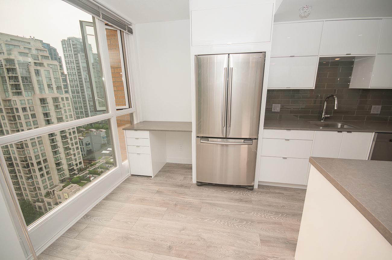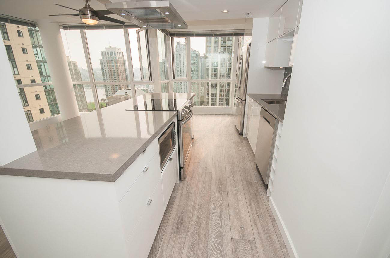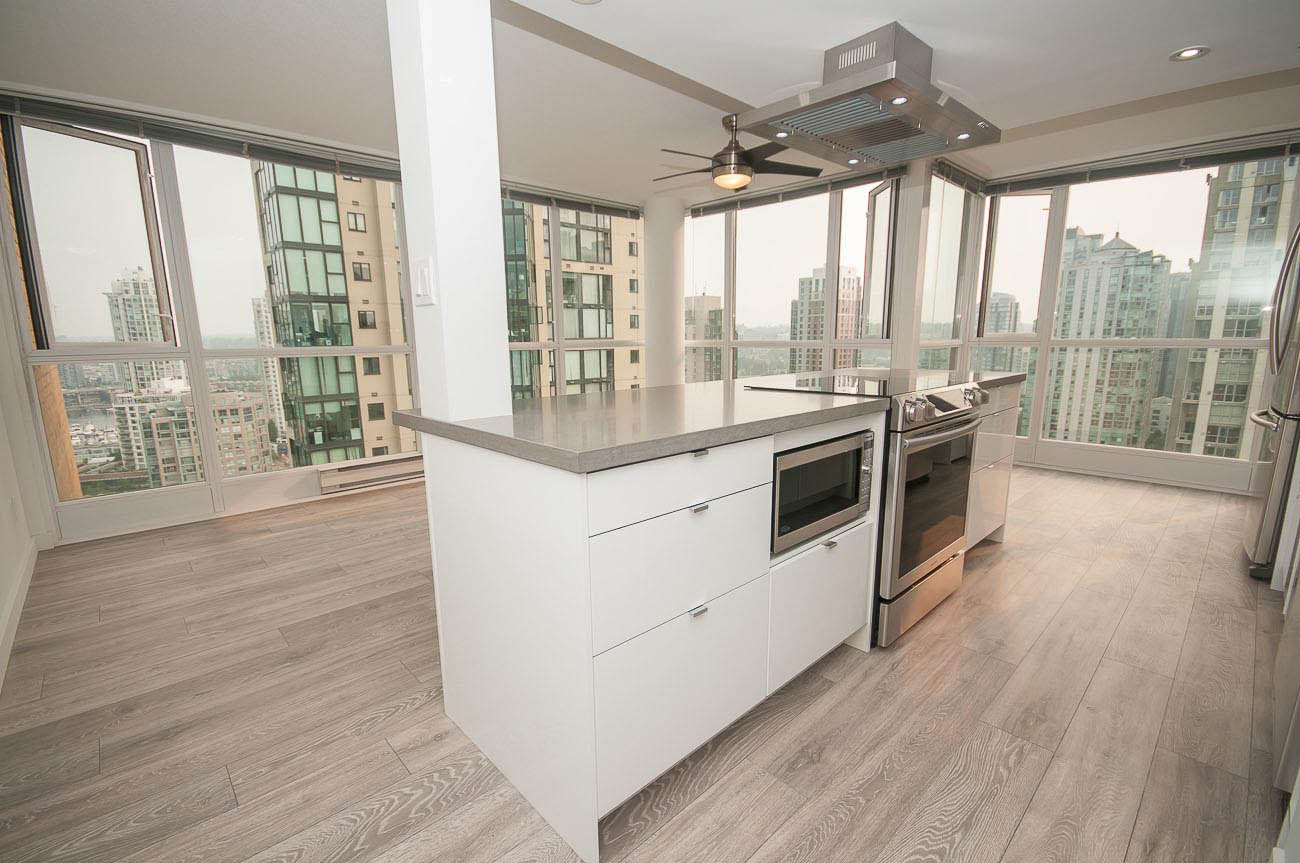 Beautiful, bright and modern one bedroom and den corner unit with 180 degree views of False Creek on the 20th floor! Custom built renovation with brand new laminate flooring, new quartz countertops in kitchen and bathroom, new appliances, high end new cabinets, and mirrored closets. 650 square feet with functional open floor plan. Great location in the heart of downtown Yaletown steps to entertainment, fine dining, shopping, parks, bus and SkyTrain. Prime Yaletown location across from Emery Barnes Park and Choices Market grocery. Three blocks to Seawall and Yaletown Roundhouse SkyTrain, Canada Line. Rarely available unit. 1 parking stall included and Bike storage available in the building. Well equipped gym and sauna with outdooor yoga! Lovely common area Courtyard that is a great space to relax and read a book.