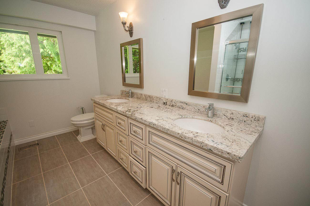 Great layout! Fully renovated! Quiet neighbourhood! This beautiful home in North Vancouver features a spacious and functional floorplan, modern touches throughout and a private backyard. A formal living room with beautiful bay window, large formal dining area with access to the backyard, modern kitchen, informal dining, cozy family room and powder room complete the main level. Upstairs you will find five generously sized bedrooms and three full baths. Downstairs is a large bonus room, full bathroom and laundry room. The tranquil backyard is equipped with unique pergola and fire pit, plus plenty of lush greenery and grass area. Double car garage included. NOTE: Jacuzzi in basement bathroom only functional as shower. Piano can stay upon tenant request.