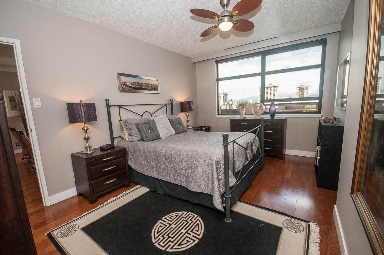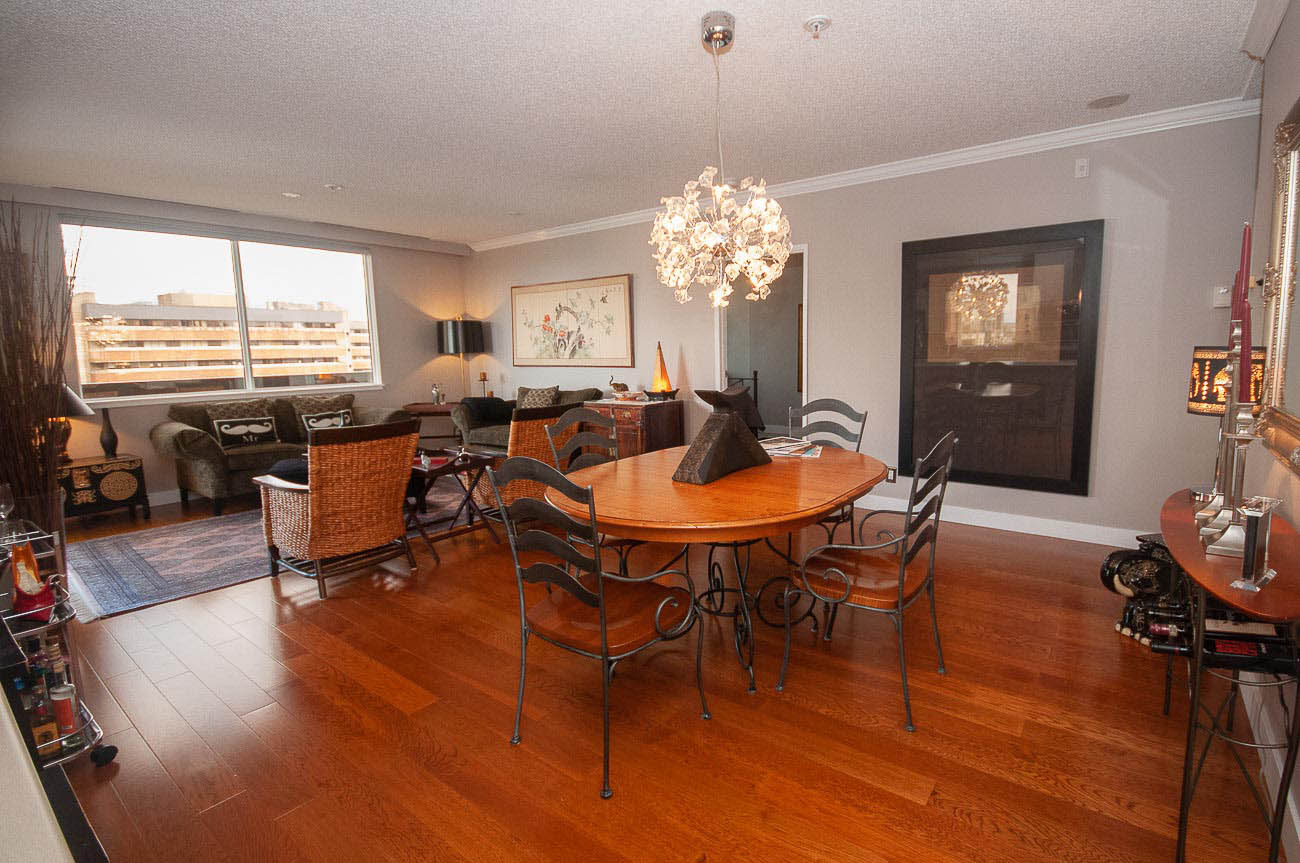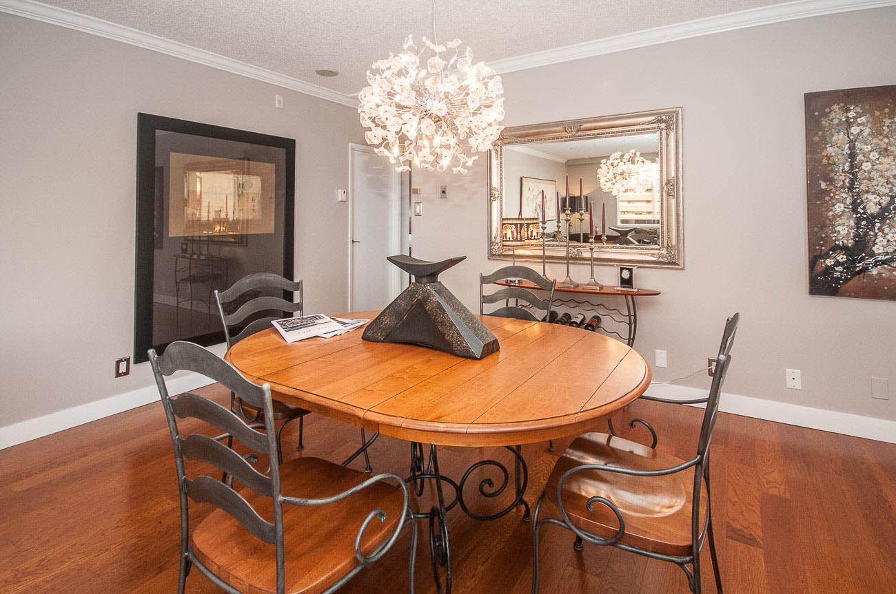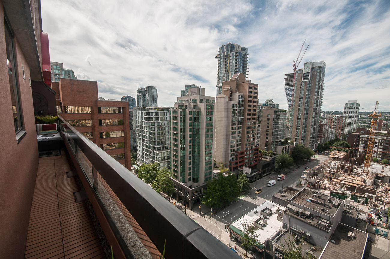 View Sub-penthouse! Spacious amazing sub-penthouse in Downtown Core. The unit features 1118 sf of living space, 2 large bedrooms, and 2 bathrooms. Many updates including engineered hardwood floor and stainless steel appliances. Open concept kitchen for cooking and entertainment. Balconies are joined by a wraparound walkway connecting living, dining and one of the bedrooms and expanding the great SW water and mountain views. Bedrooms are on opposite sides of apartment. The building provides, beautiful Rooftop amenities, gym, hot tub, and steam room. A party room with pool table is also part of this great building. HEAT, HOT WATER, 1 parking stall, and 1 storage locker included.