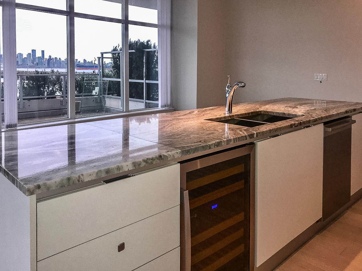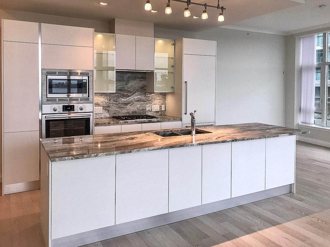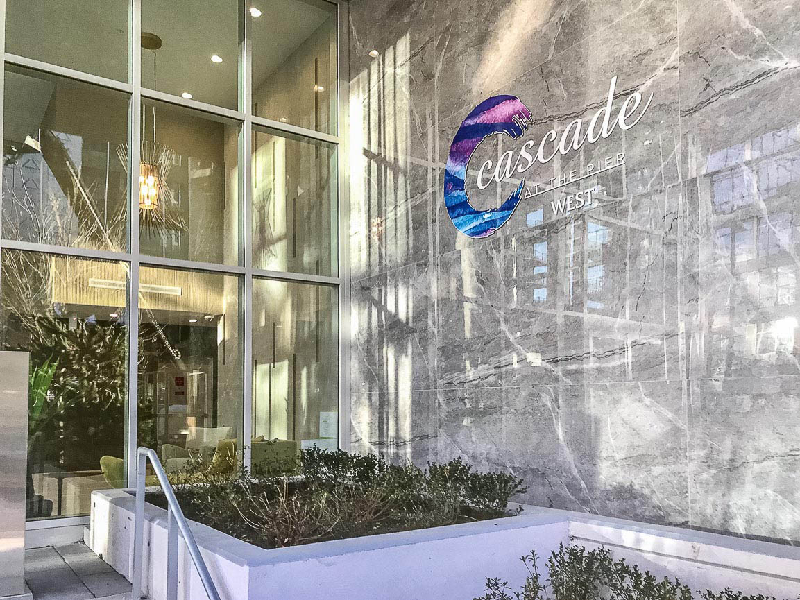 This grand 1,525 sq. ft. executive suite is located at the brand new Cascade West building and is located right on the water and features head on city, harbour and Lion’s Gate bridge views. Features include bright white Scavolini Cabinets with Bosch appliances including gas cooktop, wine fridge, dishwasher, built-in oven and cabinet front fridge/freezer. The Kitchen and living space have access out to a very large south facing patio. Other features include h/w floors throughout, large master suite and ensuited second bedroom. This unit has water on 2 sides and the bedrooms face onto a beach area that’s truly awesome at high tide. Sleep to the sound of lapping waves. There are also 3 full baths all finished with designer tiles and solid countertops. This suite also has air conditioning, 2 parking stalls and storage locker. Enjoy the use of the facilities at the Pinnacle Hotel! Please contact Unique for more details and to apply!