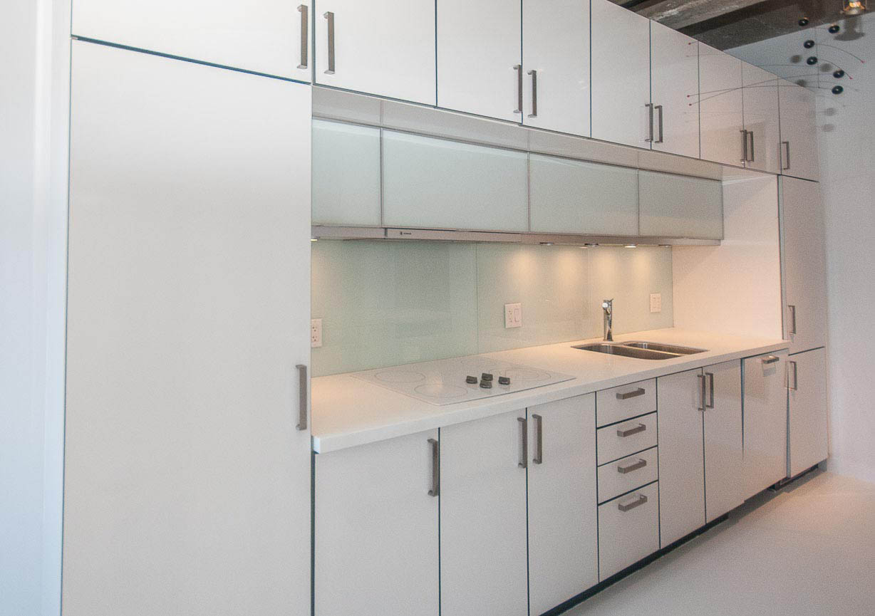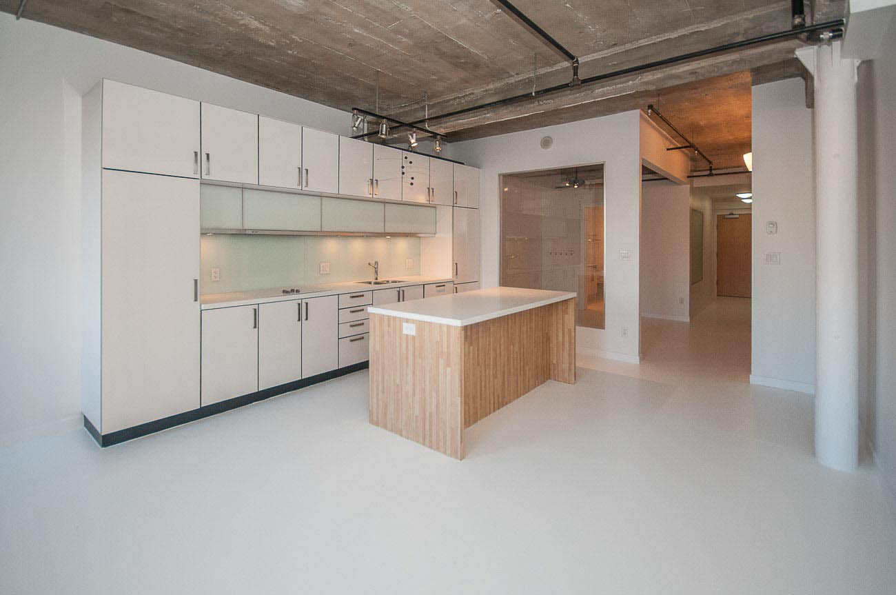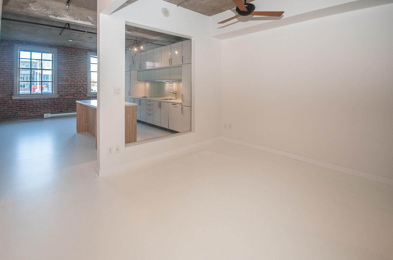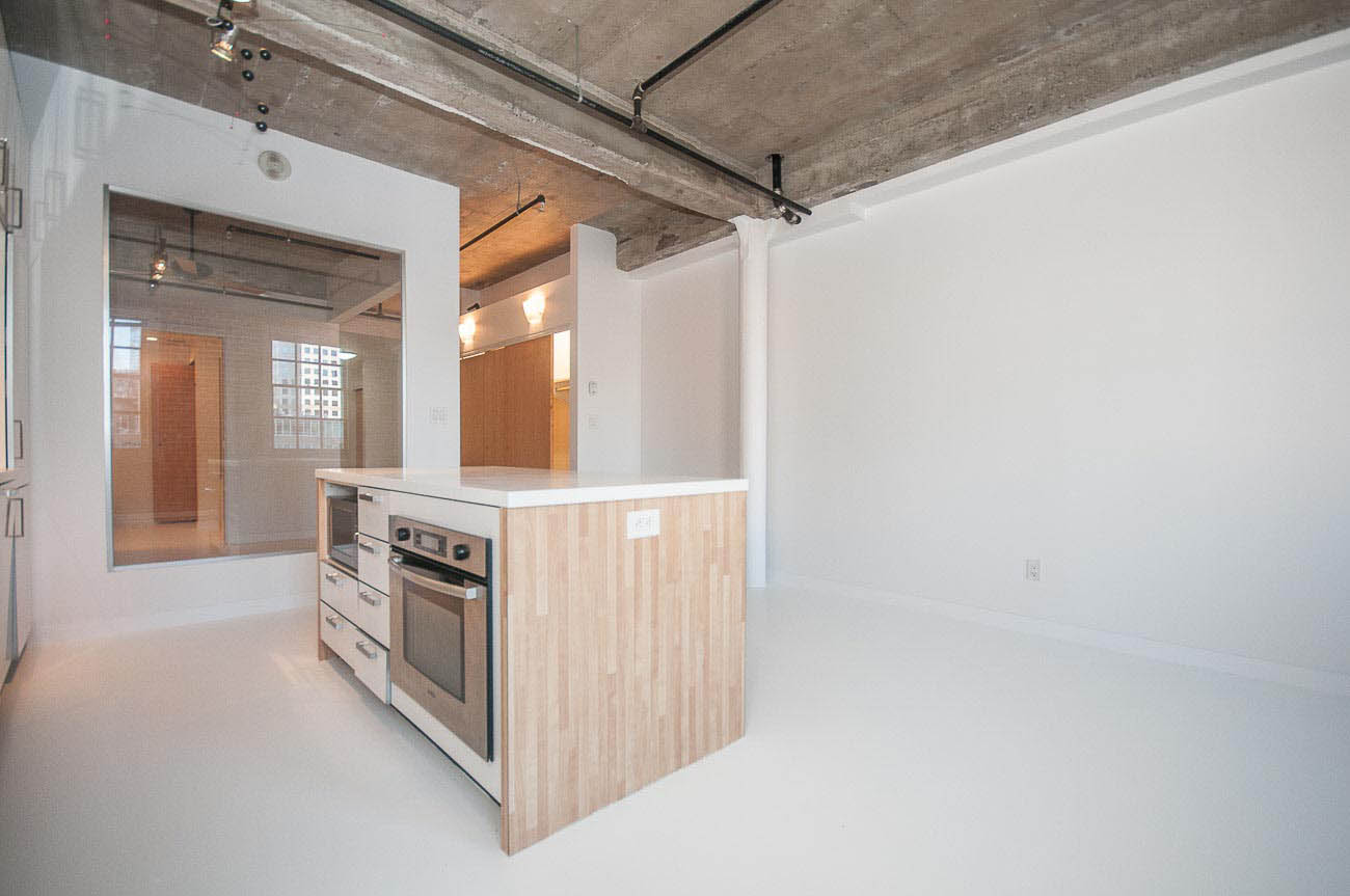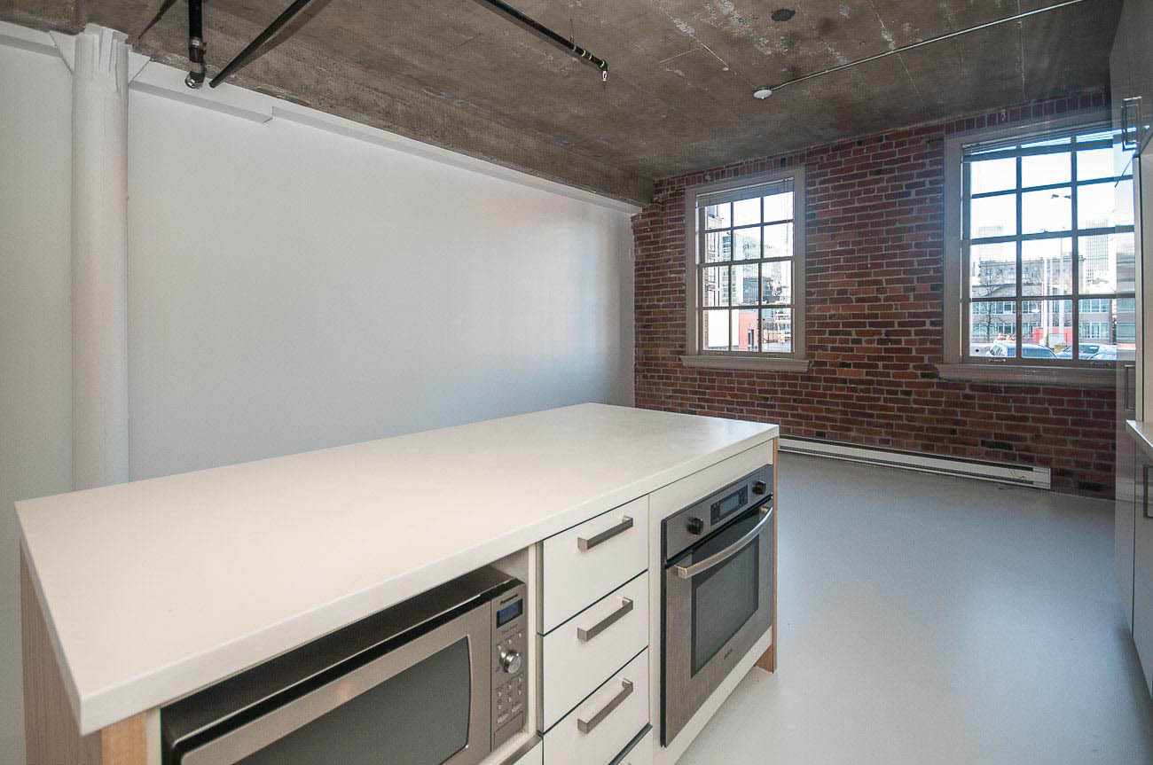 Beautiful one bedroom condo in The Crane. An old heritage building remodeled into modern units. Features include 10ft ceilings, original brick, exposed concrete beams and double hung sash windows. Modern open kitchen, well-equipped with high-end appliances. Great location close to the SkyTrain, restaurants, cafes and shops. Please note parking access is through elevator. 1 parking stall included.