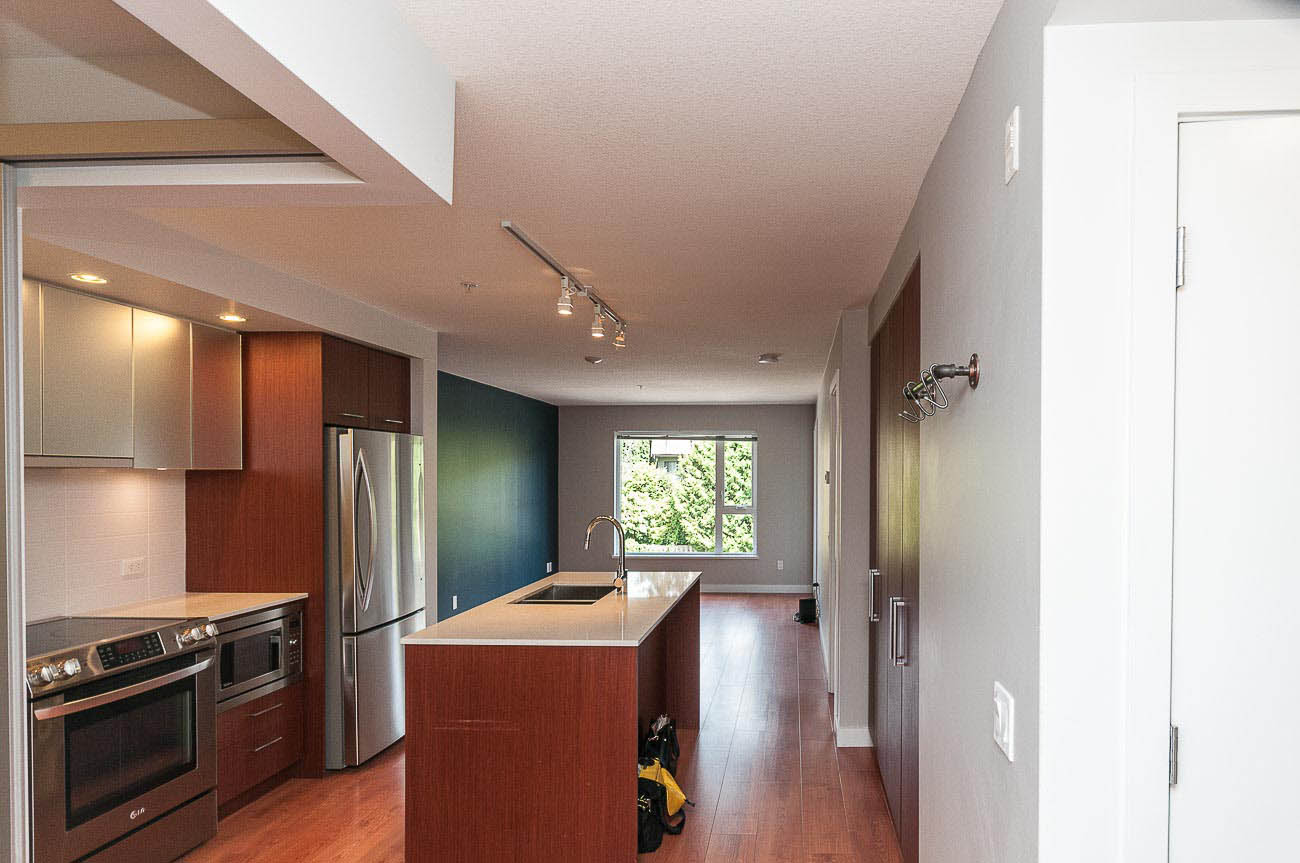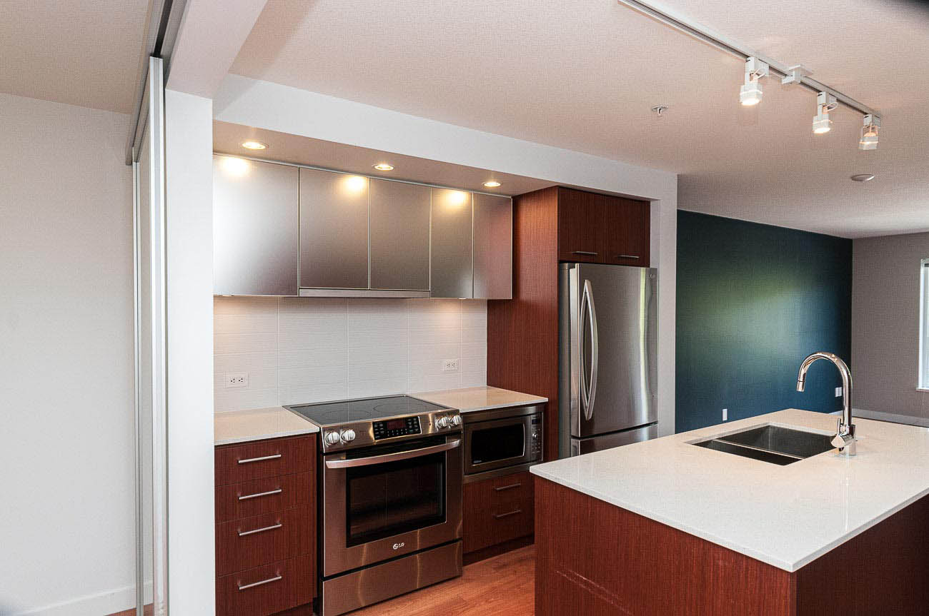 Representing the best of West Coast Modern, an architectural style that blends seamlessly with its natural environment, all while exuding a crisp, contemporary feel. Modern stainless steel appliances in the kitchen. Open plan living area with a large window that allows for tons of natural light. A quaint and surprisingly spacious balcony. 1 bedroom plus a den that can be used for extra storage or an office space (note: not suitable as a bedroom). Superb Lower Lonsdale location where you will have access to the best the North Shore has to offer! Hiking, shopping, and entertainment is all extremely close by. Additional perks for you to enjoy are the rooftop amenity terrace with BBQ area & furnished lounge. Fitness room with yoga/stretching area. Bike/car wash bay, secure underground parking, bike common room and storage locker included.