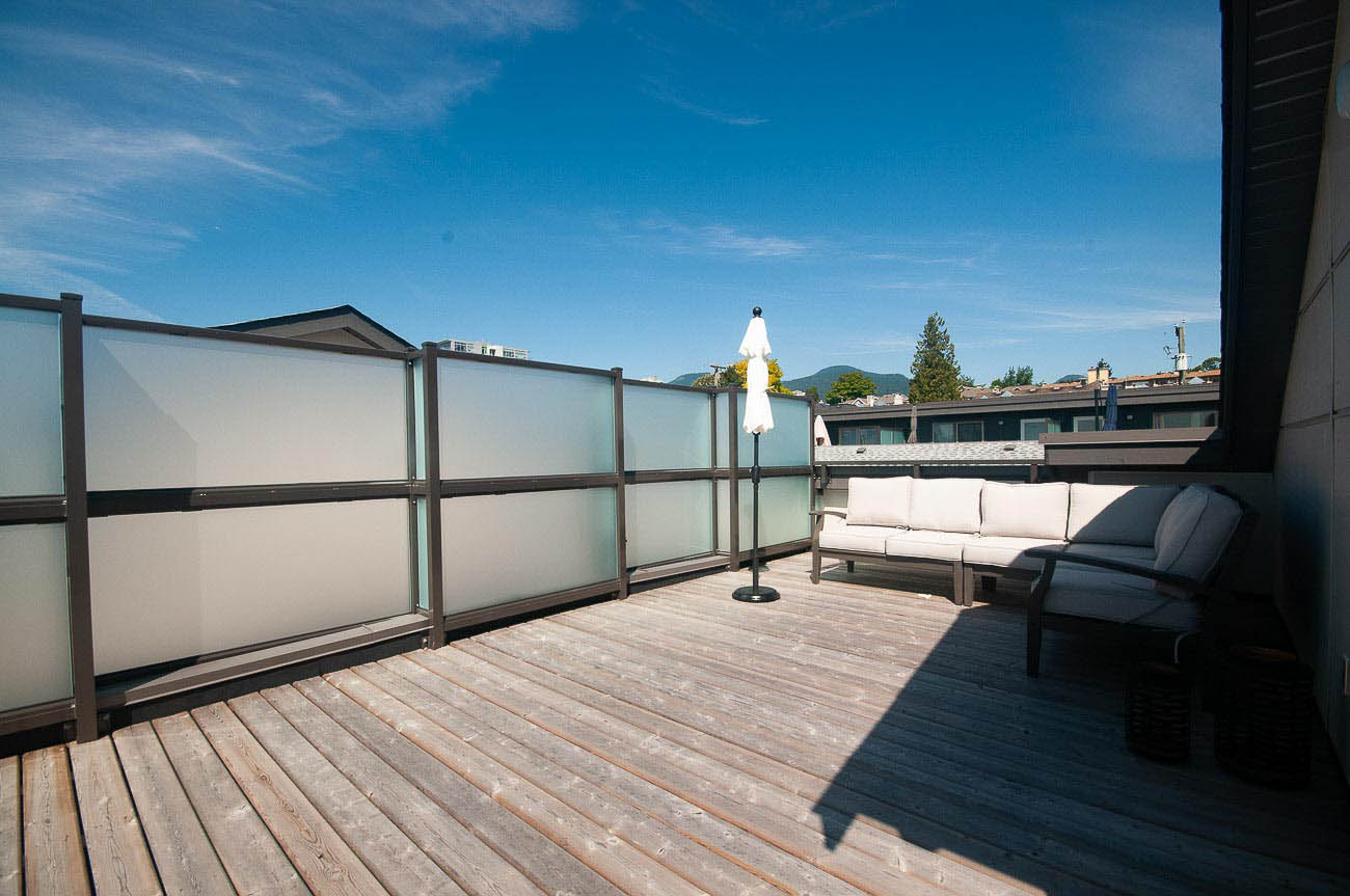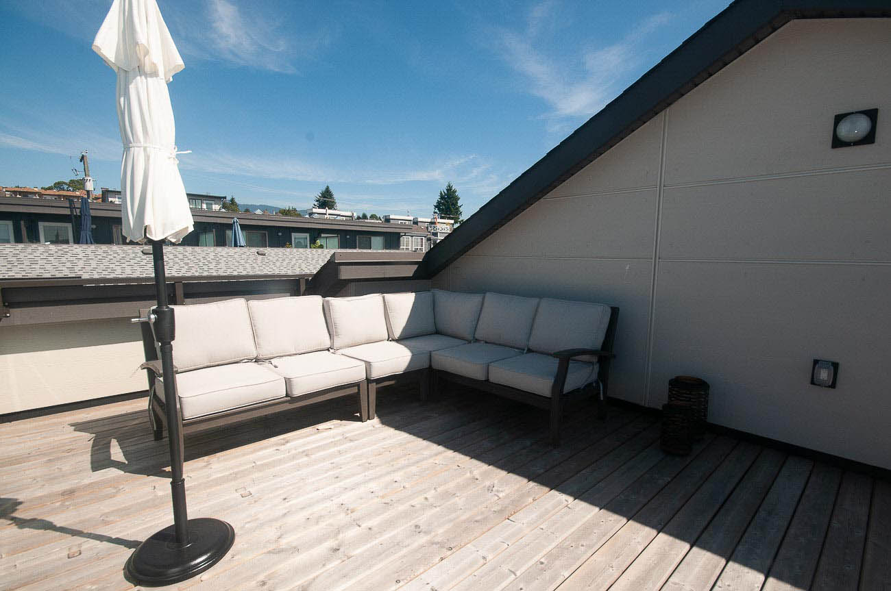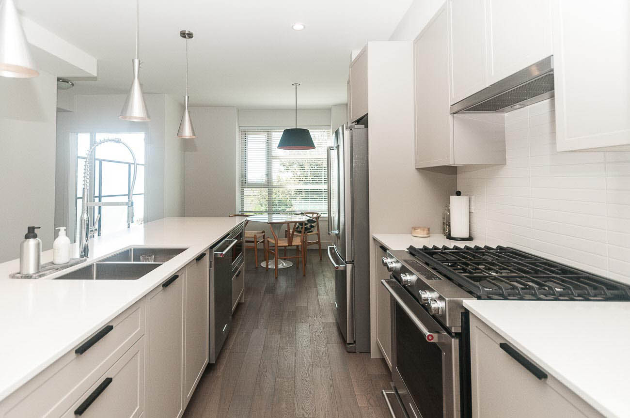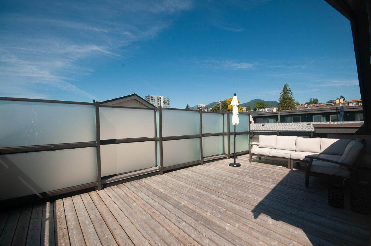 The beautiful development, Kings Walk, is conveniently located on East 5th Street in North Vancouver, close to all the amenities Lower Lonsdale has to offer while also providing an easy commute to downtown Vancouver. This unit is a spacious 2 bedroom, 2.5 bath townhouse spanning throughout nearly 1550 of living space. The finishing is stylish and modern with the "Grey +White Colour Scheme" and features an open concept design with gas cooktop, gourmet kitchen, hardwood floors on main level and roomy bedrooms. This is a bright south facing townhome you will love to come home to! Large private 568 sq. ft. rooftop deck with sweeping views of downtown! 1 parking space included.