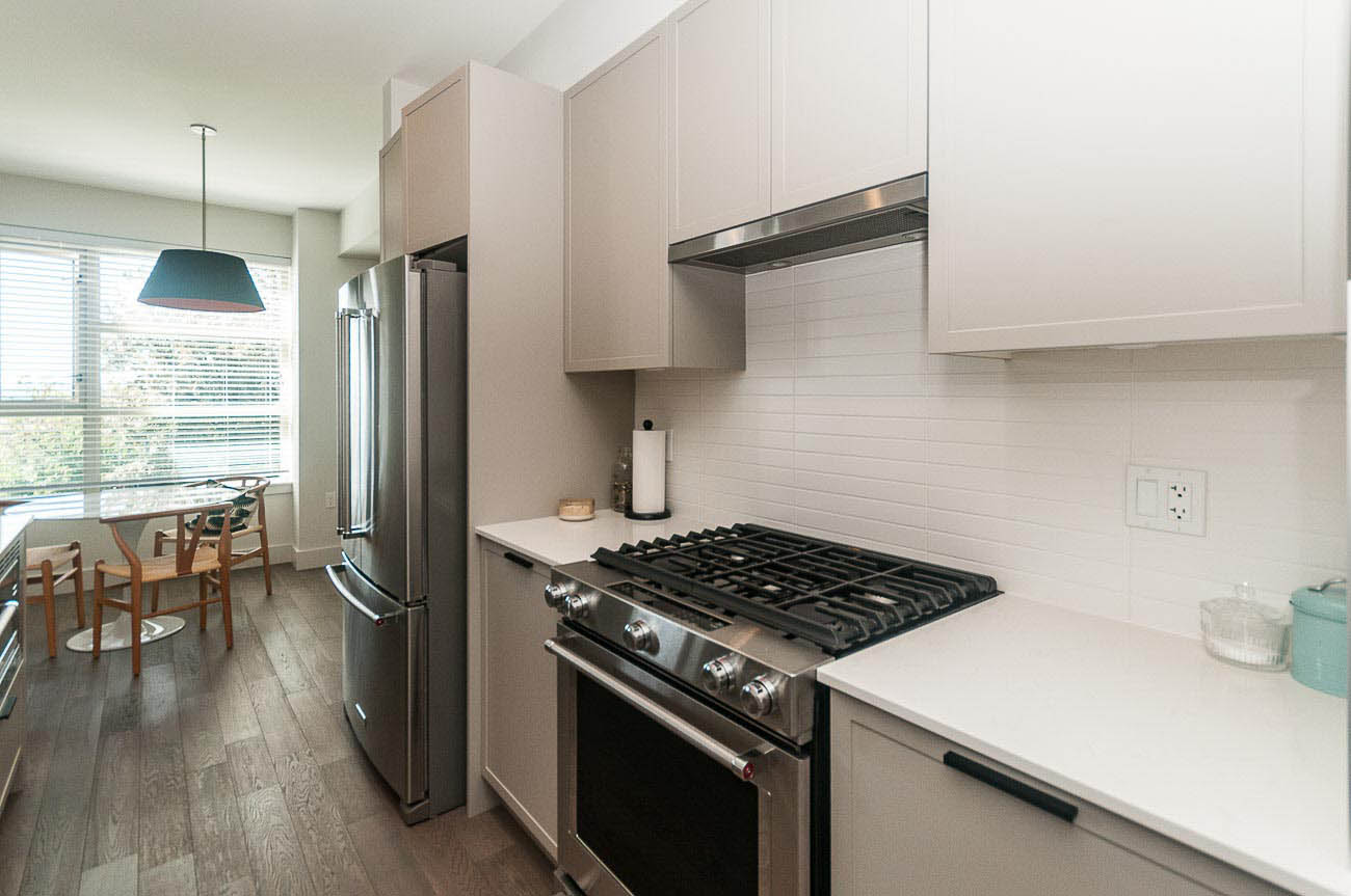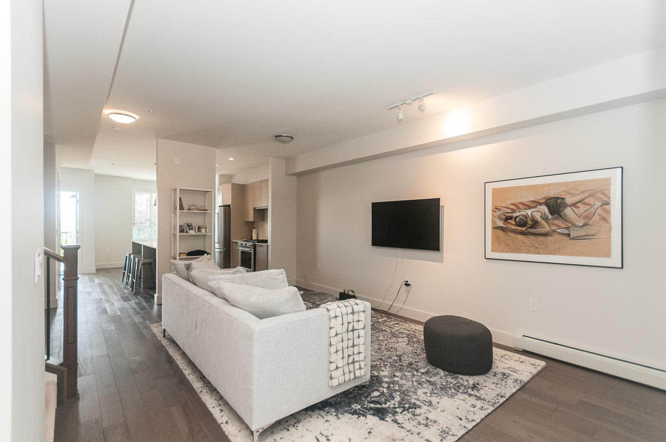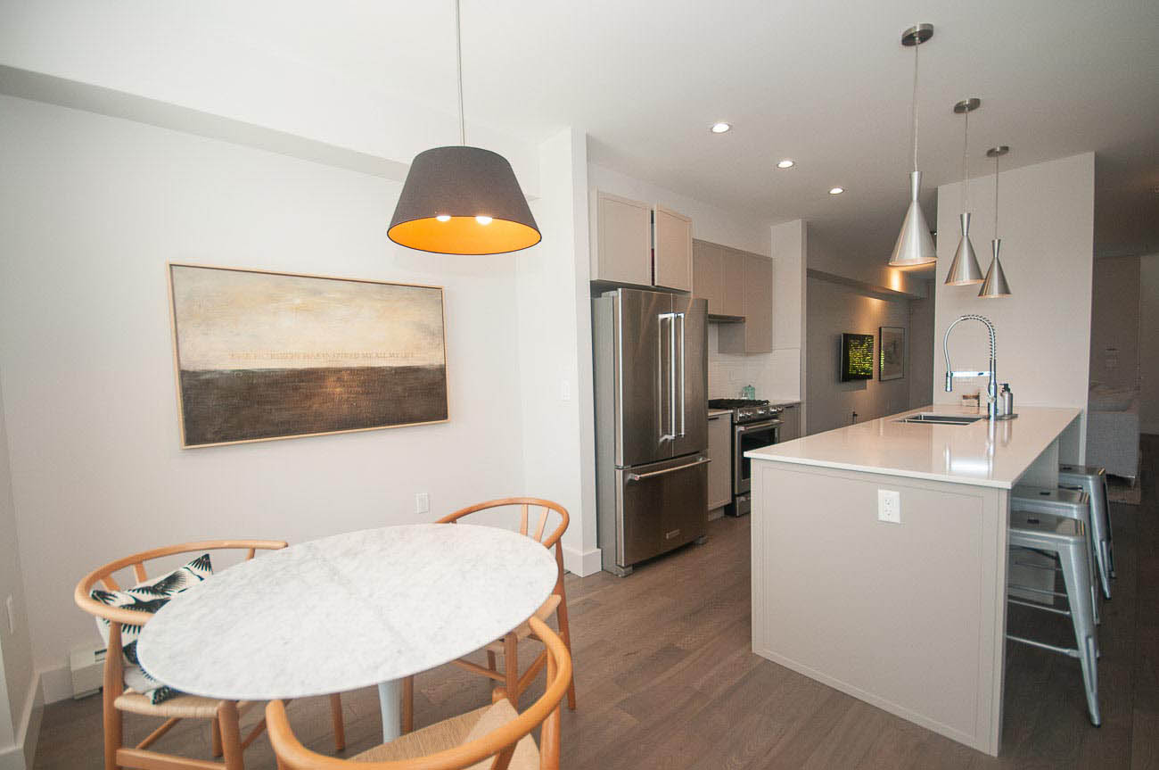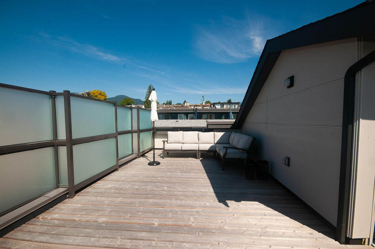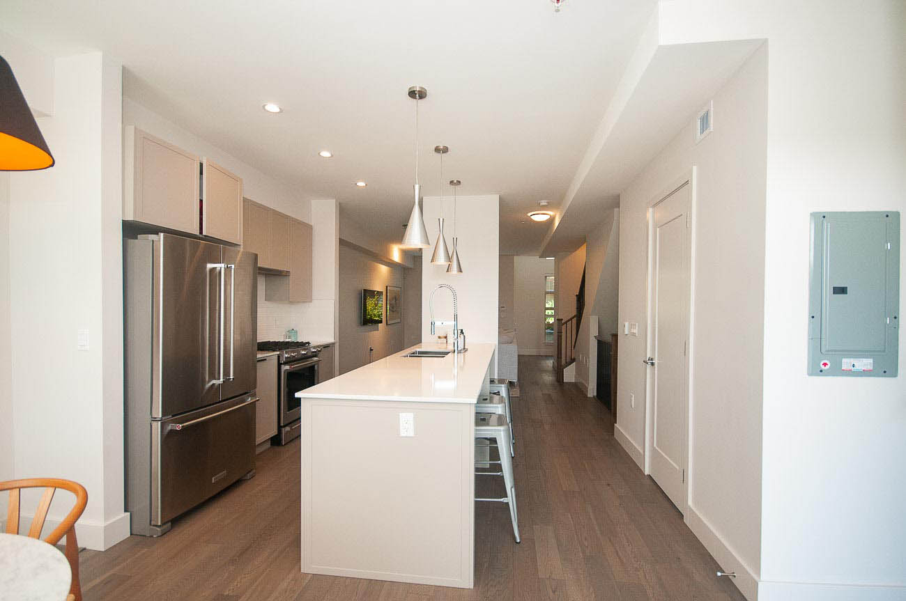 The beautiful development, Kings Walk, is conveniently located on East 5th Street in North Vancouver, close to all the amenities Lower Lonsdale has to offer while also providing an easy commute to downtown Vancouver. This unit is a spacious 2 bedroom, 2.5 bath townhouse spanning throughout nearly 1550 of living space. The finishing is stylish and modern with the "Grey +White Colour Scheme" and features an open concept design with gas cooktop, gourmet kitchen, hardwood floors on main level and roomy bedrooms. This is a bright south facing townhome you will love to come home to! Large private 568 sq. ft. rooftop deck with sweeping views of downtown! 1 parking space included.