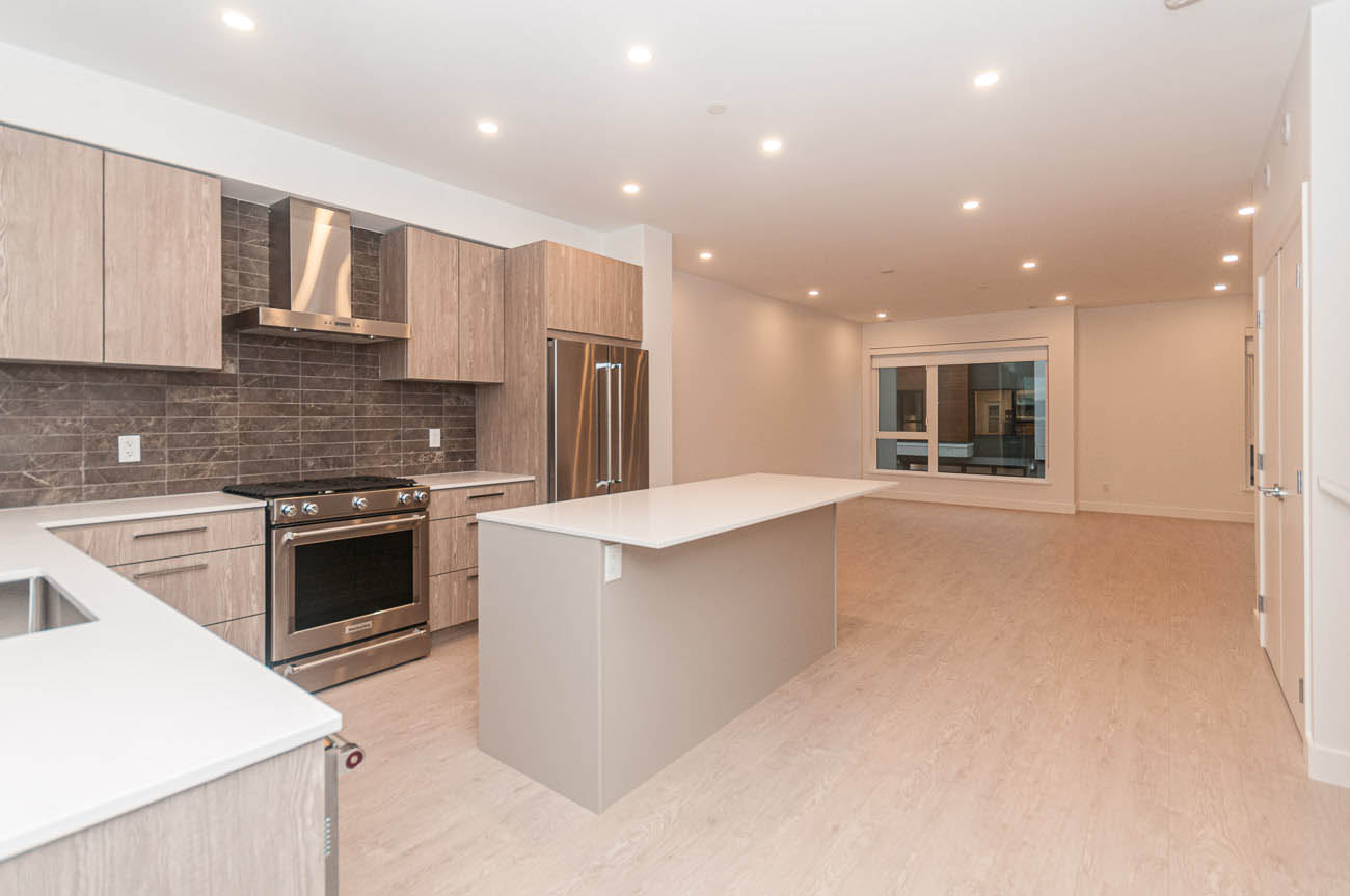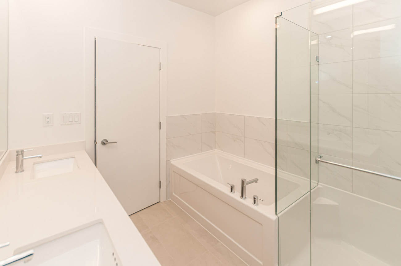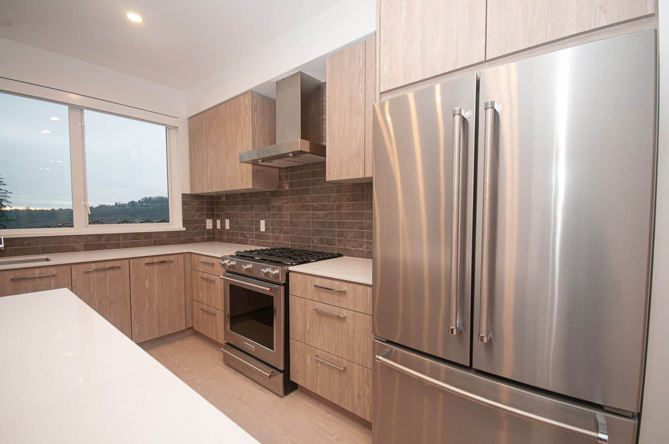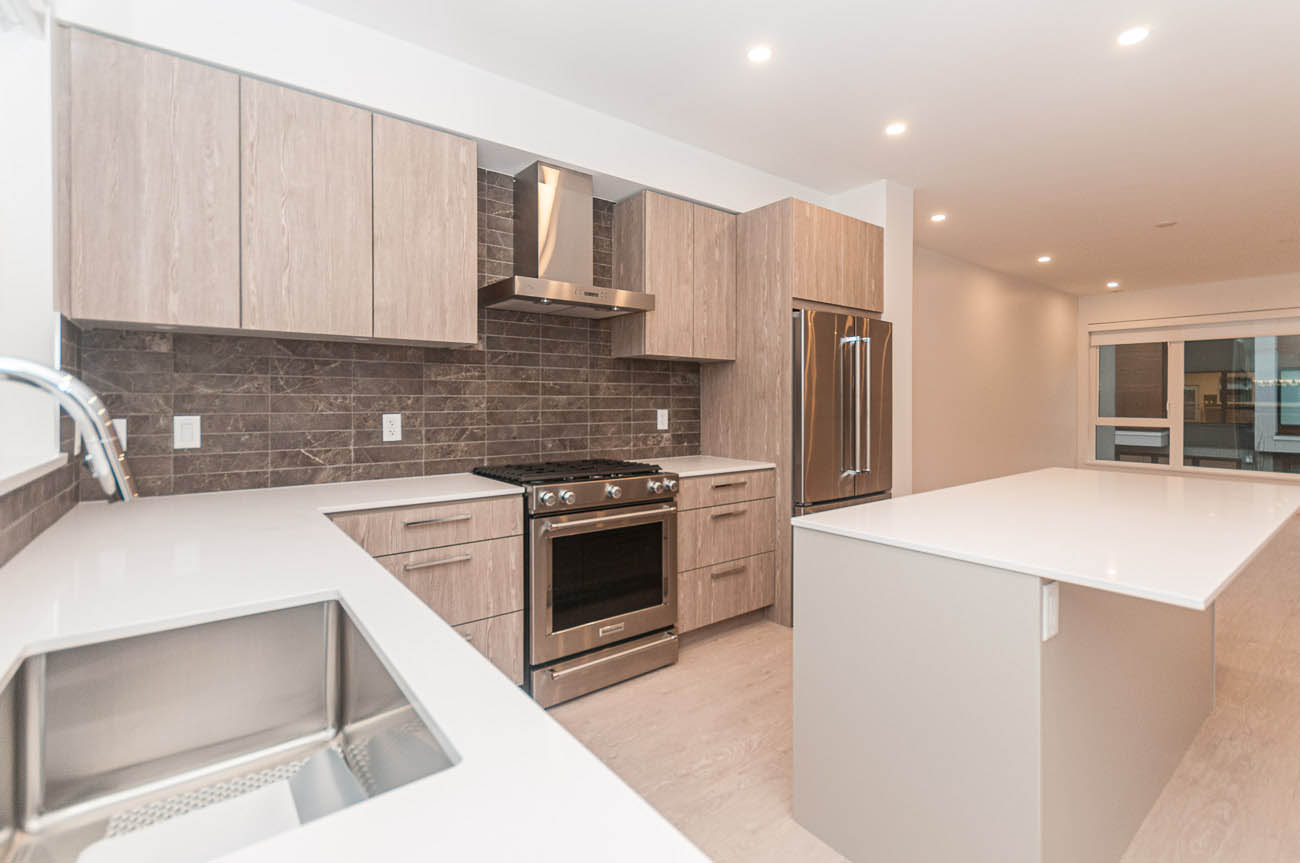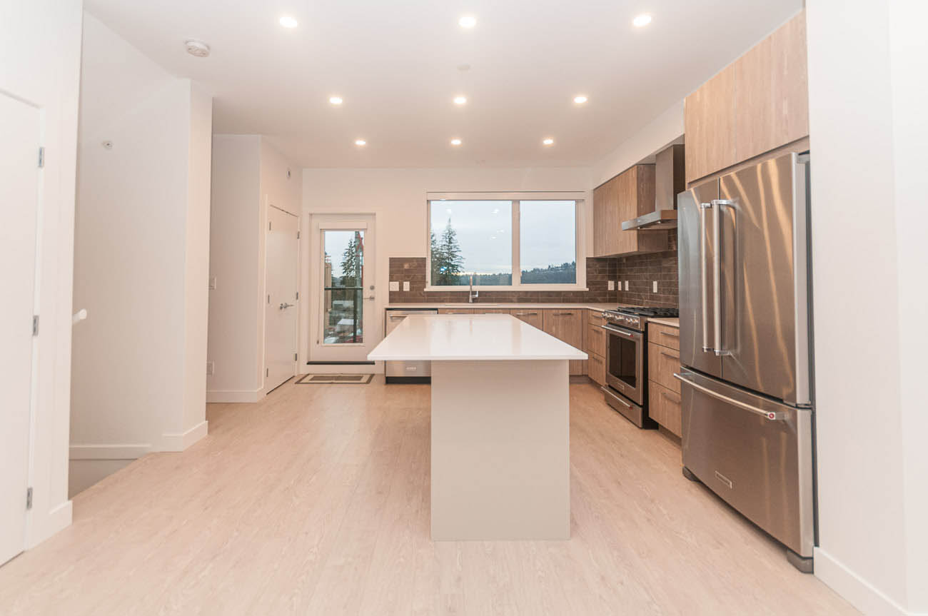 Gorgeous, brand new 4 bedroom townhouse in the growing Seymour Village complex in North Vancouver's Deep Cove area. With modern, West Coast architecture and contemporary interiors, this spacious home offers more than 2000 square feet of living space. Enjoy an open concept living and dining area, with a large balcony with a gas hookup and walk out patio to a fully-fenced yard- perfect for families! Durable laminate wood-grain flooring in main living areas, and plush carpeting in the bedrooms. The gourmet kitchen offers KitchenAid stainless steel appliances, a huge island that provides extra cooking space and doubles as an eating bar for four, engineered stone countertops with a contemporary porcelain tile backsplash. Ample cabinet, closet, and additional storage space. Master bedroom features a walk-in closet, and spa-like ensuite with a glass-enclosed shower, bathtub, and double sink vanity. Additional amenities include a double car garage and a full-size driveway. The quiet location offers easy access to downtown Vancouver, and great shops, parks, and schools just minutes away.