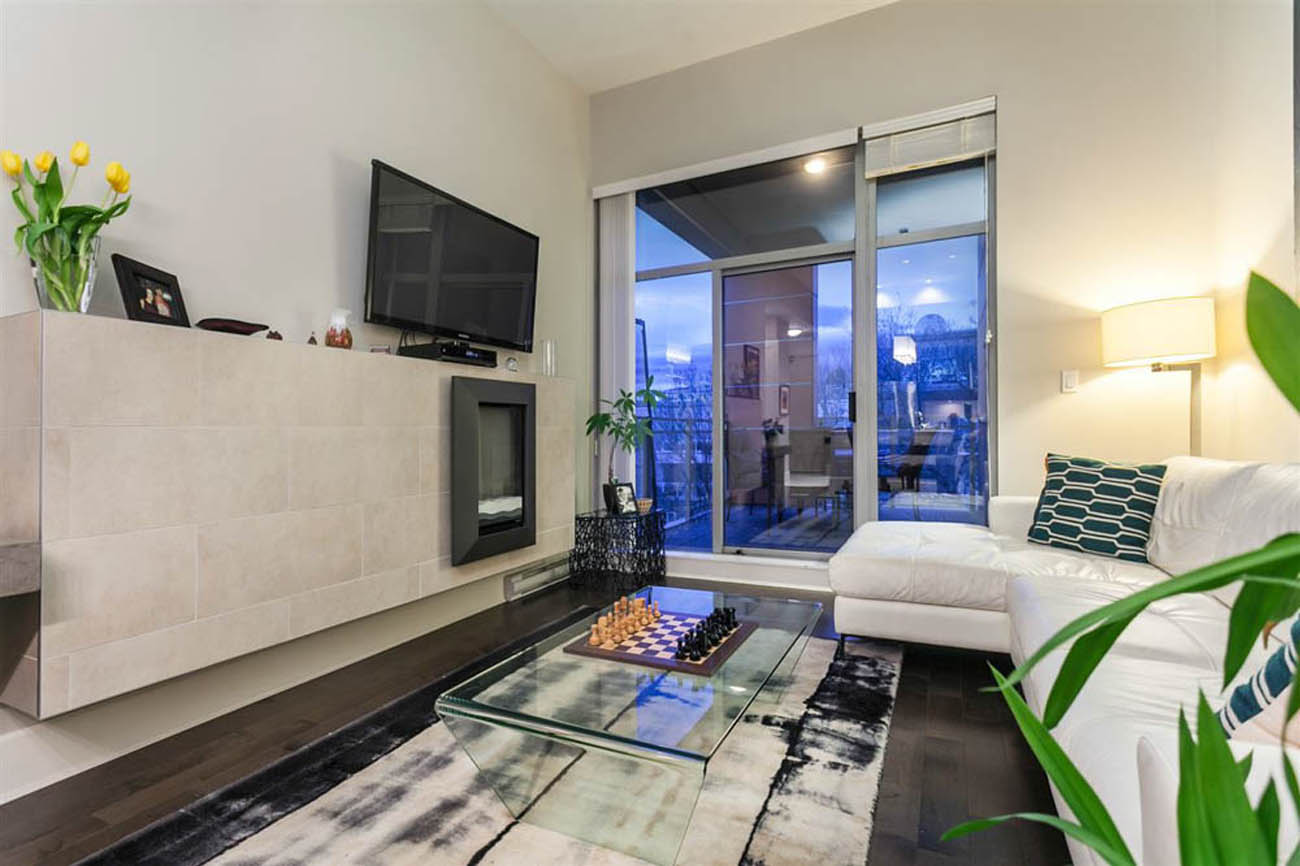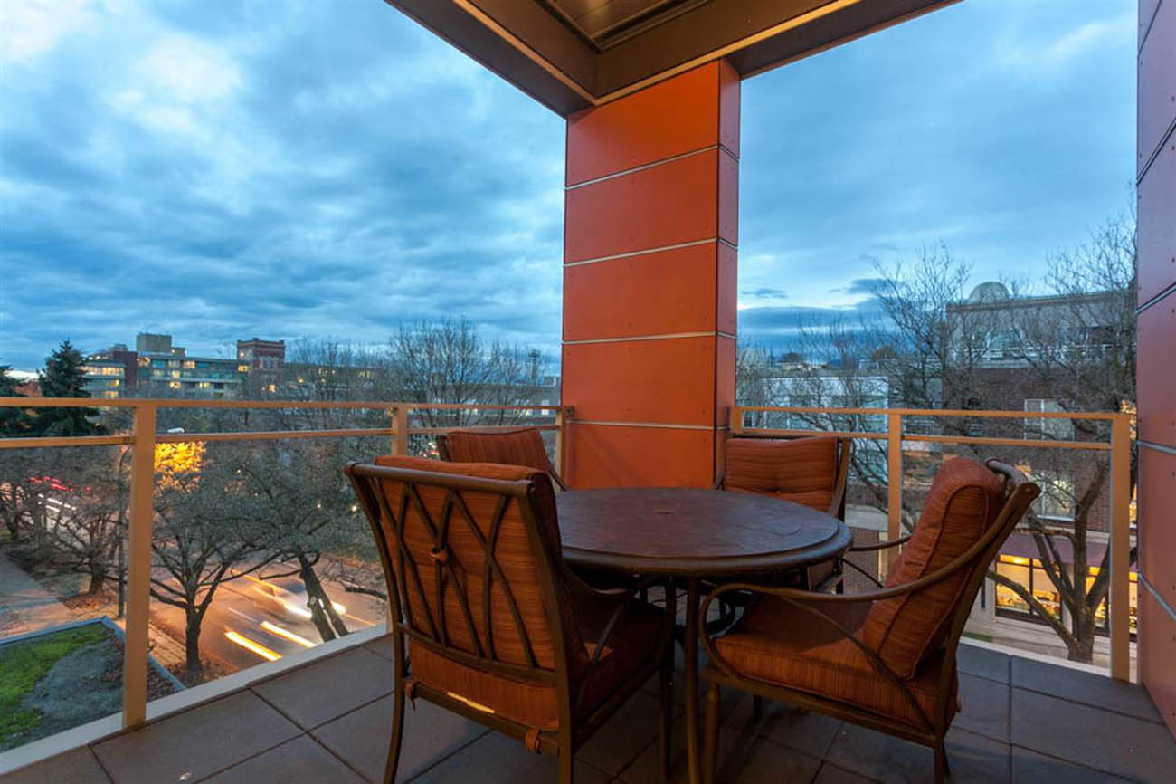 Absolutely immaculately cared for PH suite in the heart of Kitsilano's beautiful Arbutus Walk neighborhood. Lovely north-facing treed outlook. Soaring 13' ceilings give this efficient layout the feel of a much larger home. This like-new condition 1 bed/1 bath + office home features gorgeous Caesarstone counter tops, rich hardwood flooring, full-sized insuite laundry, modern fireplace, and a large covered outdoor patio. Gorgeous spa-inspired bathroom with plenty of space, separate tub/shower, and radiant in-floor heating. This Boutique building has only 10 units. This suite is so quiet, yet it is an amazingly central and conveniently located by Arbutus green way, parks and shops. Will consider one small to medium sized pet. 1 Parking included!