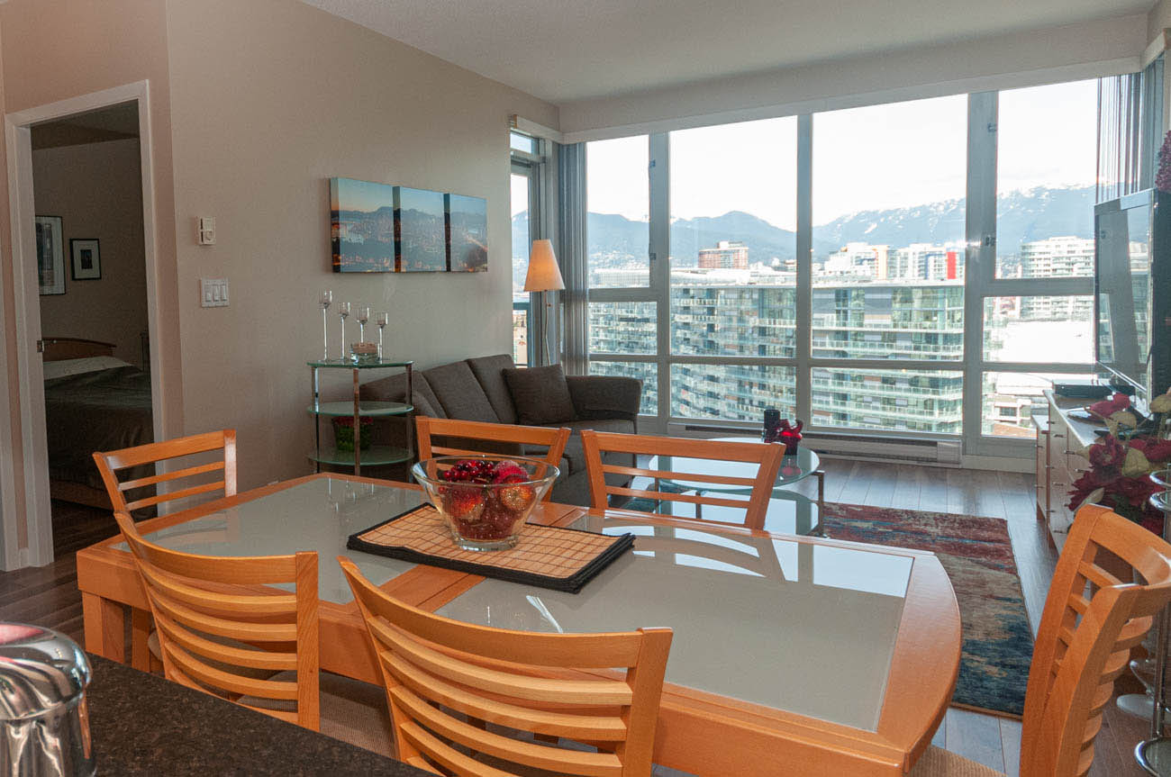 FURNISHED 1 BED 1 BATH SUB-PENTHOUSE IN THE HEART OF YALETOWN, most desirable neighborhood in downtown Vancouver, includes everything you may need to quickly move in and feel like home. Features gorgeous views over the False Creek and mountains, a little balcony to enjoy some fresh air from a comfort of your home, spacious bedroom with queen size furniture set and an open concept living room/kitchen area. 1 PARKING STALL INCLUDED!