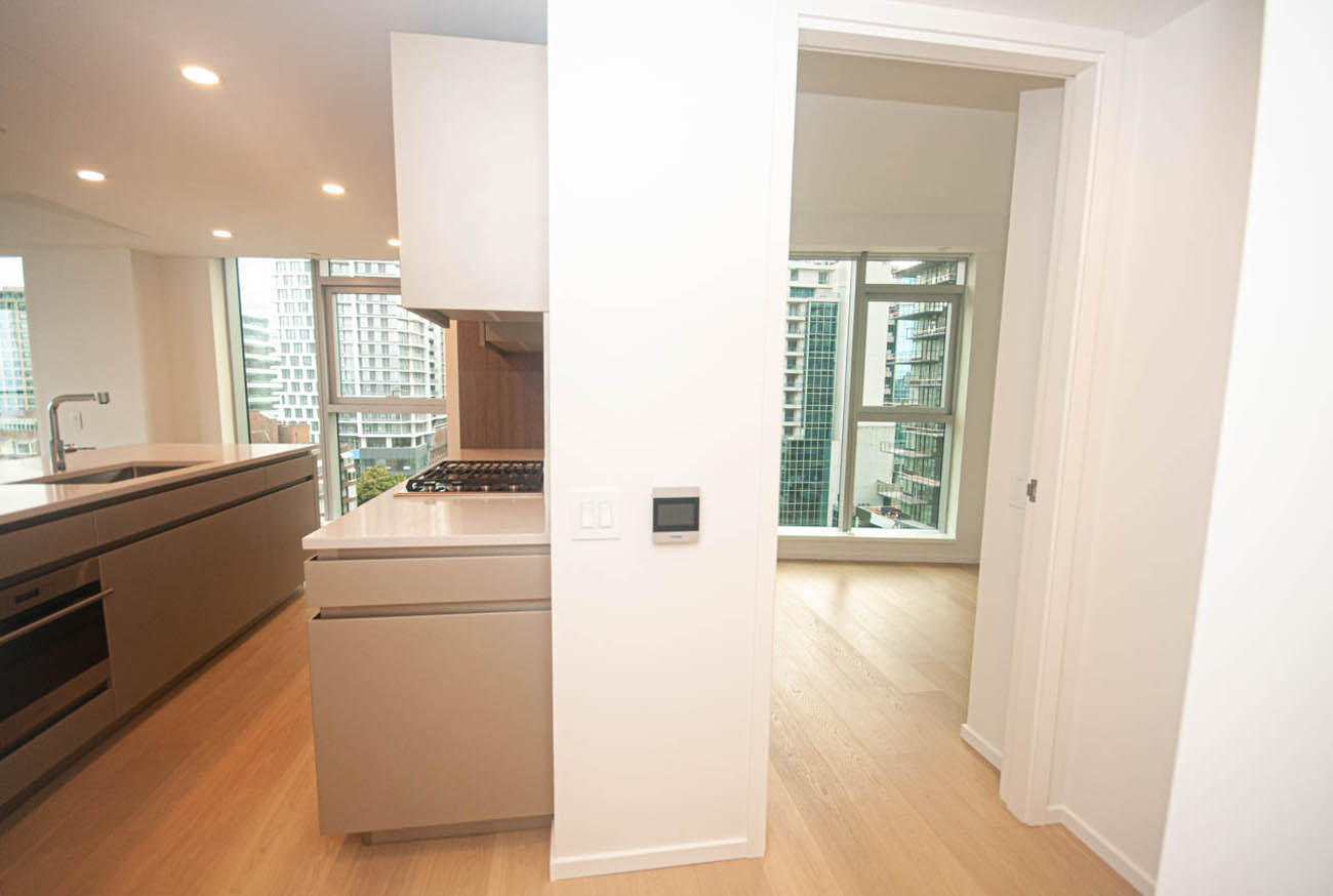 Modern 2 Bedroom + Den with a huge balcony in The Pacific by Grosvenor ideally situated close to all conveniences of downtown, Granville Island's bustling arts districts, Yaletown's culinary scene, and the sandy beaches of Kitsilano and English Bay. The heart of your home is engineered by Snaidero and outfitted with professional-grade appliances from Sub-Zero, Wolf and Miele. There is ample storage in deep, nested drawers, full-height pull-out pantries, and hidden cabinetry in custom kitchen islands. Other thoughtful details include upper cabinets that open and close with one touch, under-cabinet lighting, and custom cutlery inserts in soft-closing drawers. The bathroom features a frameless glass deep soaker tub, vanity mirrors with integrated lighting and storage, wall-mount fixtures by Dornbracht, under-counter sinks and wall-mount toilets by Duravit, marble walls, and across heated floors. The spacious balcony of this condo adds to the outdoor space for entertaining and provides gorgeous ocean views. Building amenities include a 24-hour concierge service, a well-equipped fitness center designed in collaboration with Elite Performance, a thoughtfully landscaped and illuminated terrace with an elegantly appointed lounge and entertainment space inside. A personal bike unit, a storage locker, and one parking stall are included in the rent!