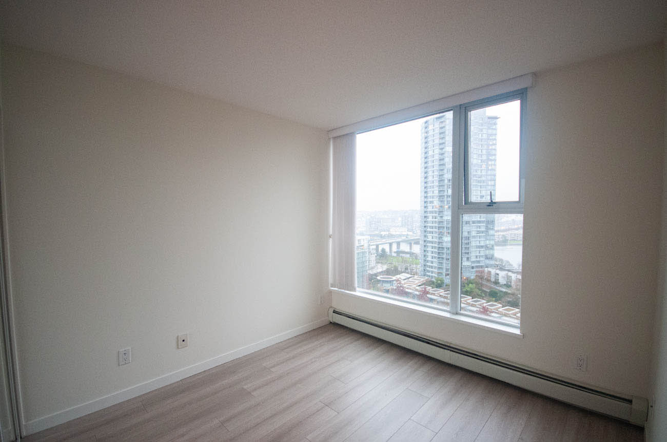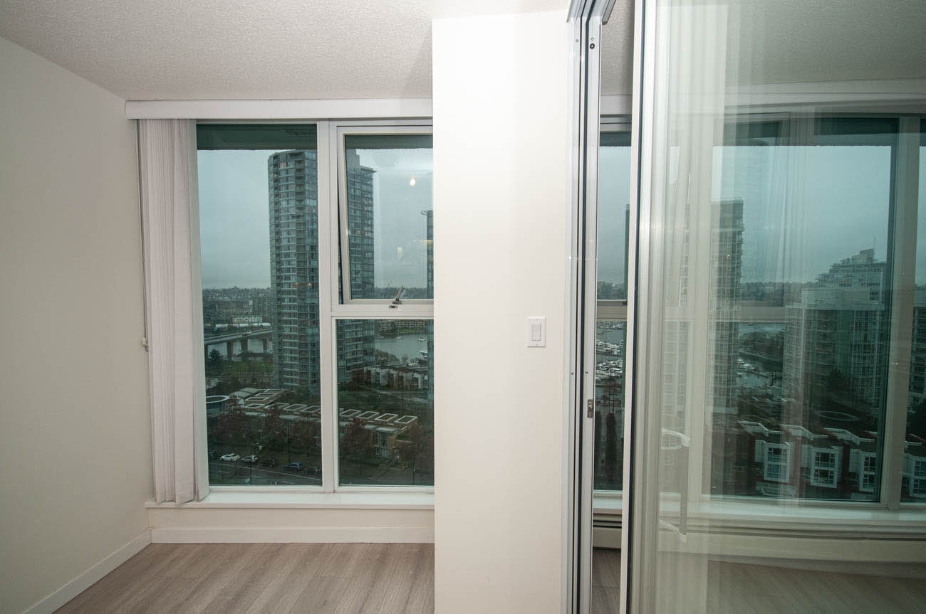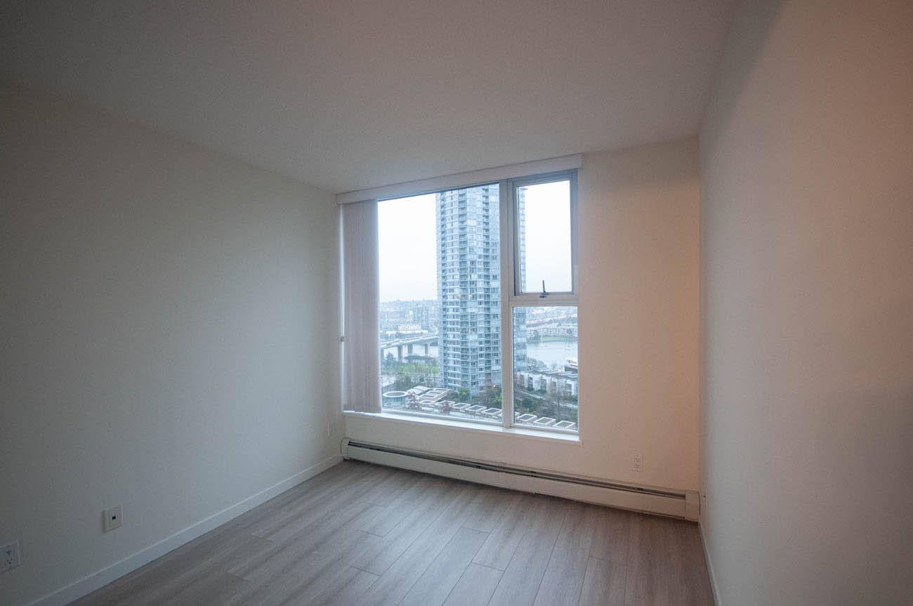 Southeast waterfront 2 bed + den with 2 full bathrooms on the 18th floor facing the False Creek and providing gorgeous views of the water and the city. Located in the famous Landmark 33, the building offers 1st class amenities of the H2O Club, featuring a 75' lap pool, steam sauna, hot tub, exercise gym, meeting rooms, terrace, and sundeck with BBQ. The condo is steps away from Marina and Granville Island Market (fresh fish and seasonal produce), shops, restaurants, bars, shopping, and nightlife. Walking distance to urban fare and Yaletown and the Canada Line Skytrain. 1 secured underground parking stall is included in the rent. There is no storage locker, but the condo has a large storage space/flex room in addition to the solarium in the living room. Move-in strata fee applies.