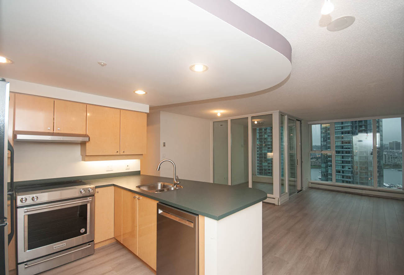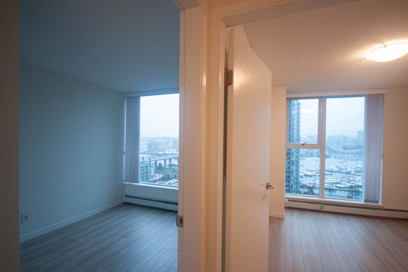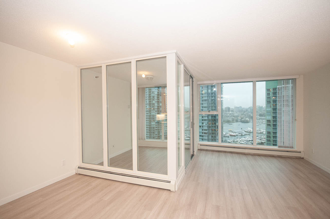 Southeast waterfront 2 bed + den with 2 full bathrooms on the 18th floor facing the False Creek and providing gorgeous views of the water and the city. Located in the famous Landmark 33, the building offers 1st class amenities of the H2O Club, featuring a 75' lap pool, steam sauna, hot tub, exercise gym, meeting rooms, terrace, and sundeck with BBQ. The condo is steps away from Marina and Granville Island Market (fresh fish and seasonal produce), shops, restaurants, bars, shopping, and nightlife. Walking distance to urban fare and Yaletown and the Canada Line Skytrain. 1 secured underground parking stall is included in the rent. There is no storage locker, but the condo has a large storage space/flex room in addition to the solarium in the living room. Move-in strata fee applies.