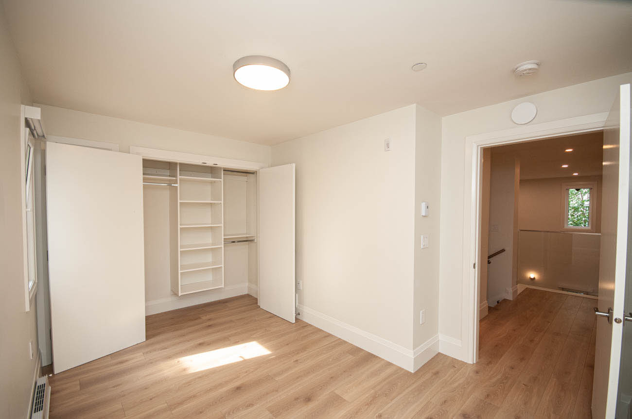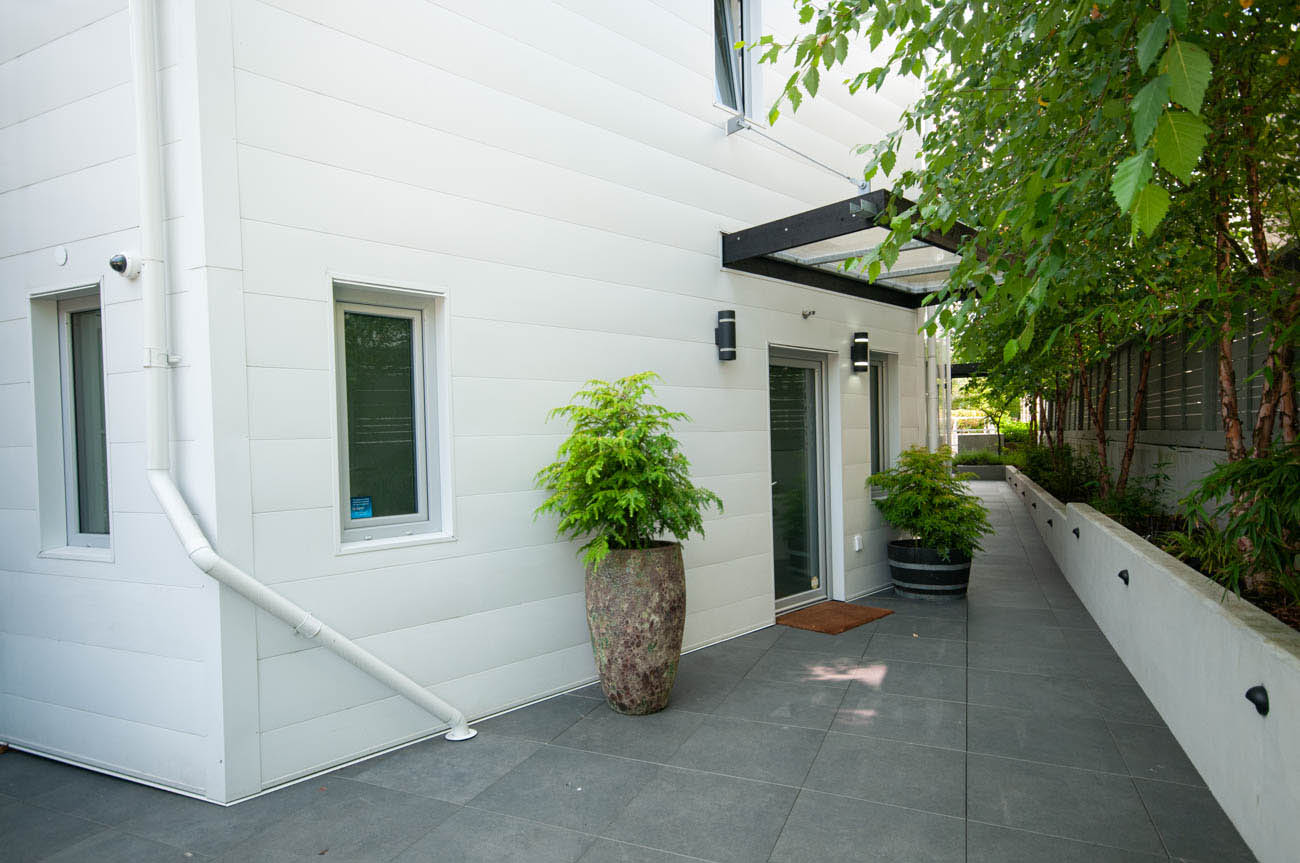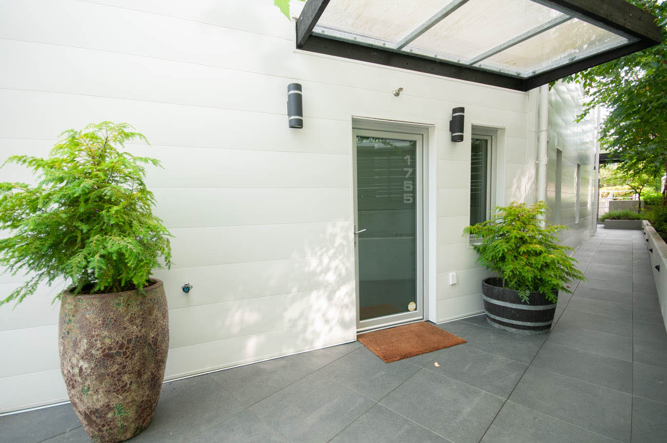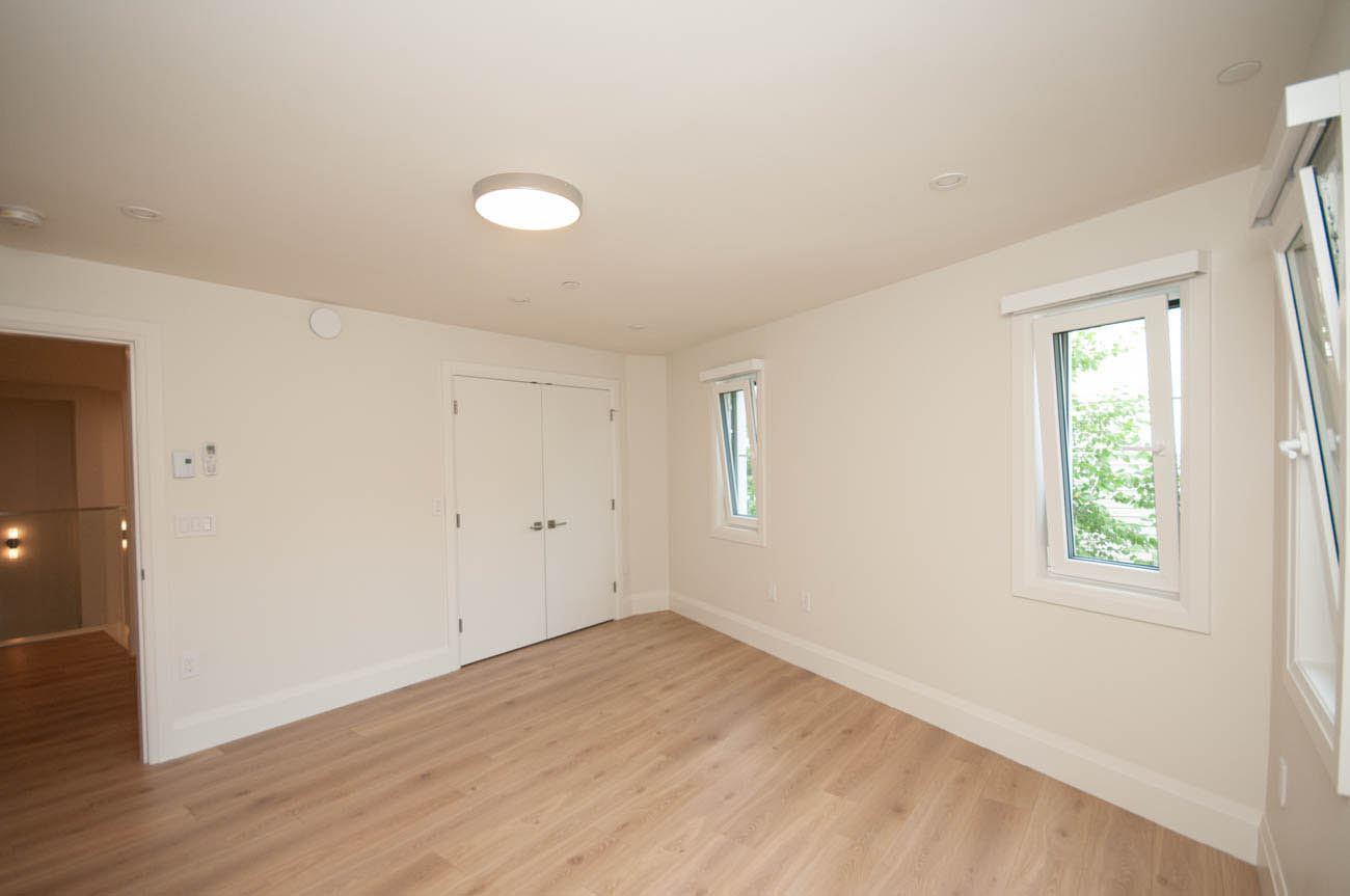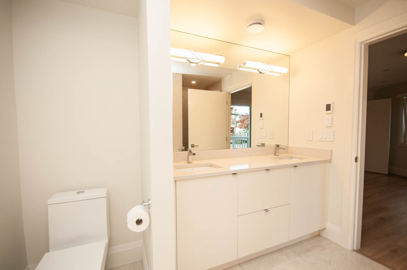 A luxury 2 level townhouse in a boutique energy-efficient multi-family property in Fairview consumes 90 percent less heating and cooling energy than conventional buildings. This high-performance property is designed by Passivhaus standards and offers year-round stable air quality and temperature, ventilation systems with heat recovery, and triple-pane windows with auto-blinds to control the light and privacy day or night. The main level of the townhouse opens to the large living room with vaulted ceilings and an open concept dining area featuring beautiful Merit kitchen cabinetry complimented by a unique 3D effect kitchen splash wall. The kitchen island provides for extra seating and the high-end appliances include an electric Fisher and Paykel stove and oven, a stylish Blomberg dishwasher, and a full-size double door fridge. There is a lot of storage space provided by cabinets and closets, not to mention a large room under the staircase, where large equipment and gear can be kept. An elegant glass and wood staircase leads to all 3 bedrooms upstairs. The Master bedroom boasts with extra-large walk-in closet, a spacious King size bedroom space, and imported mosaic tile work in the en-suite bathroom that offers a spa-like rain shower and bathtub to soak in. Both bathrooms upstairs have heated floors. Air Conditioning, en-suite Ecostar washer and dryer, and hardwood floors throughout. 1 underground full-size parking stall (EV charger available for an additional cost) and 1 designated backyard parking stall are included in the rent. The bike storage cage in the garage is shared with the other 3 units in the building. Don't miss your chance to live in an internationally recognized sustainable home!