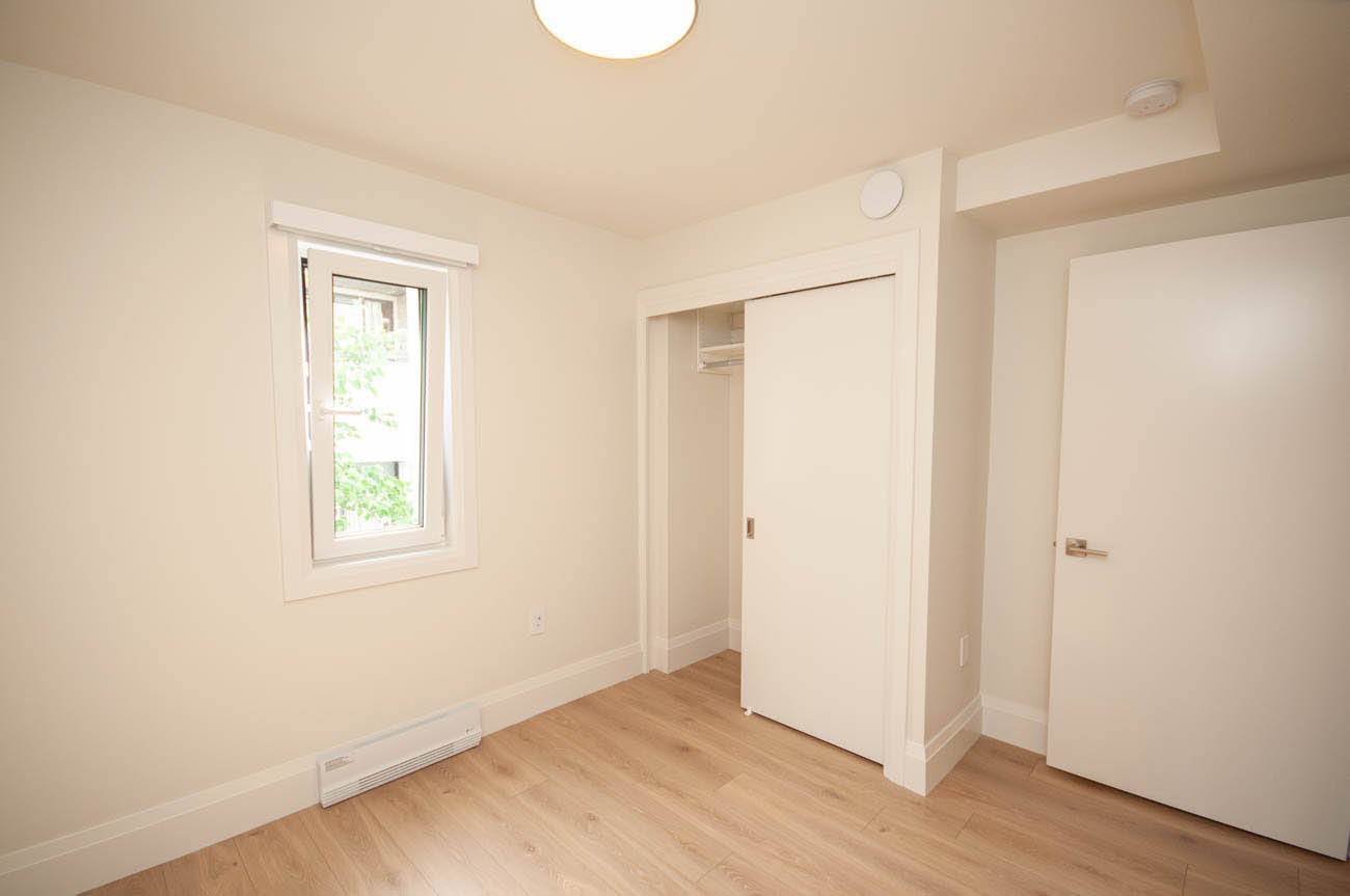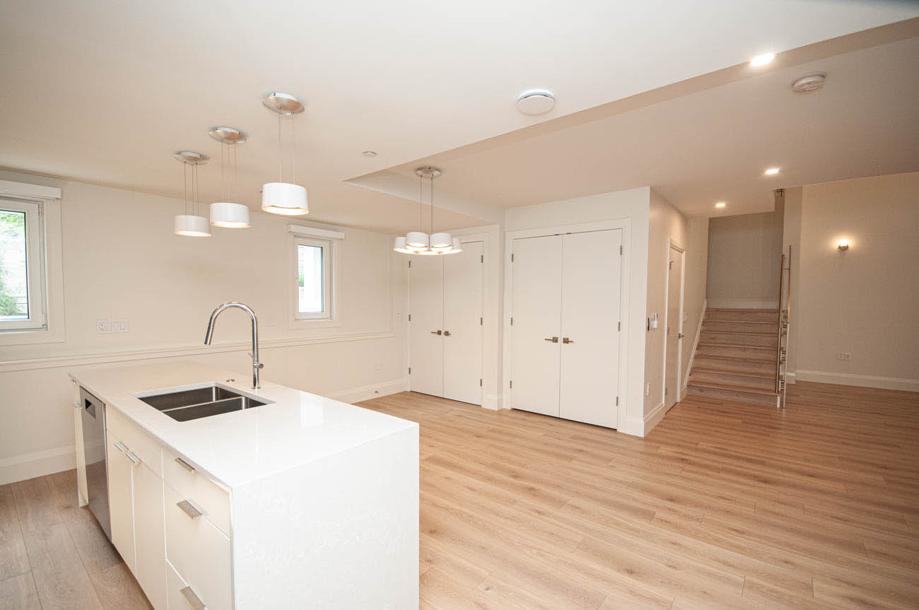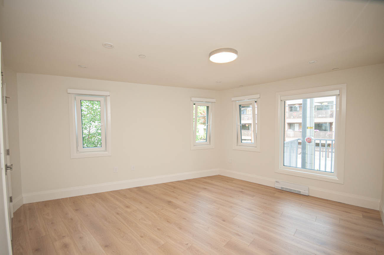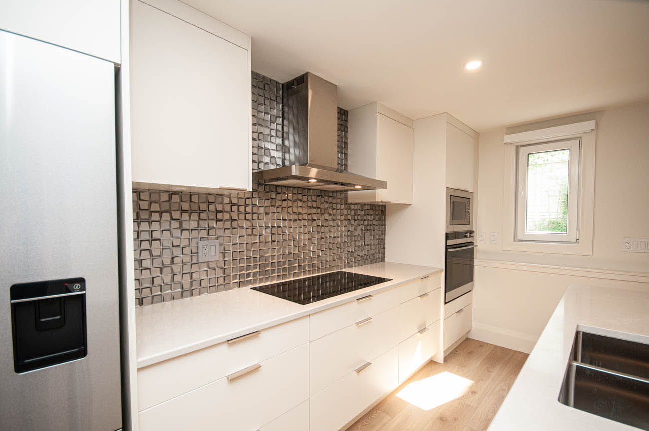 A luxury 2 level townhouse in a boutique energy-efficient multi-family property in Fairview consumes 90 percent less heating and cooling energy than conventional buildings. This high-performance property is designed by Passivhaus standards and offers year-round stable air quality and temperature, ventilation systems with heat recovery, and triple-pane windows with auto-blinds to control the light and privacy day or night. The main level of the townhouse opens to the large living room with vaulted ceilings and an open concept dining area featuring beautiful Merit kitchen cabinetry complimented by a unique 3D effect kitchen splash wall. The kitchen island provides for extra seating and the high-end appliances include an electric Fisher and Paykel stove and oven, a stylish Blomberg dishwasher, and a full-size double door fridge. There is a lot of storage space provided by cabinets and closets, not to mention a large room under the staircase, where large equipment and gear can be kept. An elegant glass and wood staircase leads to all 3 bedrooms upstairs. The Master bedroom boasts with extra-large walk-in closet, a spacious King size bedroom space, and imported mosaic tile work in the en-suite bathroom that offers a spa-like rain shower and bathtub to soak in. Both bathrooms upstairs have heated floors. Air Conditioning, en-suite Ecostar washer and dryer, and hardwood floors throughout. 1 underground full-size parking stall (EV charger available for an additional cost) and 1 designated backyard parking stall are included in the rent. The bike storage cage in the garage is shared with the other 3 units in the building. Don't miss your chance to live in an internationally recognized sustainable home!