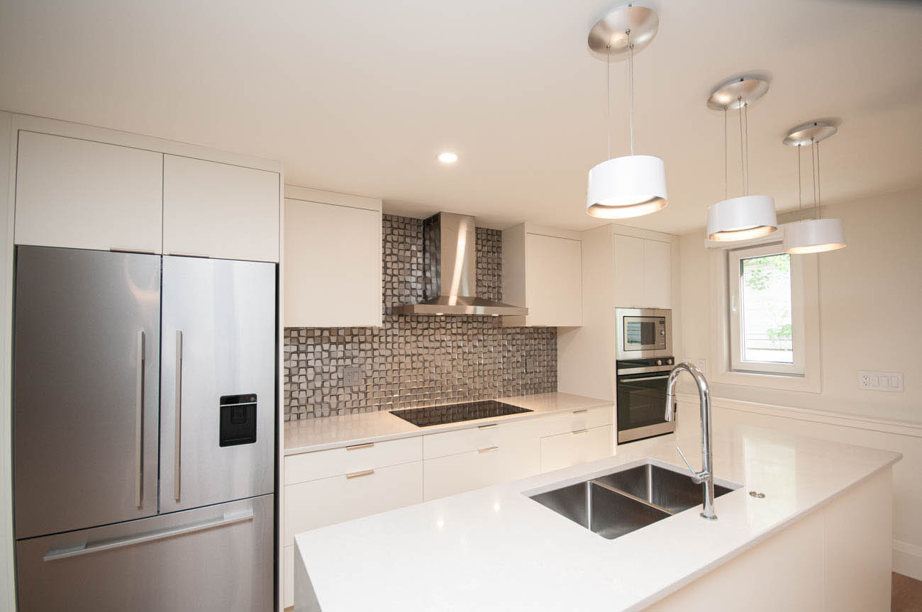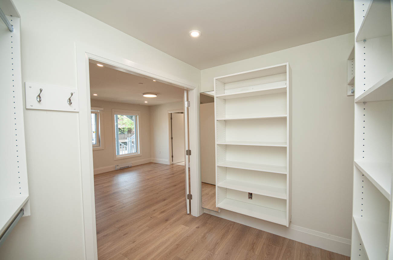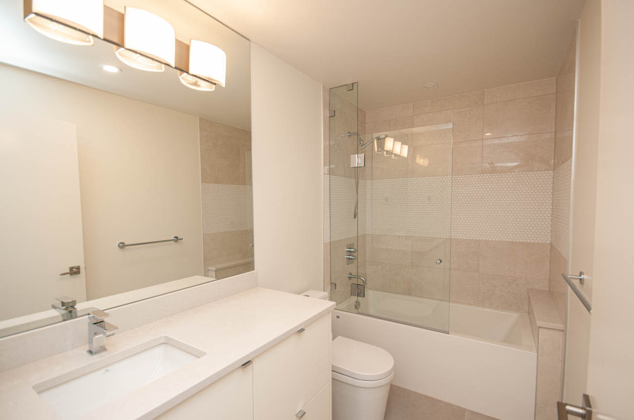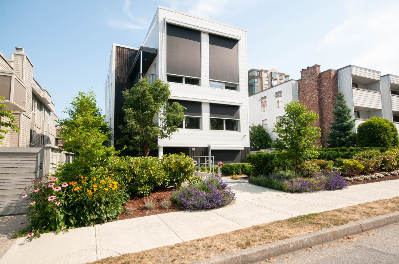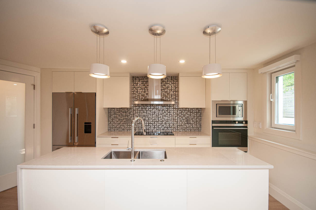A luxury 2 level townhouse in a boutique energy-efficient multi-family property in Fairview consumes 90 percent less heating and cooling energy than conventional buildings. This high-performance property is designed by Passivhaus standards and offers year-round stable air quality and temperature, ventilation systems with heat recovery, and triple-pane windows with auto-blinds to control the light and privacy day or night. The main level of the townhouse opens to the large living room with vaulted ceilings and an open concept dining area featuring beautiful Merit kitchen cabinetry complimented by a unique 3D effect kitchen splash wall. The kitchen island provides for extra seating and the high-end appliances include an electric Fisher and Paykel stove and oven, a stylish Blomberg dishwasher, and a full-size double door fridge. There is a lot of storage space provided by cabinets and closets, not to mention a large room under the staircase, where large equipment and gear can be kept. An elegant glass and wood staircase leads to all 3 bedrooms upstairs. The Master bedroom boasts with extra-large walk-in closet, a spacious King size bedroom space, and imported mosaic tile work in the en-suite bathroom that offers a spa-like rain shower and bathtub to soak in. Both bathrooms upstairs have heated floors. Air Conditioning, en-suite Ecostar washer and dryer, and hardwood floors throughout. 1 underground full-size parking stall (EV charger available for an additional cost) and 1 designated backyard parking stall are included in the rent. The bike storage cage in the garage is shared with the other 3 units in the building. Don't miss your chance to live in an internationally recognized sustainable home!