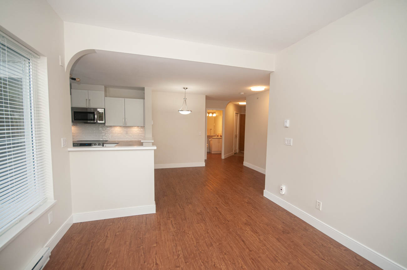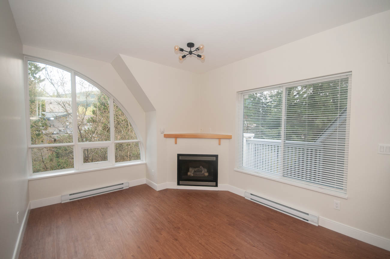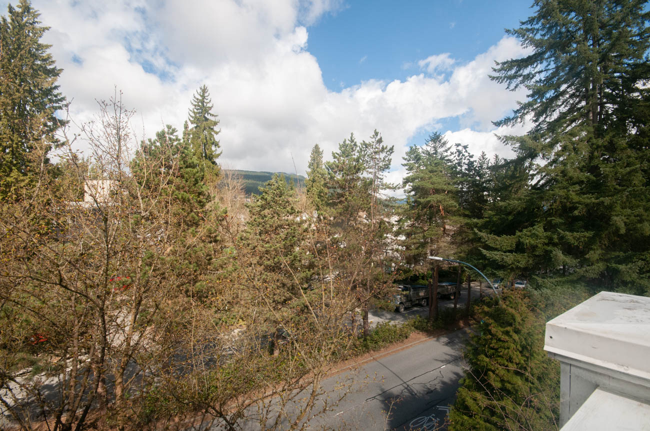 Showings are available starting March 5th (the unit is getting fully renovated)! Bright and spacious 2 bedroom 2 bathroom top floor condo in Lynn Valley Village, steps away to the shopping, groceries, and North Vancouver trails. Centrally located in the heart of the bustling, vibrant and active community of Lynn Valley. The unit opens to a dining/living area, featuring a gas fireplace, and large arched bay floor-to-ceiling windows that add natural daylight to the room. The kitchen is divided from the living space by a breakfast bar and features an electric stove, double door stainless steel fridge, dishwasher, and microwave oven. The master bedroom has a walkthrough closet and an ensuite. 1 parking stall is included in the rent, and there is an opportunity to inquire about second parking space for an additional charge. The condo has a balcony and comes with an en-suite laundry. Cats only!