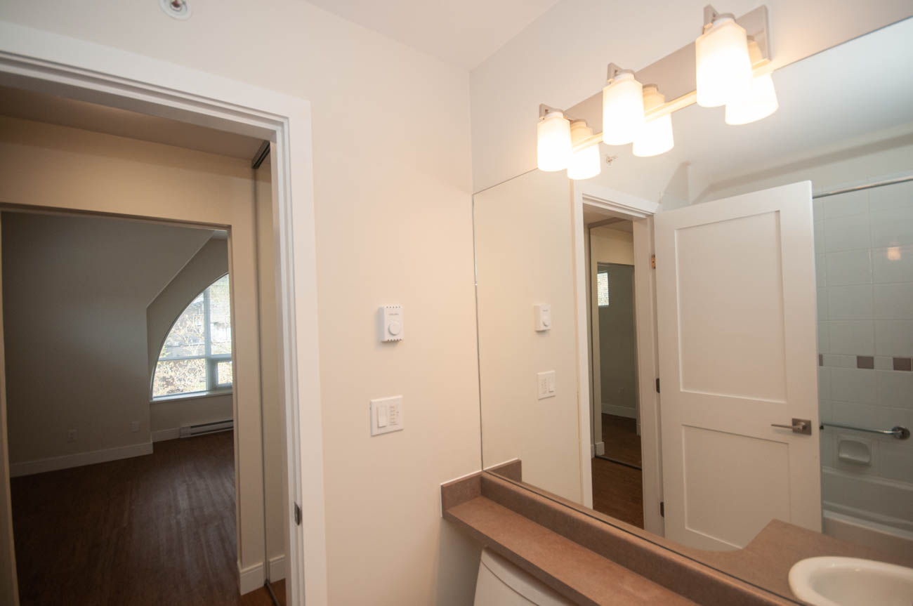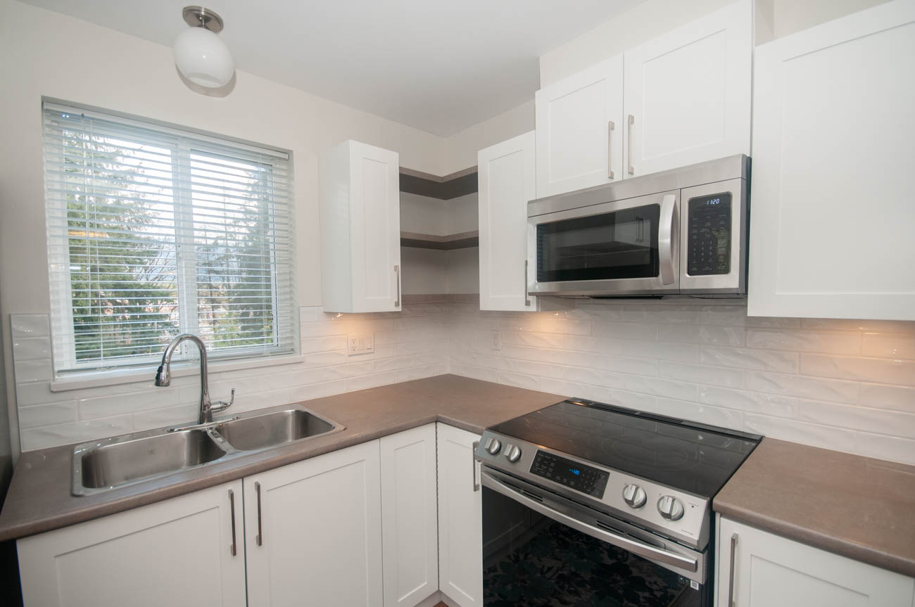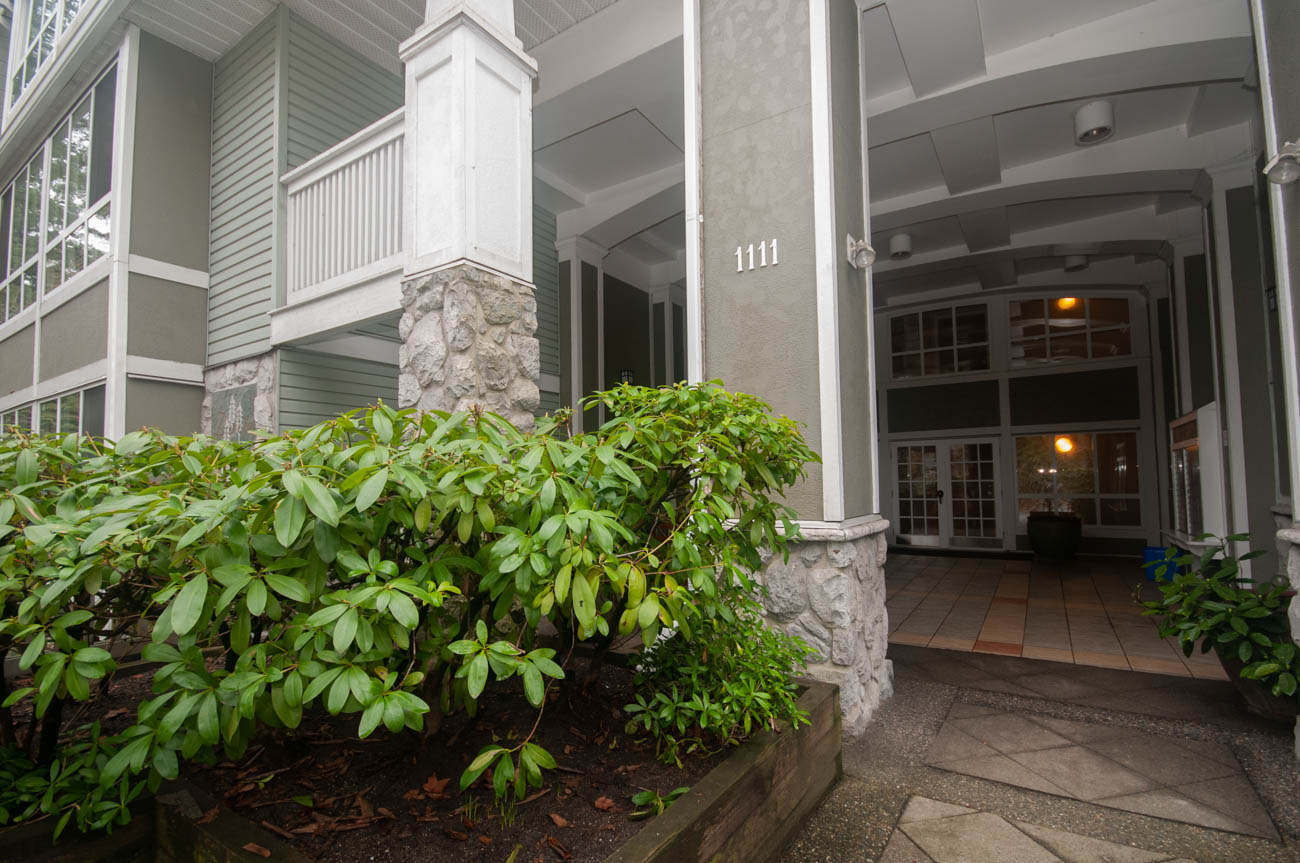 Showings are available starting March 5th (the unit is getting fully renovated)! Bright and spacious 2 bedroom 2 bathroom top floor condo in Lynn Valley Village, steps away to the shopping, groceries, and North Vancouver trails. Centrally located in the heart of the bustling, vibrant and active community of Lynn Valley. The unit opens to a dining/living area, featuring a gas fireplace, and large arched bay floor-to-ceiling windows that add natural daylight to the room. The kitchen is divided from the living space by a breakfast bar and features an electric stove, double door stainless steel fridge, dishwasher, and microwave oven. The master bedroom has a walkthrough closet and an ensuite. 1 parking stall is included in the rent, and there is an opportunity to inquire about second parking space for an additional charge. The condo has a balcony and comes with an en-suite laundry. Cats only!
