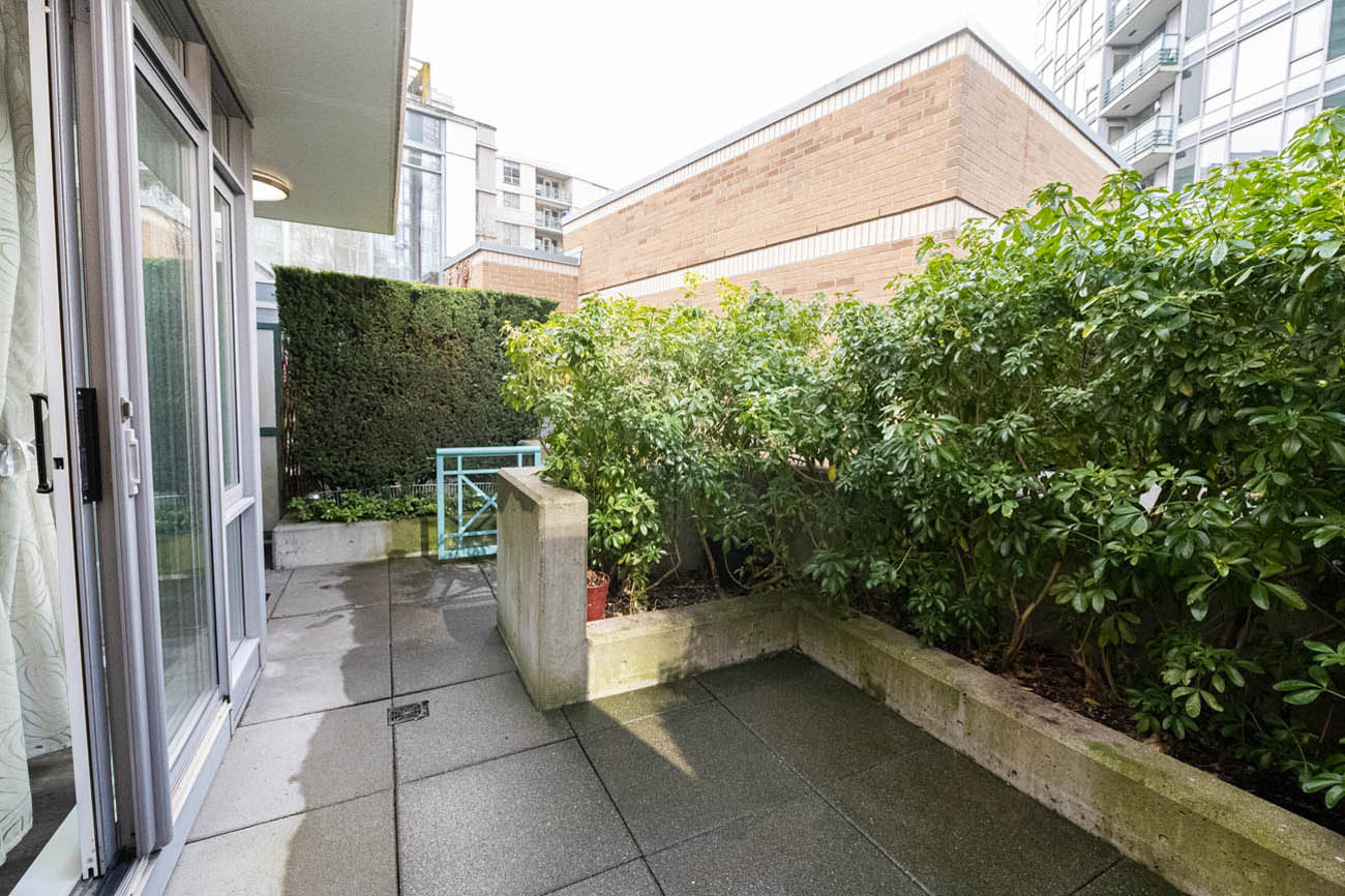 Welcome to this beautiful 695 sf townhouse located in the desirable QuayWest Resort Residence in Yaletown. This 1 bedroom plus den townhouse features high ceilings, hardwood floors, an open concept layout with a modern kitchen, granite countertops, stainless steel appliances, and a breakfast bar. The living area is spacious and bright opening to a 125 sf private patio, super private and quiet setting in the courtyard. The den provides space for an en-suite storage. Fabulous facilities including concierge, theatre, pool, and workout room. Steps away from shops, restaurants, parks, and seawall. 1 parking is included with rent.