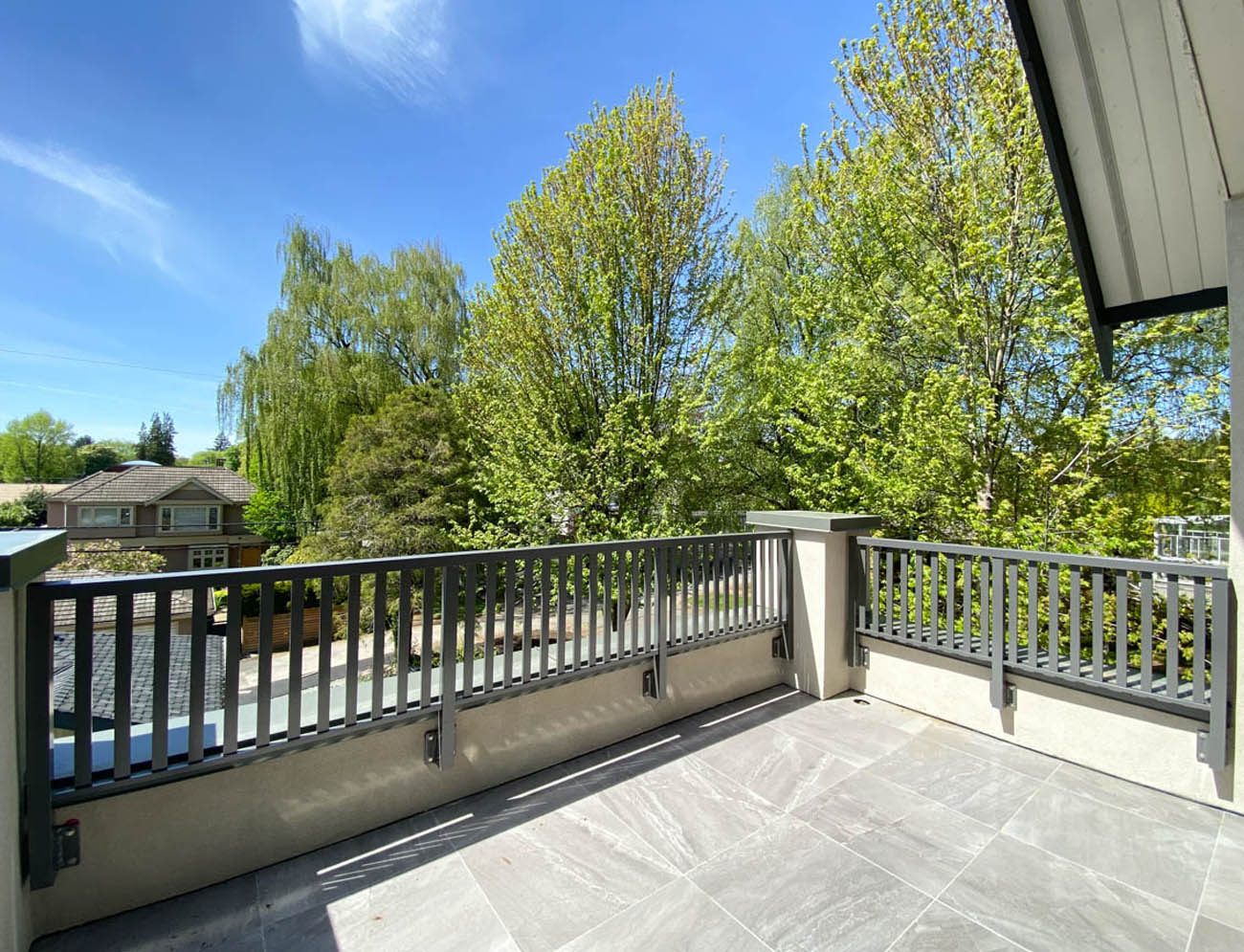 Luxurious 4 bedroom 4.5 bathroom upper duplex home with self-contained 2 bedroom 1 bathroom nanny/in-law suite nestled on the corner lot in the tree-lined street of South Granville. Thoughtfully built and designed by Alia Developments and Tali + Roche Designs without a single detail overlooked! The property boasts a full Chef's open kitchen with premium Fisher and Paykel appliances, high ceilings, radiant heated white oak hardwood flooring throughout, and beautiful finishes. There are 3 bedrooms with ensuites located on the upper floor. The master suite offers access to a private deck, a walk-in closet, and a high-end spa-like 4-piece bathroom with a soaker tub, double sink vanity, toilet bidet seat, and a rain shower. The main floor features floor-to-ceiling glass slide doors that open to yet another spacious deck to enjoy a luscious landscape and maximize outdoor living space. Downstairs has a large recreation room and an additional bedroom with a half bathroom. Access to the legal 2-bedroom 1 bathroom spacious suite is through the laneway. 1 secure, insulated garage parking and one designated gravel outdoor parking stall are included in the rent. There is also ample unrestricted street parking in front of the house. Alarm system, security cameras, smart home, and much more.
