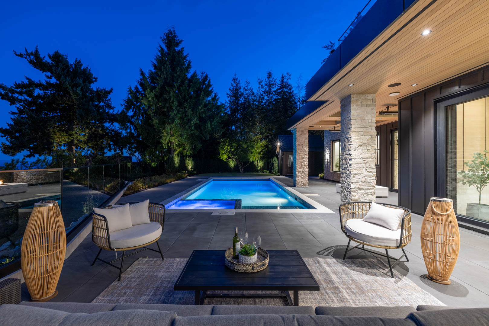Discover this Custom-Built Caulfield Residence. This exceptional 4,800 sq. Ft. custom-built home in Caulfield, West Vancouver, offers the perfect balance of luxury, comfort, and functionality. Designed with families in mind, it features a thoughtful two-level layout with abundant natural light and expansive living spaces. The main level boasts an open-concept design with soaring 10’ vaulted ceilings, seamlessly connecting the living, dining, kitchen, and family rooms. A dedicated home office with built-in shelving and a convenient laundry room complete this floor. Perfect for year-round entertaining, the living space flows effortlessly to a private patio retreat with a hot tub, built-in BBQ station, swimming pool, and a tranquil greenbelt backdrop. Upstairs, you’ll find 3 generously sized bedrooms, each with its own ensuite. The expansive primary suite is a true sanctuary, featuring a spa-inspired ensuite, a spacious walk-in closet, and a built-in King-Size bed frame. Car enthusiasts will appreciate the impressive four-car garage, designed with vaulted ceilings and sleek, custom-finished concrete flooring, a remarkable space in its own right. Ideally situated in a sought-after, family-friendly neighborhood, this home offers easy access to Caulfield Village shops and restaurants, top-rated schools, BC Ferries, and the Upper Levels Highway. A rare opportunity to live in a spacious, thoughtfully designed home in one of West Vancouver’s most desirable communities