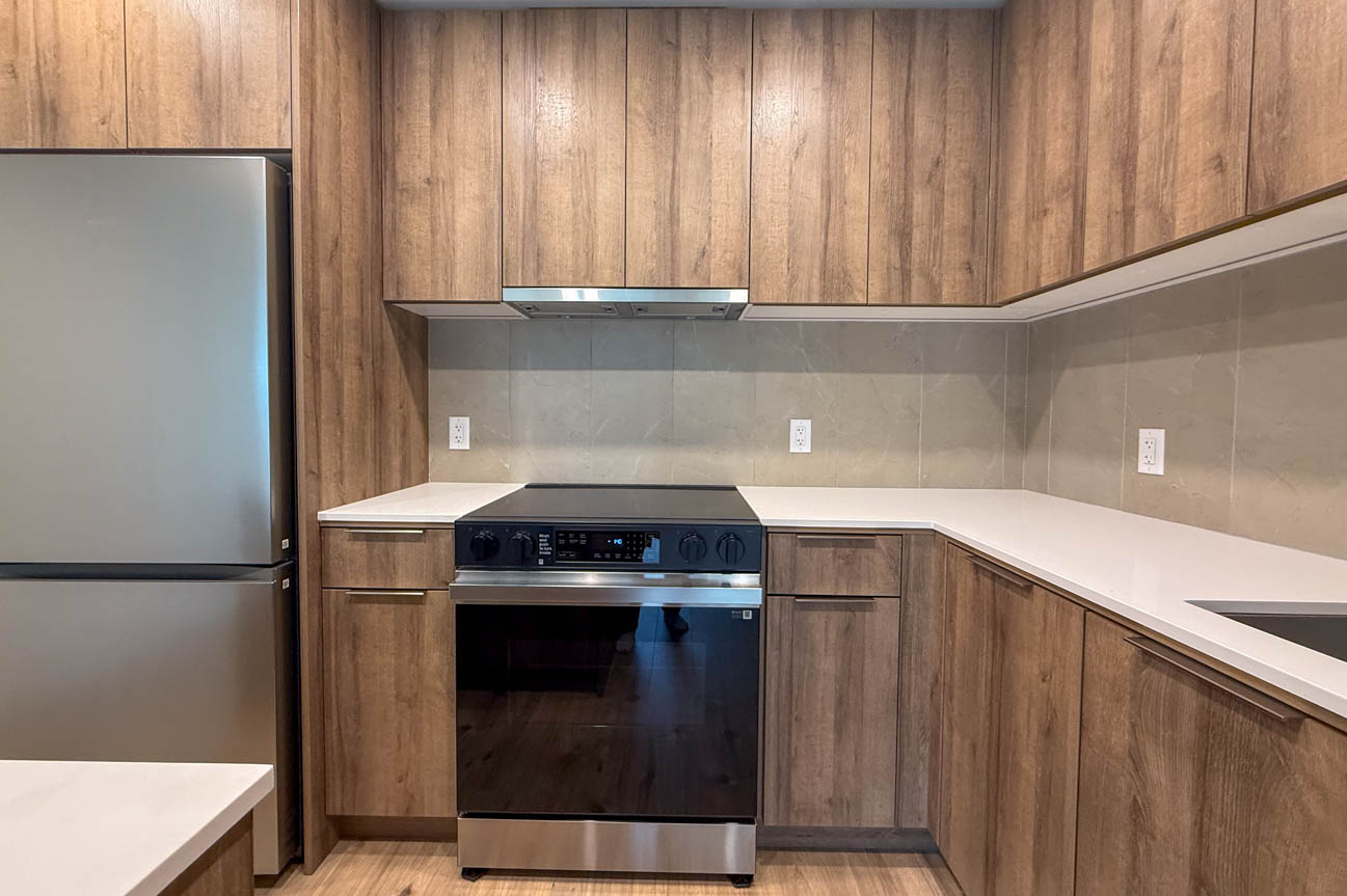 Modern AIR CONDITIONED 770 sq ft UNFURNISHED 2 bedroom, 2 bath condo at Lupine Walk, in North Vancouver. Surrounded by serene West Coast mountains and the wooded trails of the North Shore, this home offers an open layout with wide plank flooring throughout, separated bedrooms for added privacy, and a bright living area that opens to a good size square deck.